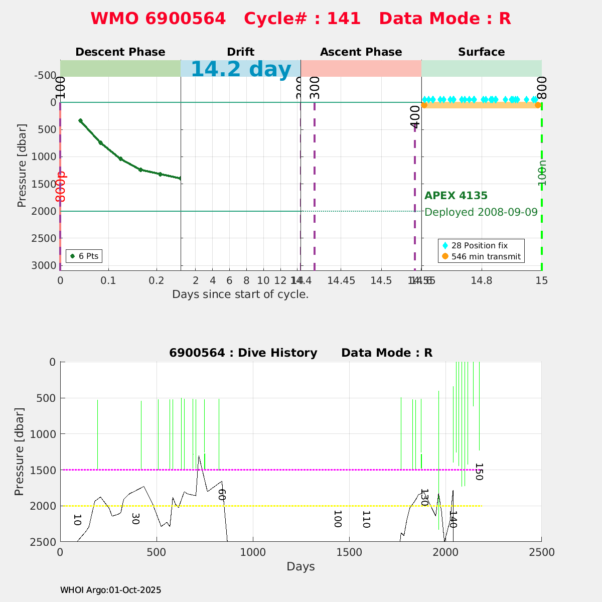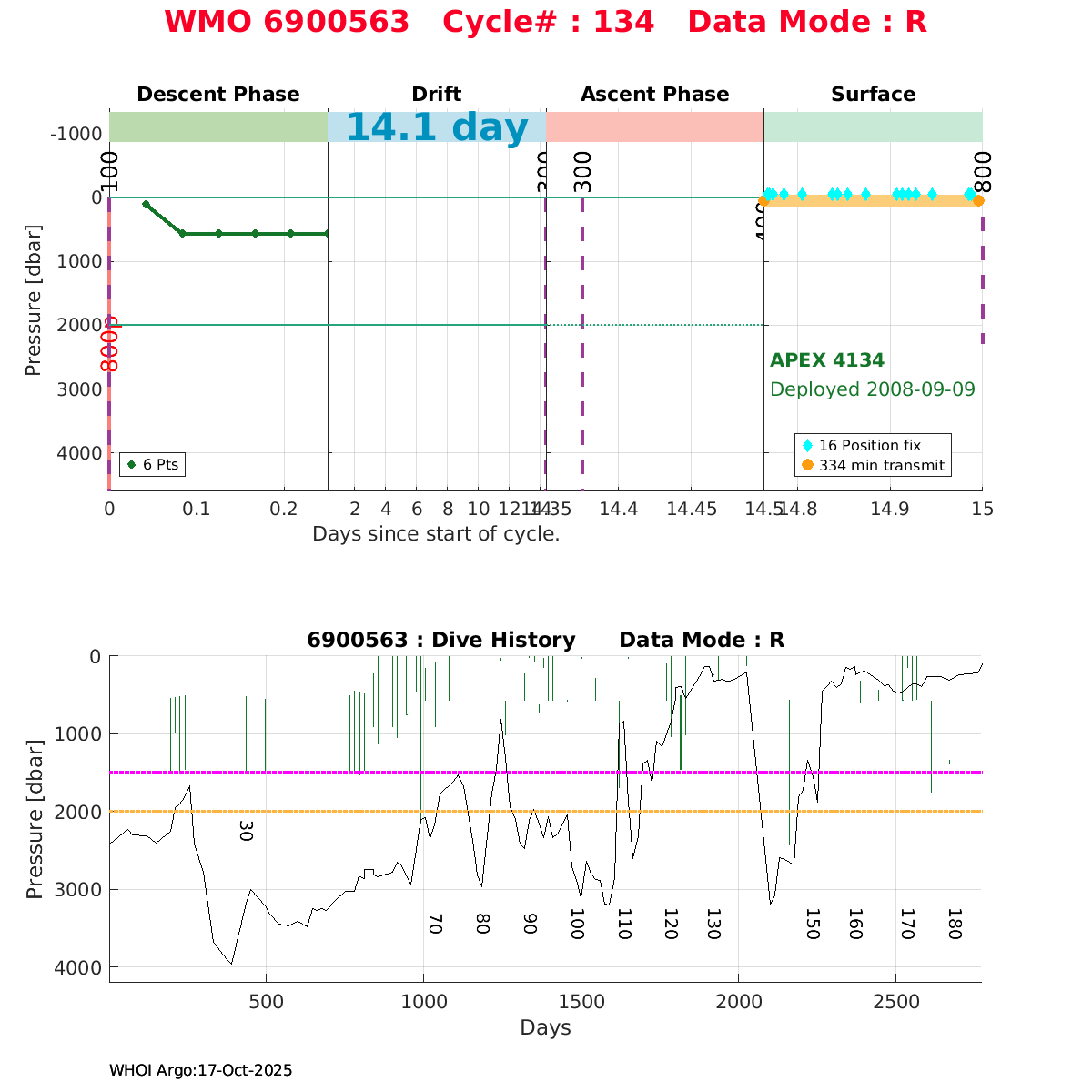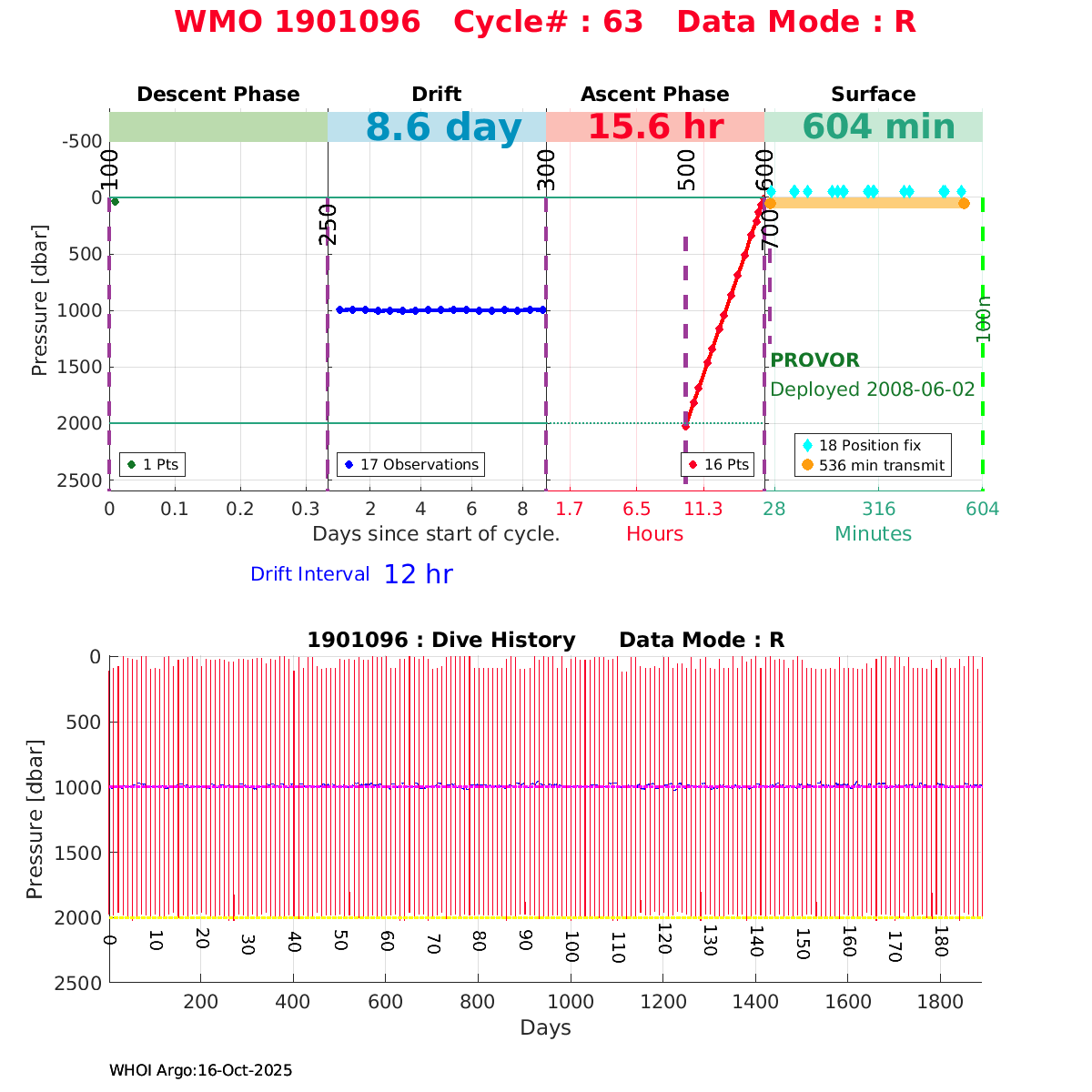 | WMO: #6900563 DAC: coriolis PI: Birgit KLEIN APEX: #4134 DRUCK_2900PSIA: #2636906 SBE41: #4130 Altimeter Comparison (IFREMER) EuroArgo Link | ![]() |