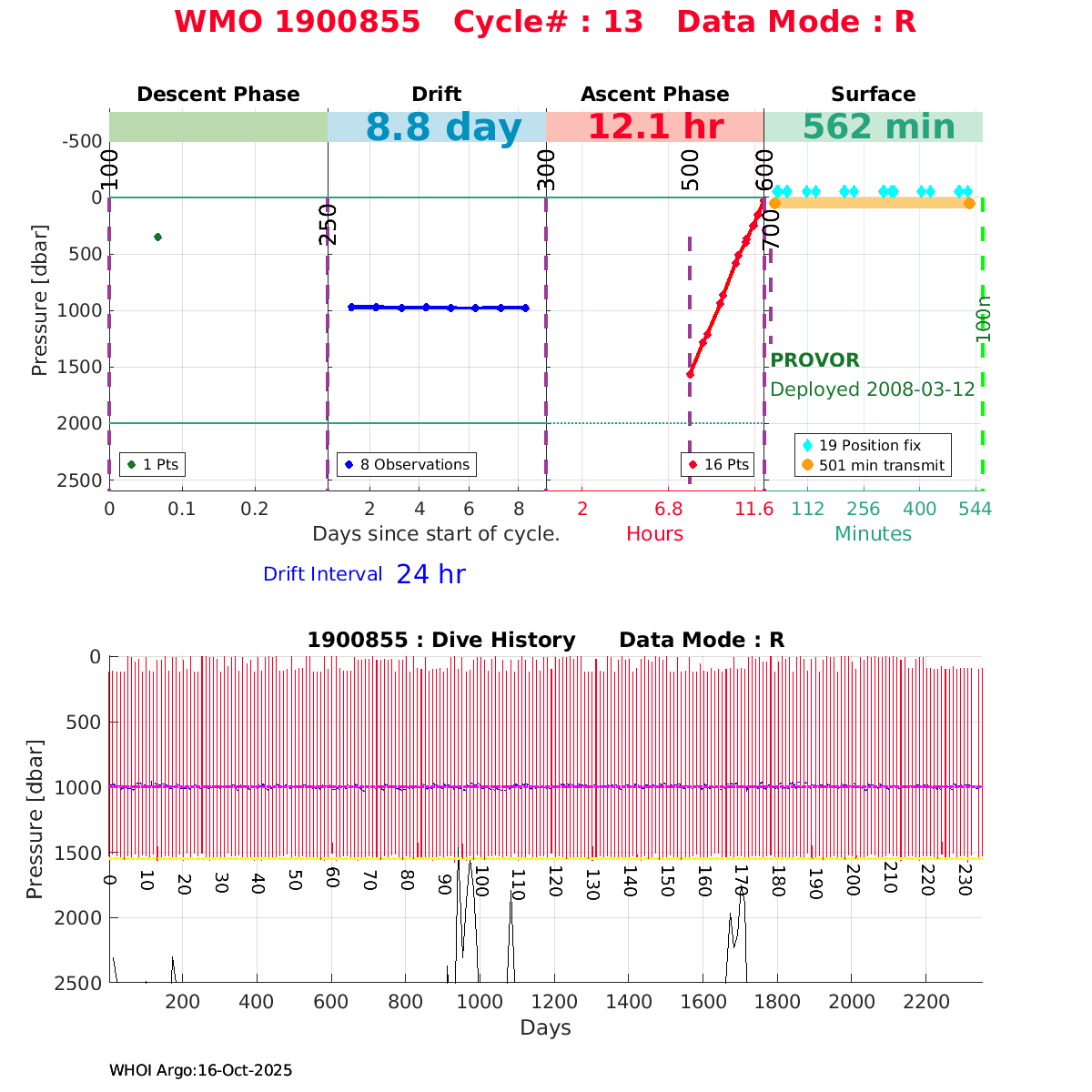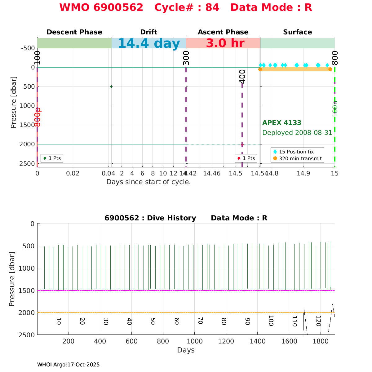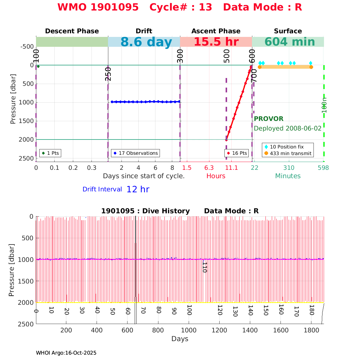 | WMO: #6900563 DAC: coriolis PI: Birgit KLEIN APEX: #4134 DRUCK_2900PSIA: #2636906 SBE41: #4130 Altimeter Comparison (IFREMER) EuroArgo Link | ![]() |