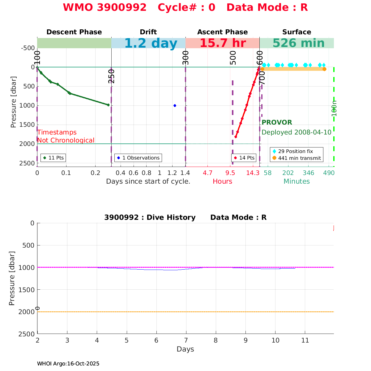 | WMO: #6900492 DAC: coriolis PI: Virginie THIERRY PROVOR: # FLOATCLOCK: # SBE: #n/a SBE41CP: #1786 Altimeter Comparison (IFREMER) EuroArgo Link | ![]() |