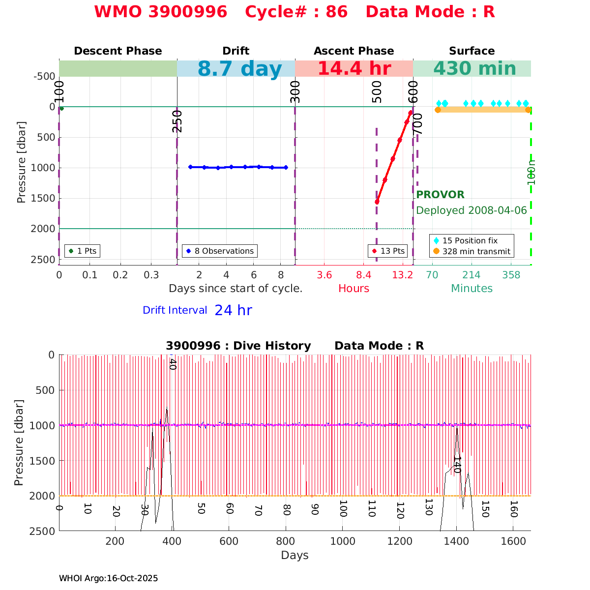 | WMO: #3901065 DAC: coriolis PI: Osvaldo ULLOA APEX: # SBE41: #2639 AANDERAA_OPTODE_3830: #603 ECO_FLNTU: #376 Altimeter Comparison (IFREMER) EuroArgo Link | ![]() |