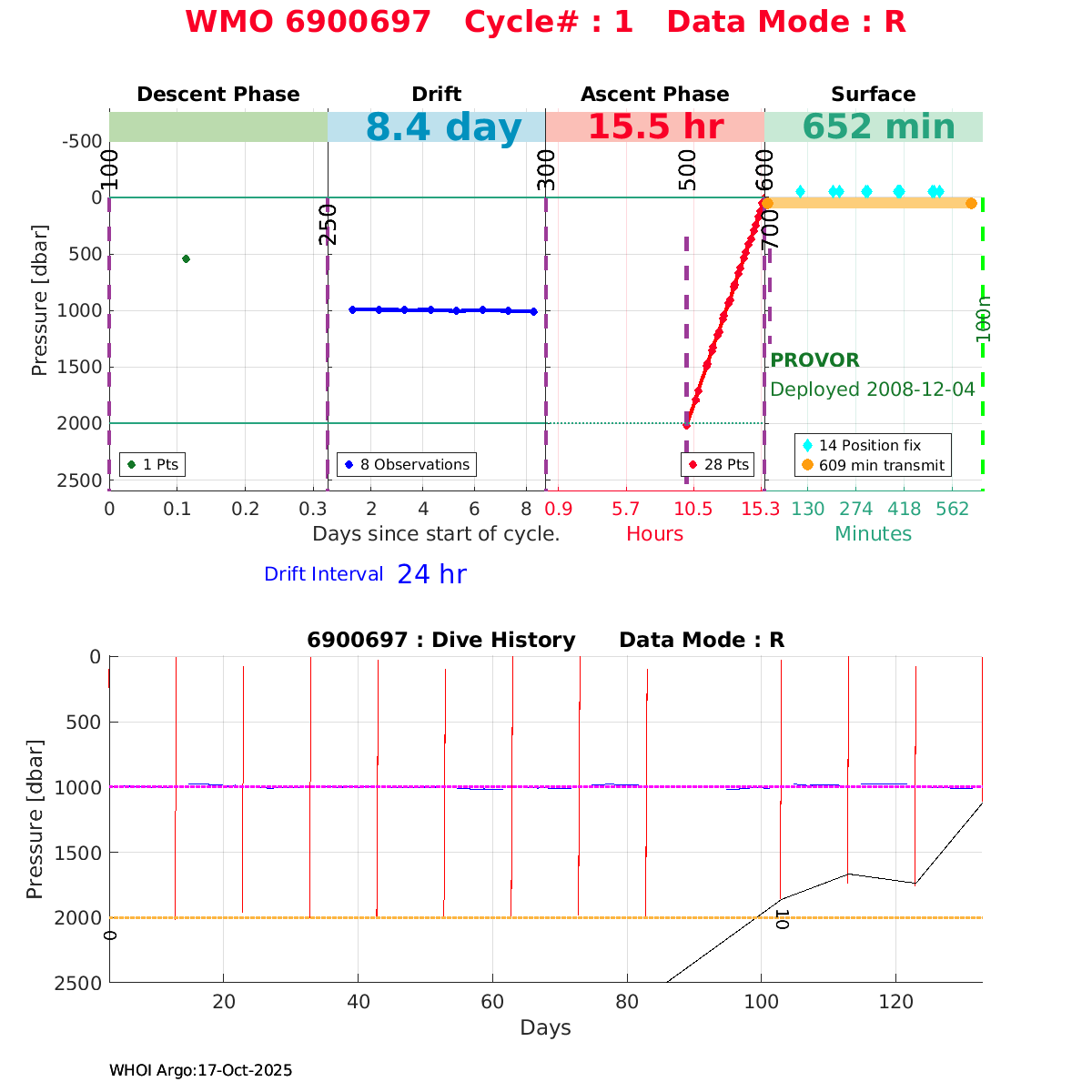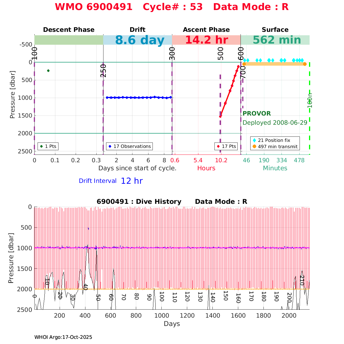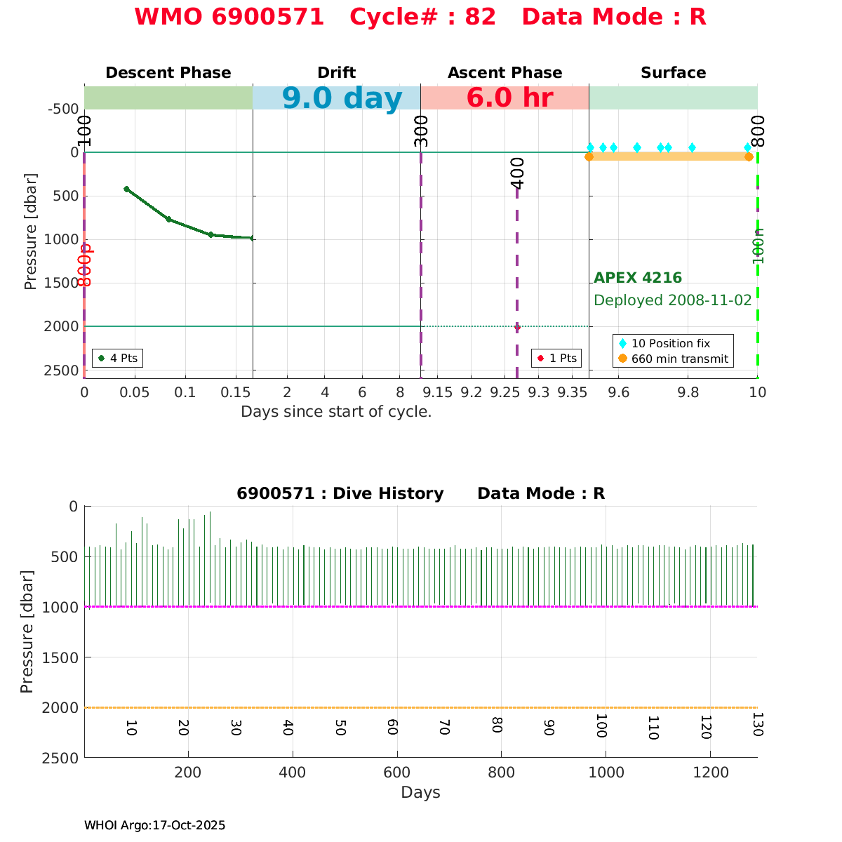 | WMO: #6900571 DAC: coriolis PI: Birgit KLEIN APEX: #4216 DRUCK_2900PSIA: #2701908 SBE41: #4203 Altimeter Comparison (IFREMER) EuroArgo Link | ![]() |