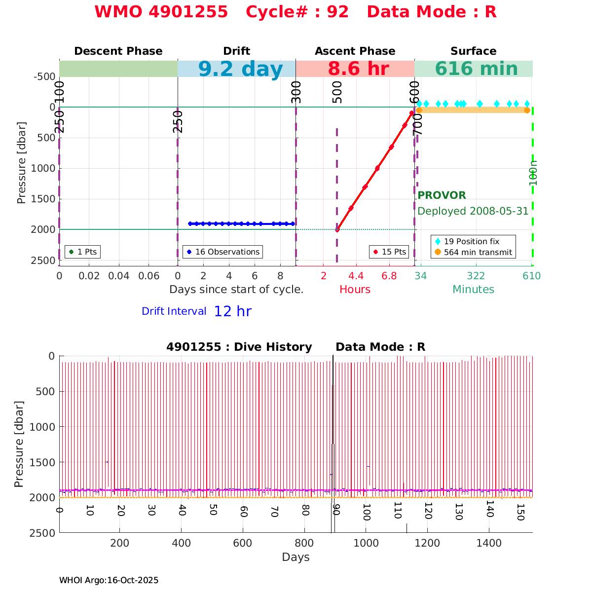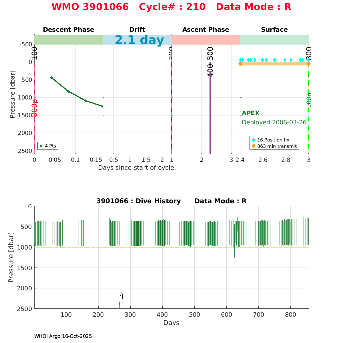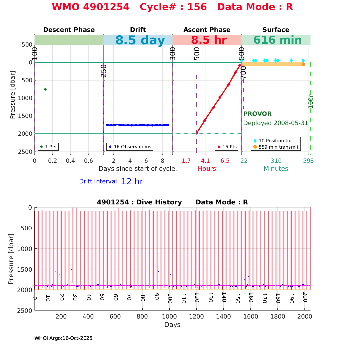 | WMO: #6900571 DAC: coriolis PI: Birgit KLEIN APEX: #4216 DRUCK_2900PSIA: #2701908 SBE41: #4203 Altimeter Comparison (IFREMER) EuroArgo Link | ![]() |