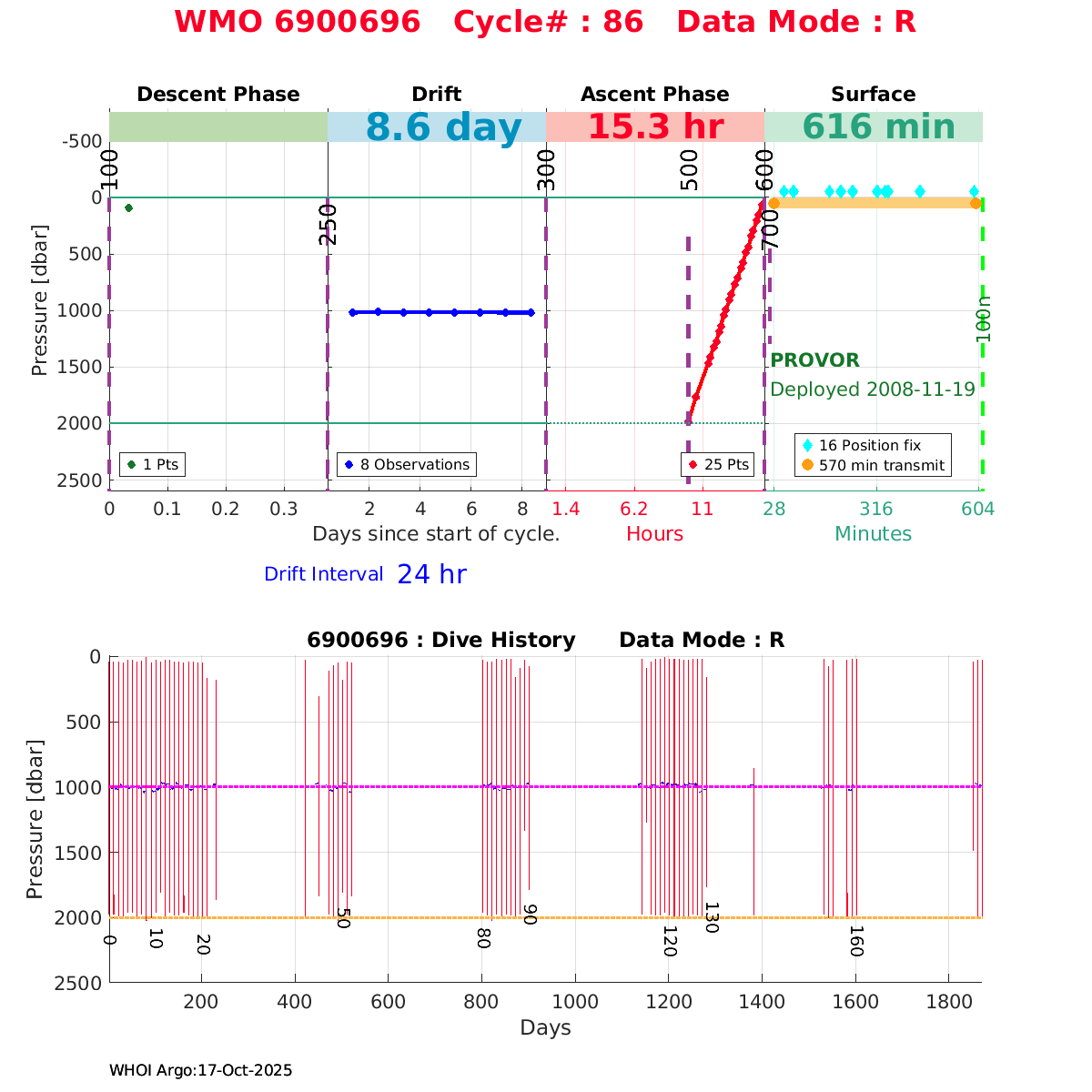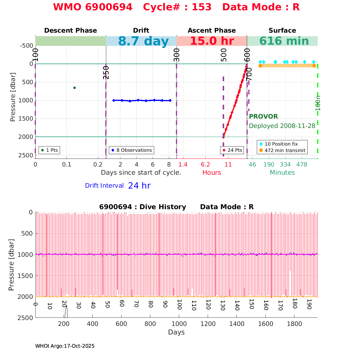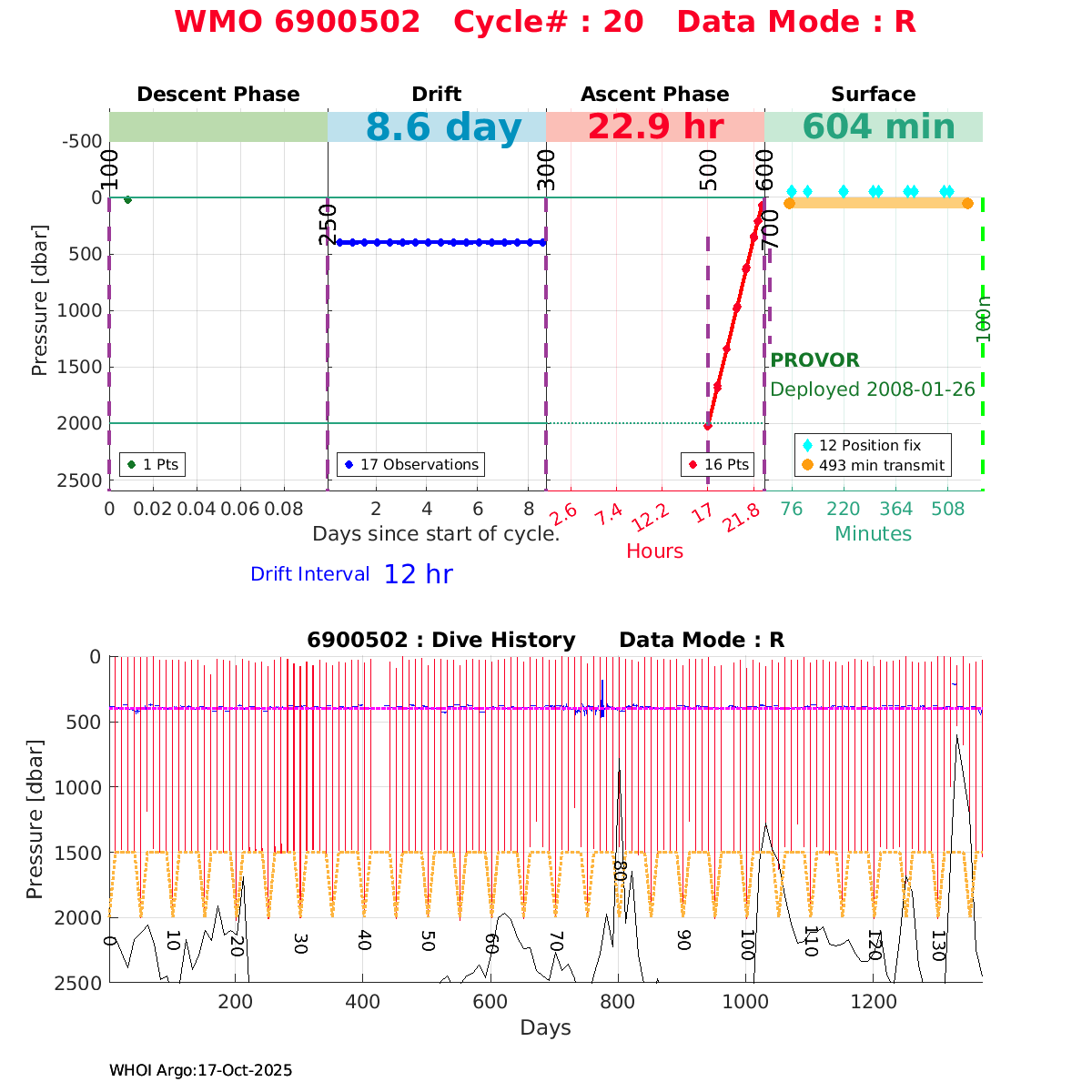 | WMO: #6900683 DAC: coriolis PI: Antoine POTEAU PROVOR_II: # SBE41CP: #n/a Altimeter Comparison (IFREMER) EuroArgo Link | ![]() |