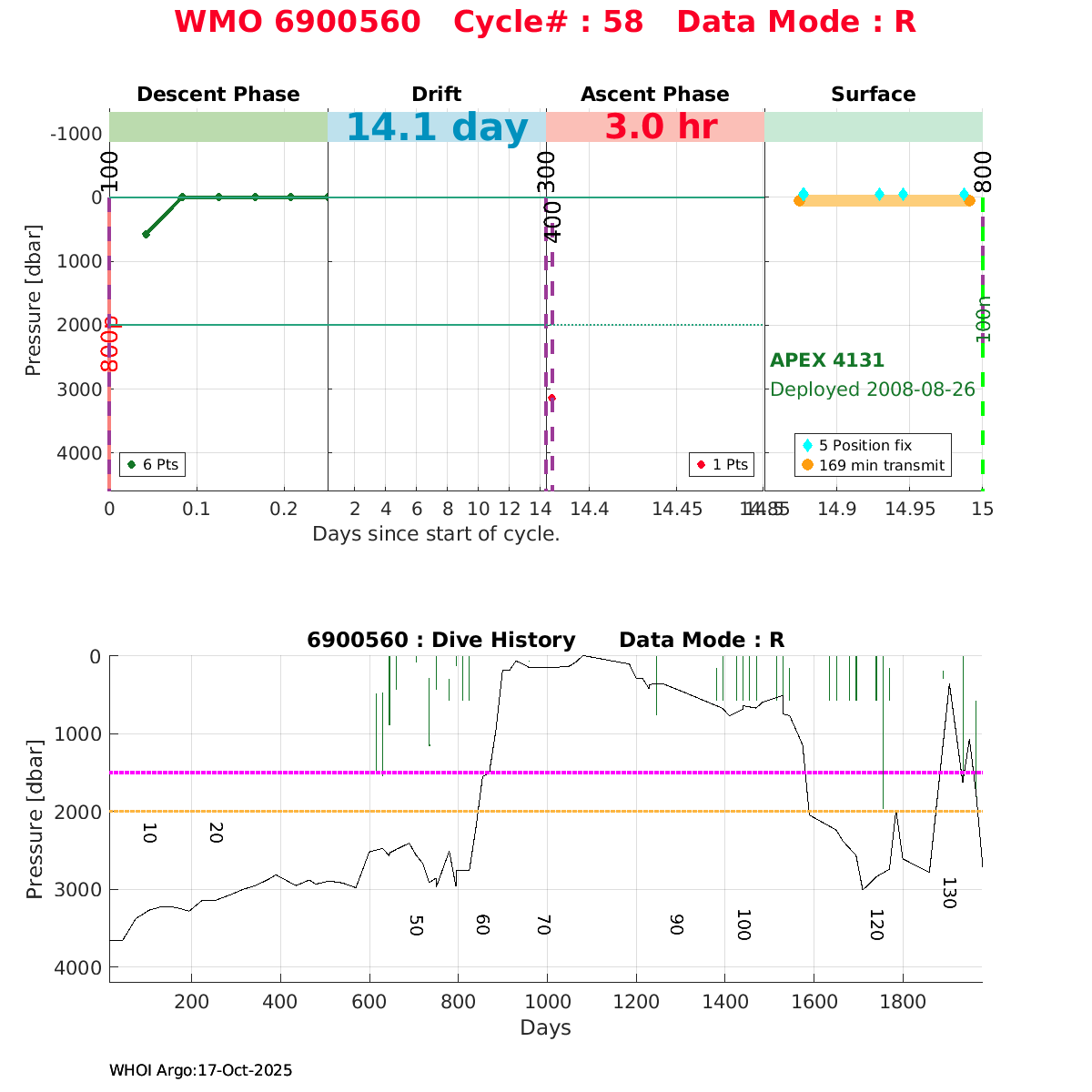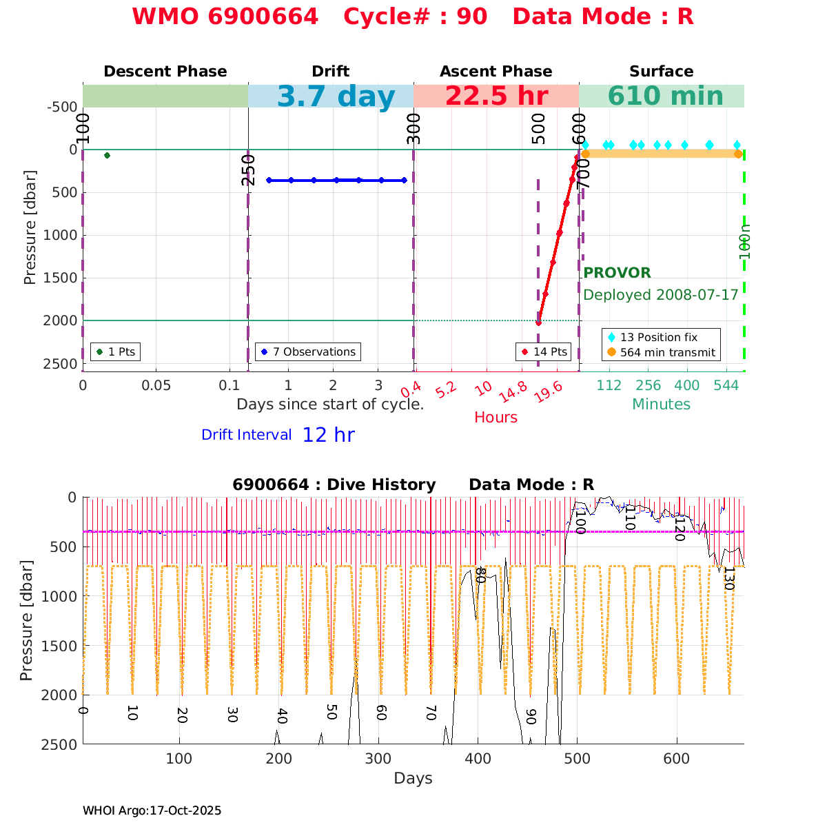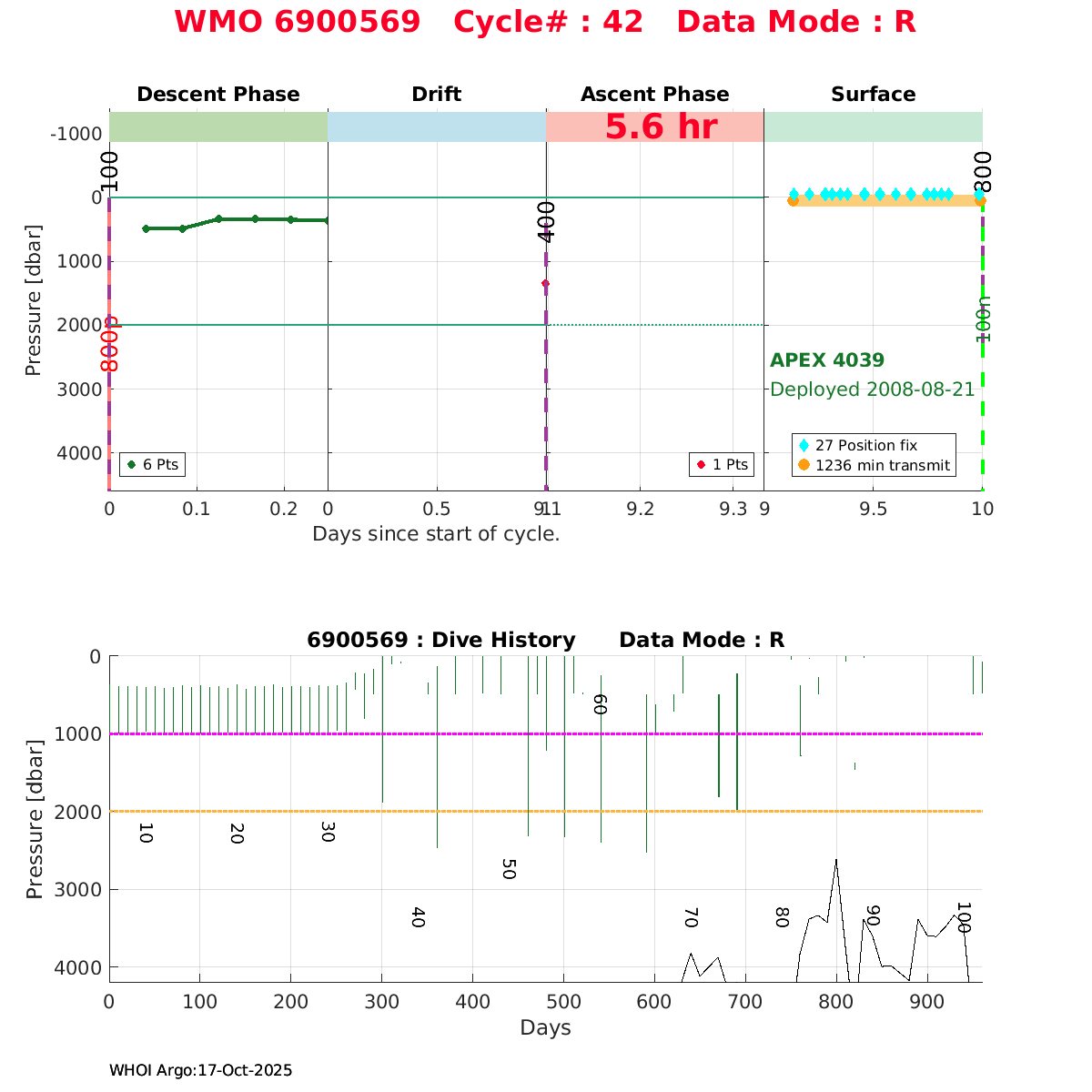 | WMO: #6900569 DAC: coriolis PI: Birgit KLEIN APEX: #4039 DRUCK_2900PSIA: #2619332 SBE41: #4022 Altimeter Comparison (IFREMER) EuroArgo Link | ![]() |