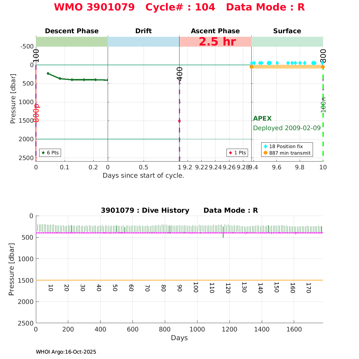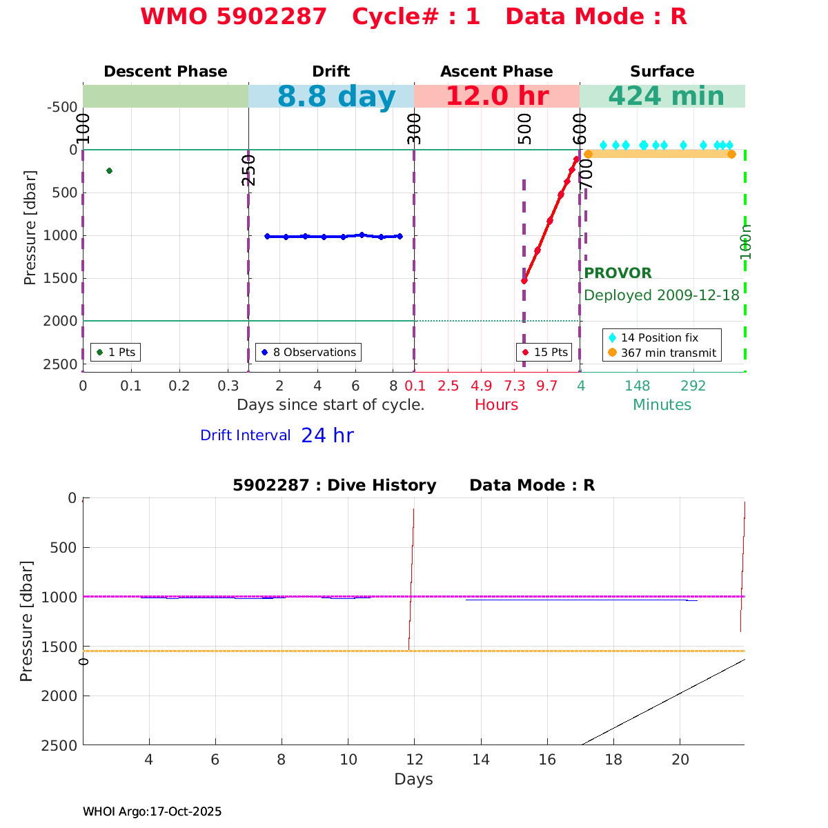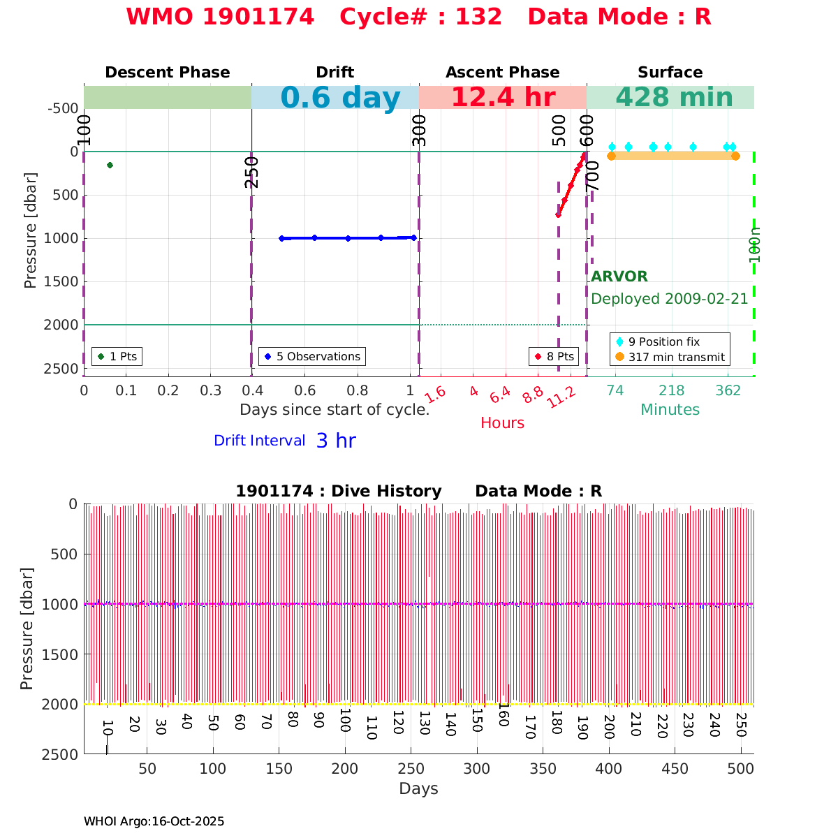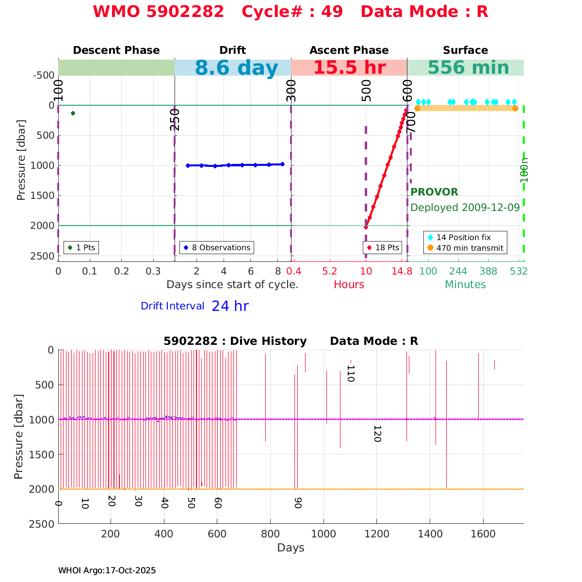 | WMO: #1901179 DAC: coriolis PI: Sabrina SPEICH, Michel ARHAN PROVOR: # FLOATCLOCK: # DRUCK_2900PSIA: #2619551 SBE41CP: #1800 Altimeter Comparison (IFREMER) EuroArgo Link | ![]() |