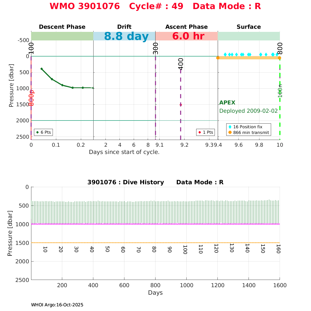 | WMO: #3901076 DAC: coriolis PI: Sunke SCHMIDTKO APEX: # SBE41: #4487 AANDERAA_OPTODE_3830: #1084 Altimeter Comparison (IFREMER) EuroArgo Link | ![]() |