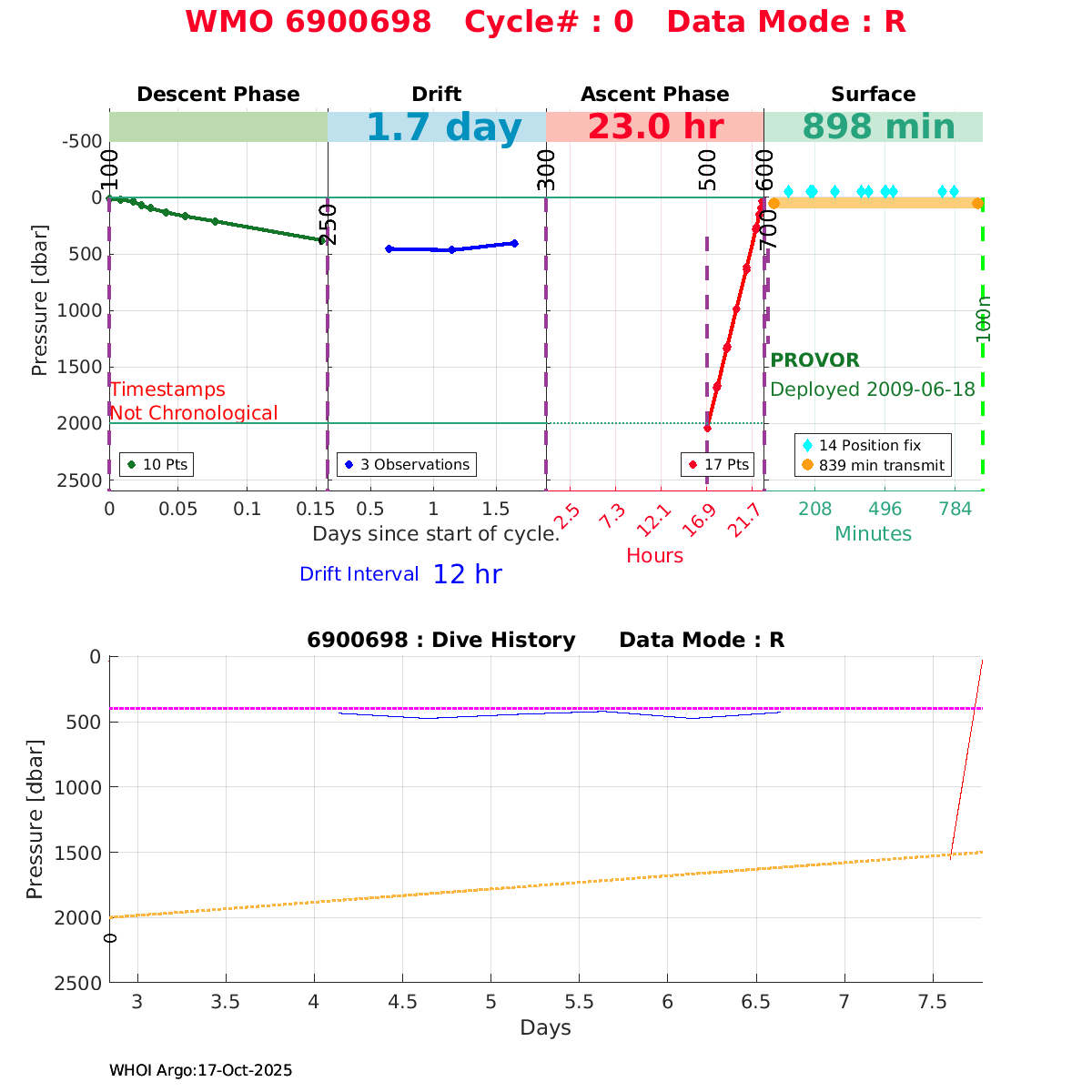 | WMO: #6900698 DAC: coriolis PI: Louis PRIEUR PROVOR: # FLOATCLOCK: # SBE: #n/a SBE41CP: #1759 Altimeter Comparison (IFREMER) EuroArgo Link | n/a | n/a | ![]() |