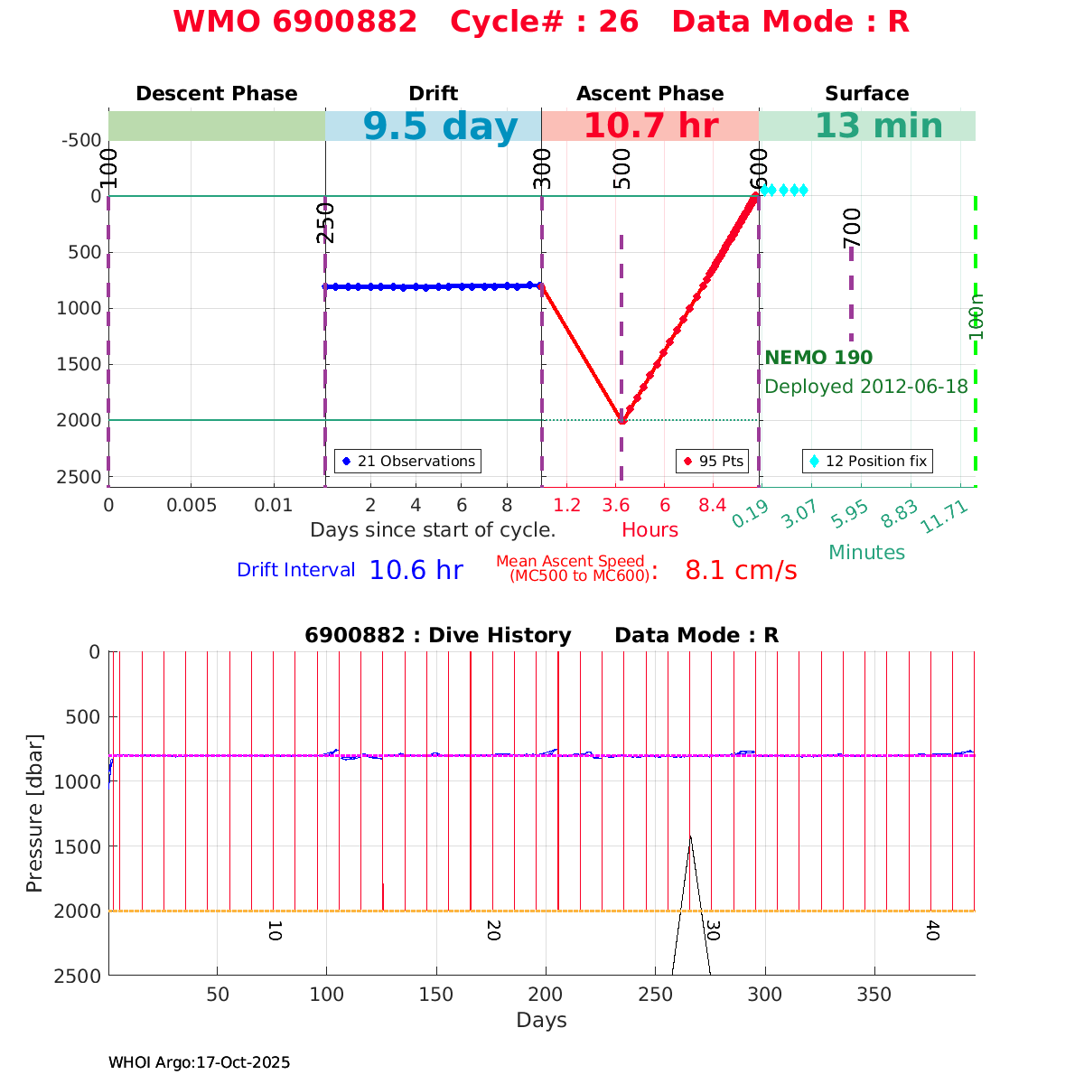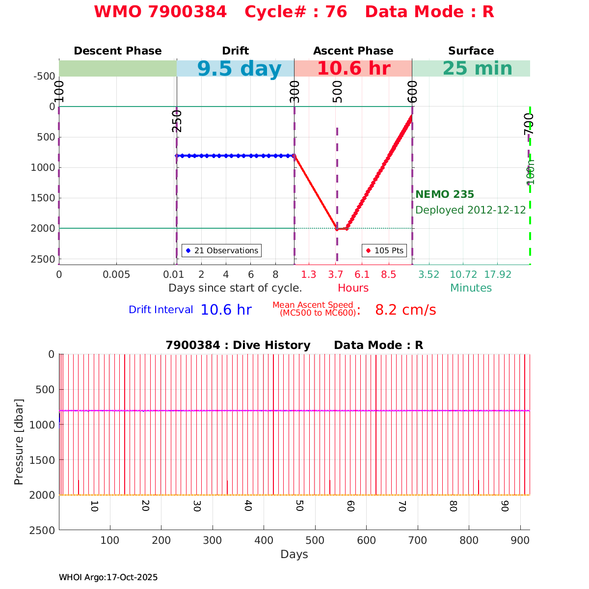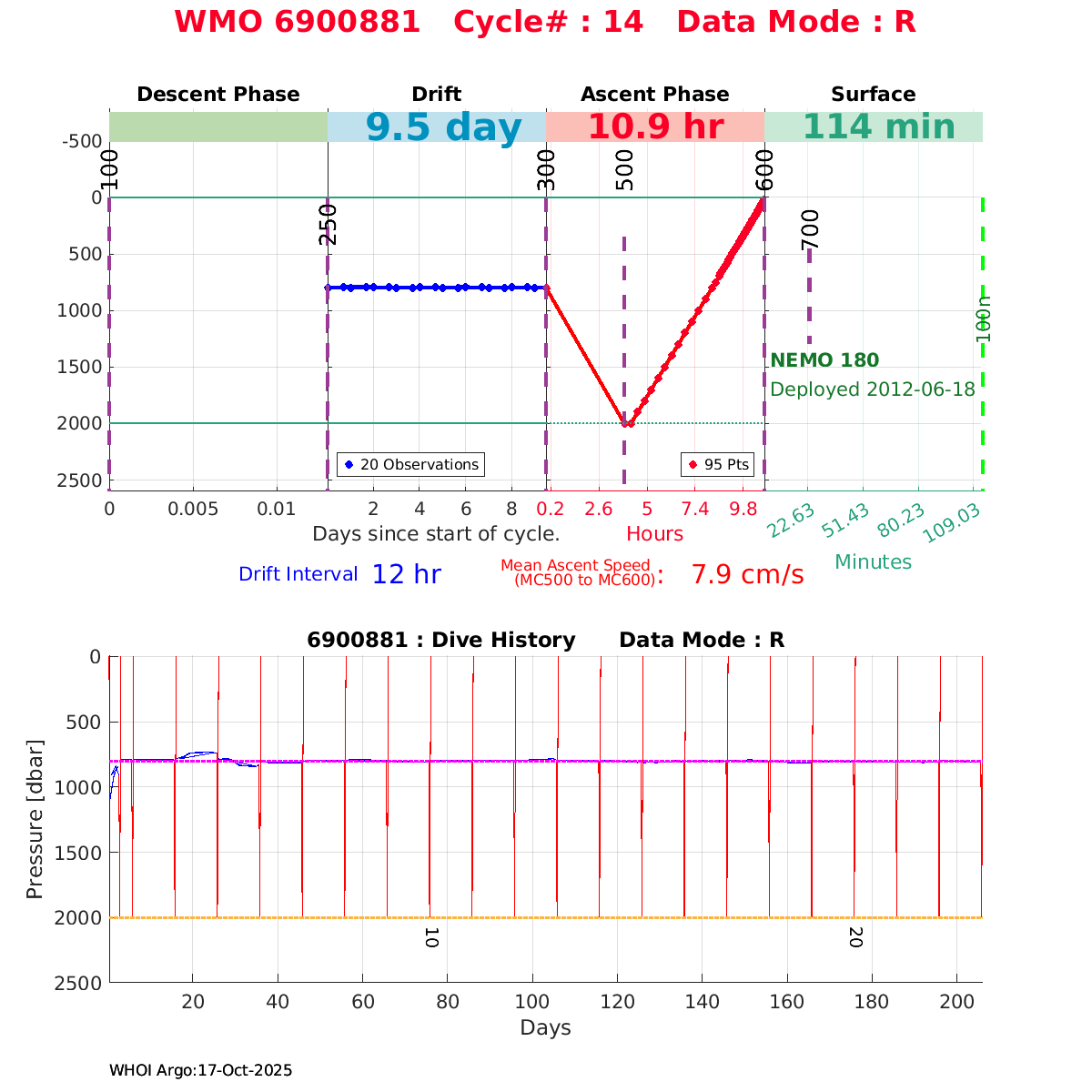 | WMO: #6900662 DAC: coriolis PI: Pedro VELEZ APEX: #3956 DRUCK_2900PSIA: #3038362 SBE41: #3943 Altimeter Comparison (IFREMER) EuroArgo Link | ![]() |