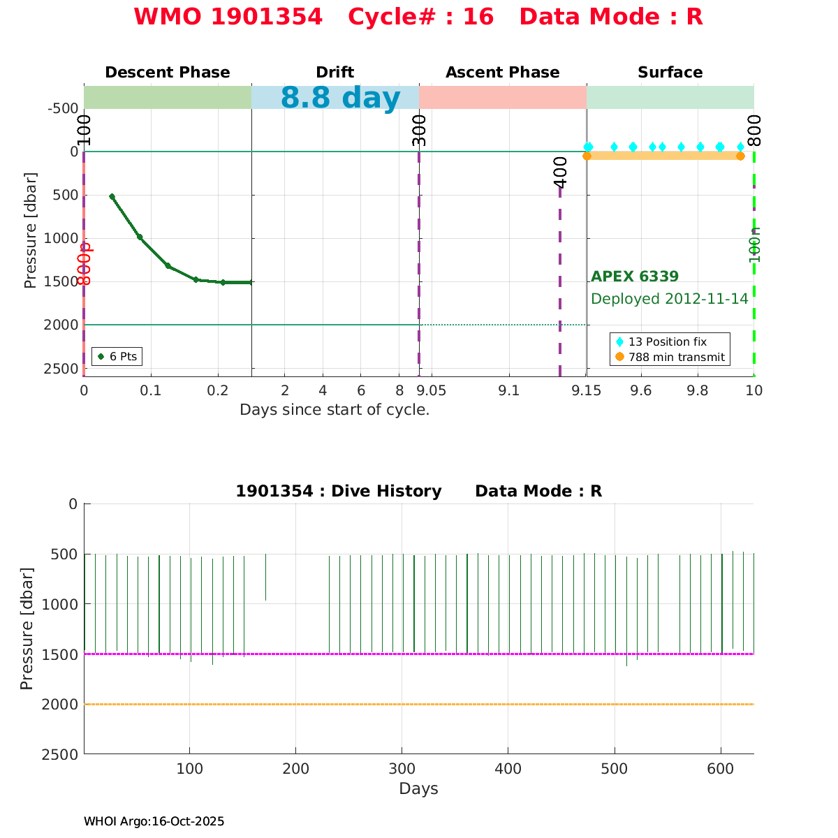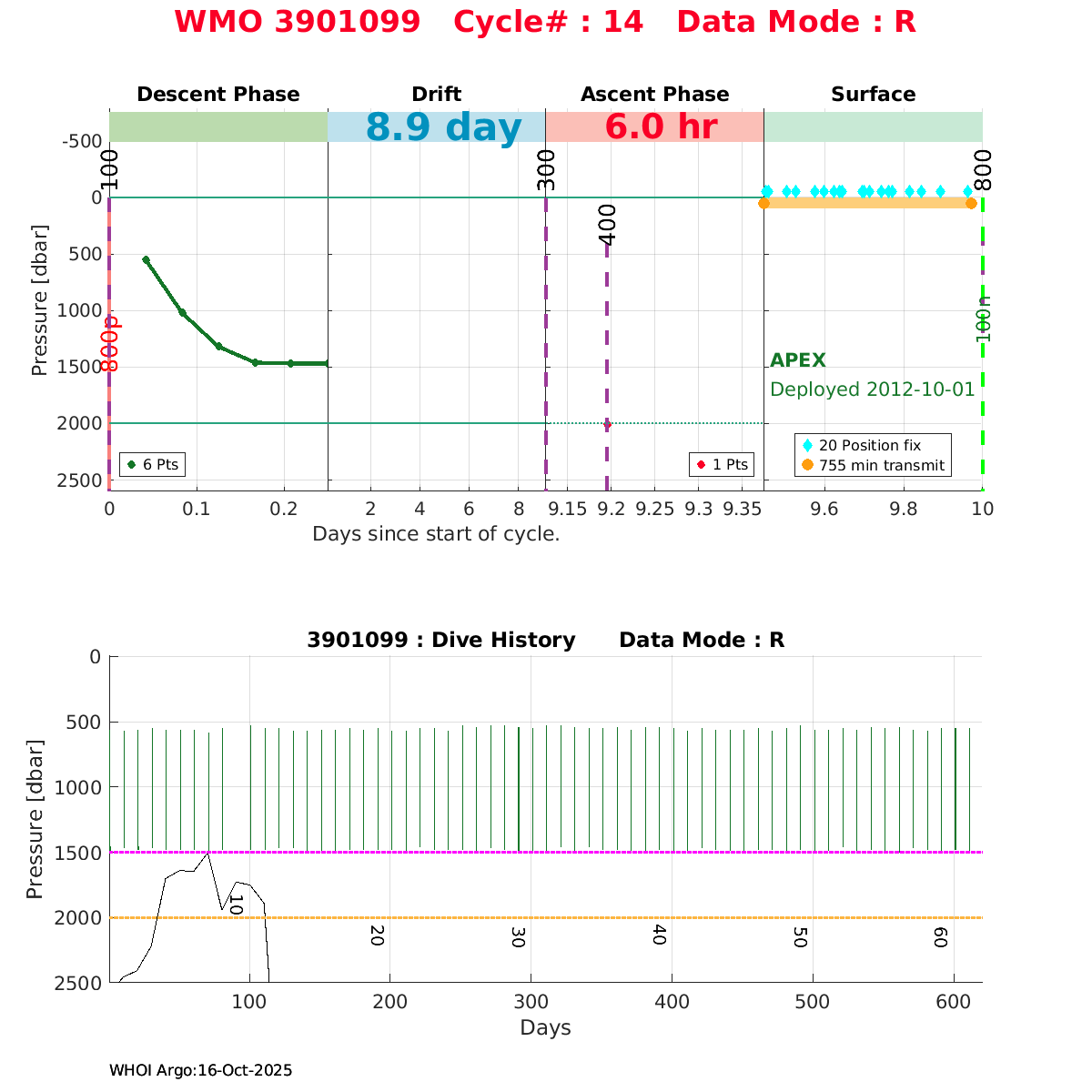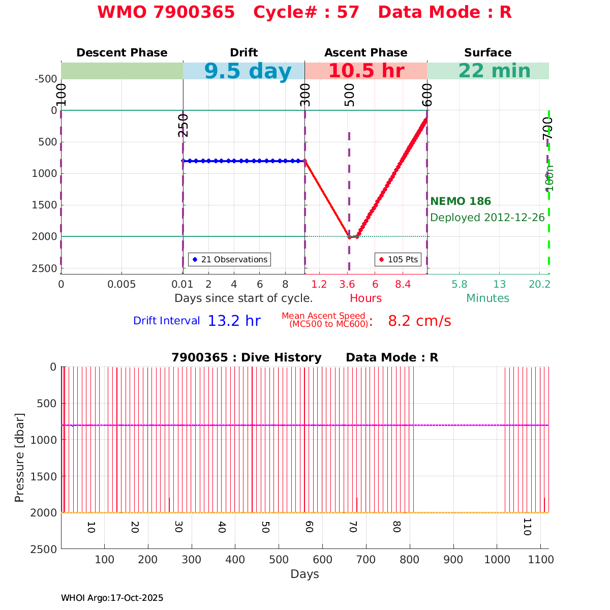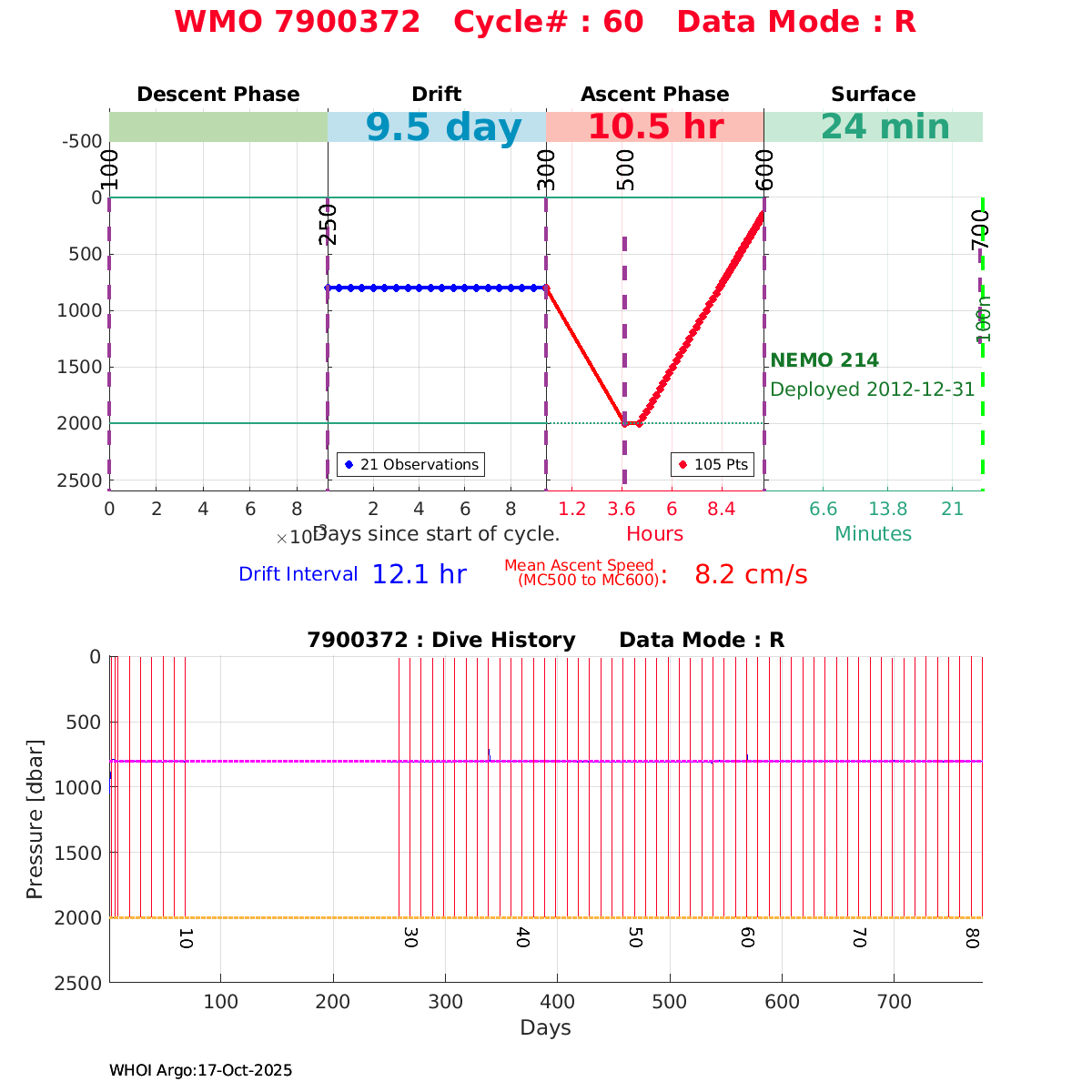 | WMO: #6900662 DAC: coriolis PI: Pedro VELEZ APEX: #3956 DRUCK_2900PSIA: #3038362 SBE41: #3943 Altimeter Comparison (IFREMER) EuroArgo Link | ![]() |