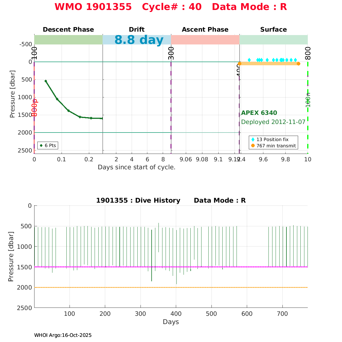 | WMO: #1901355 DAC: coriolis PI: Holger GIESE APEX: #6340 DRUCK_2900PSIA: #3473989 SBE41: #5951 Altimeter Comparison (IFREMER) EuroArgo Link | ![]() |