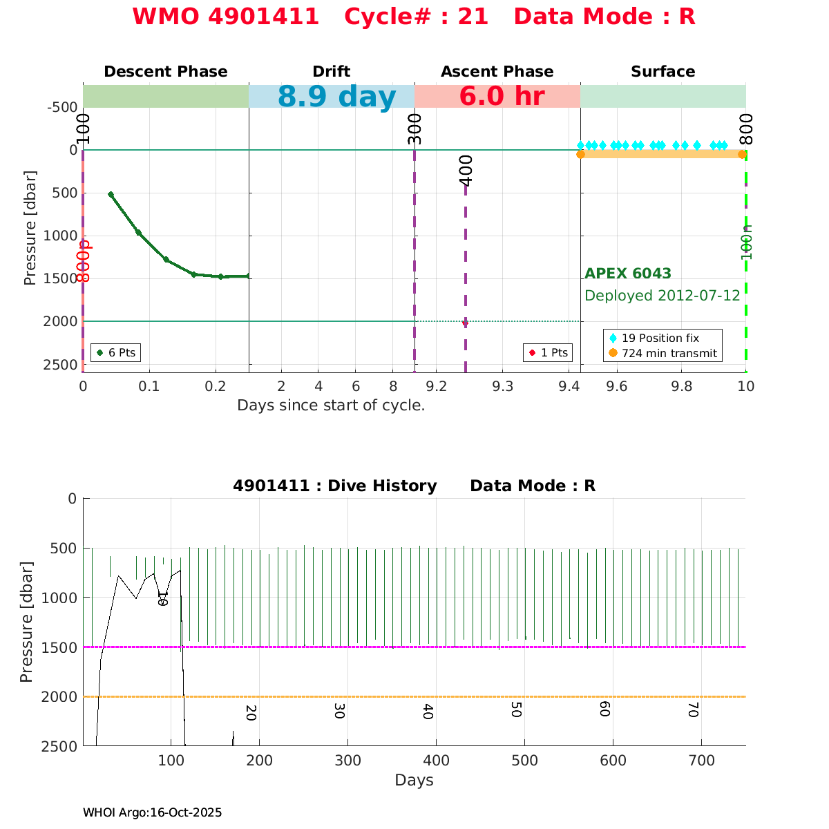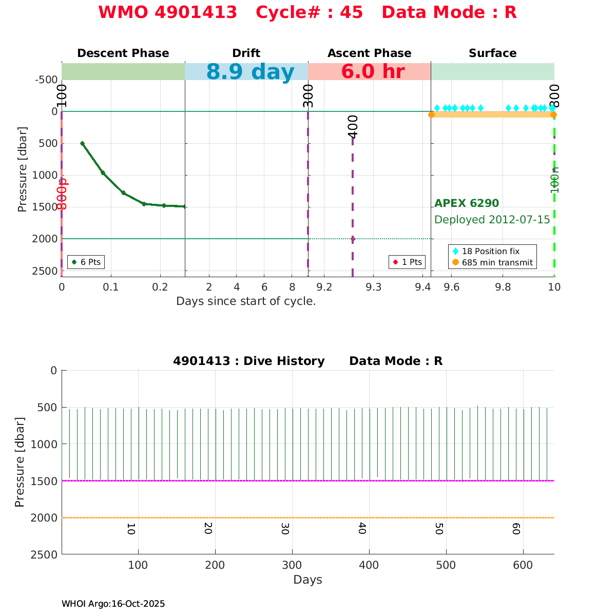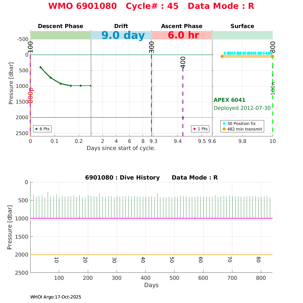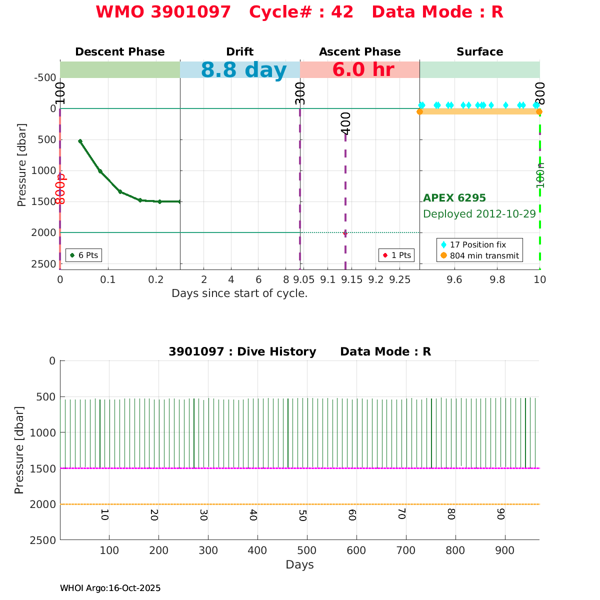 | WMO: #4901411 DAC: coriolis PI: Holger GIESE APEX: #6043 DRUCK_2900PSIA: #3198459 SBE41: #5669 Altimeter Comparison (IFREMER) EuroArgo Link | ![]() |
