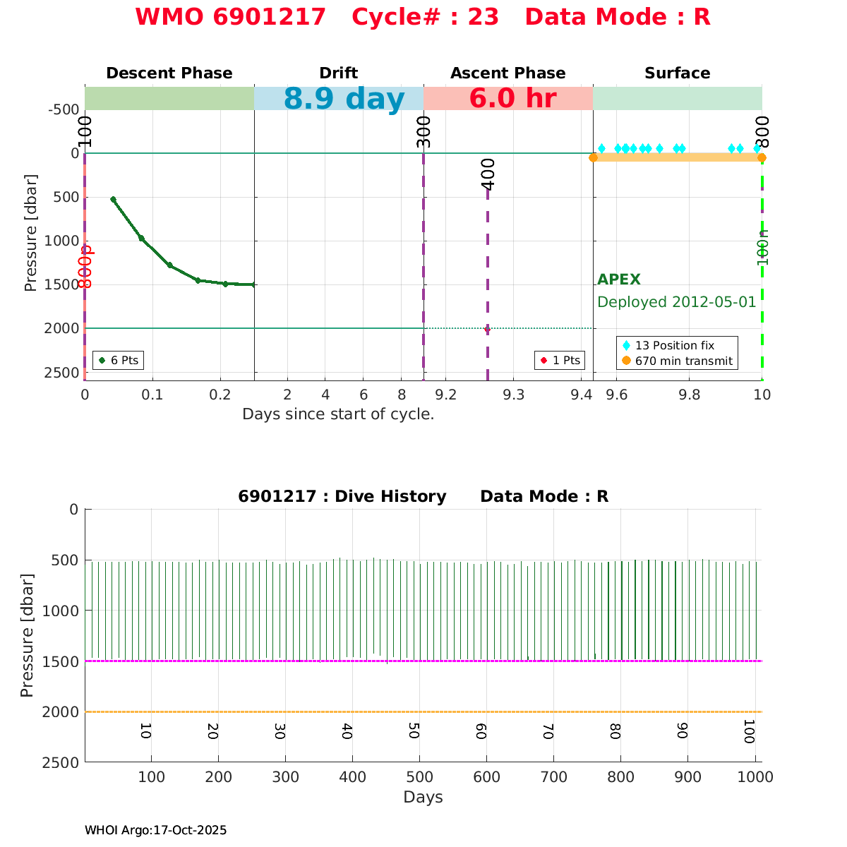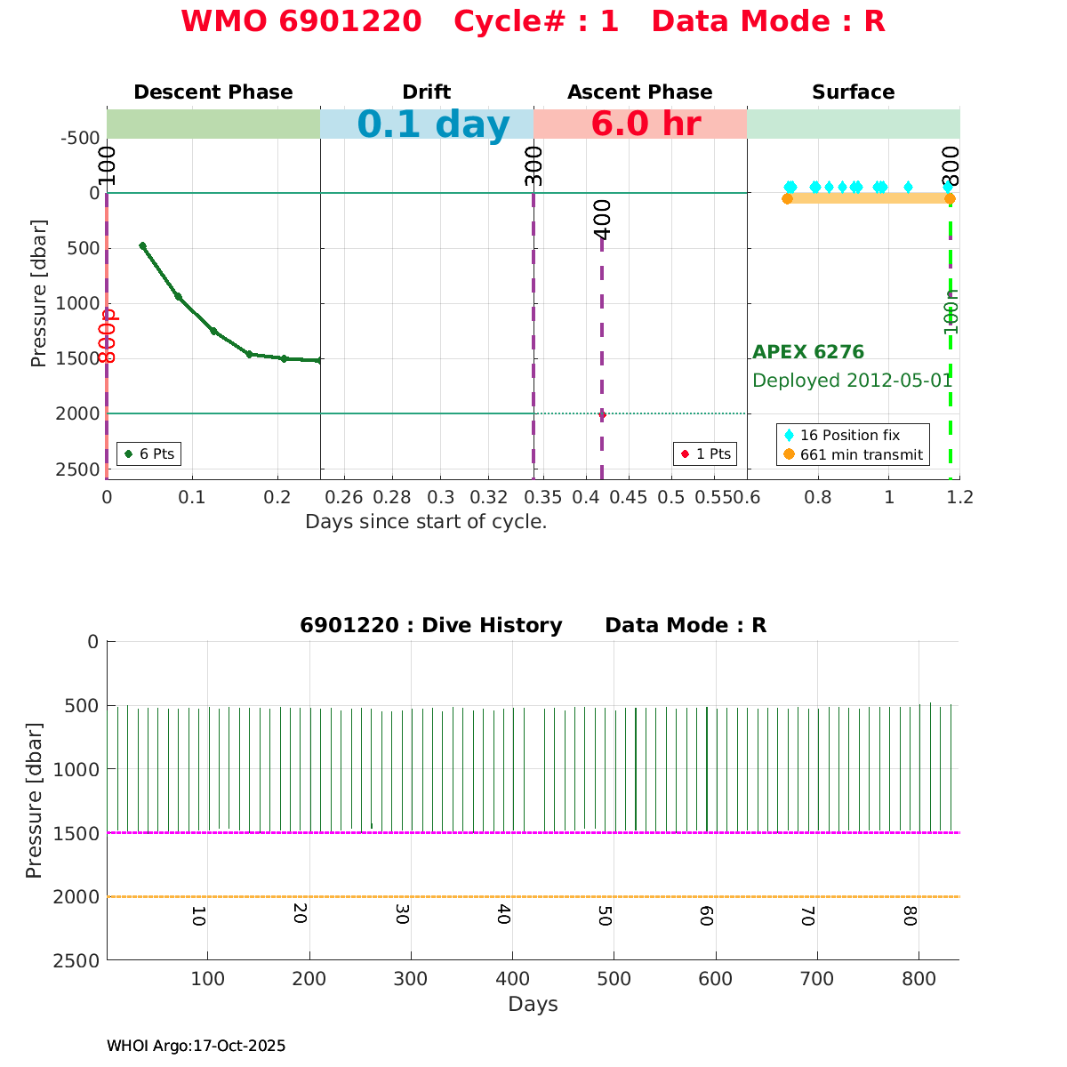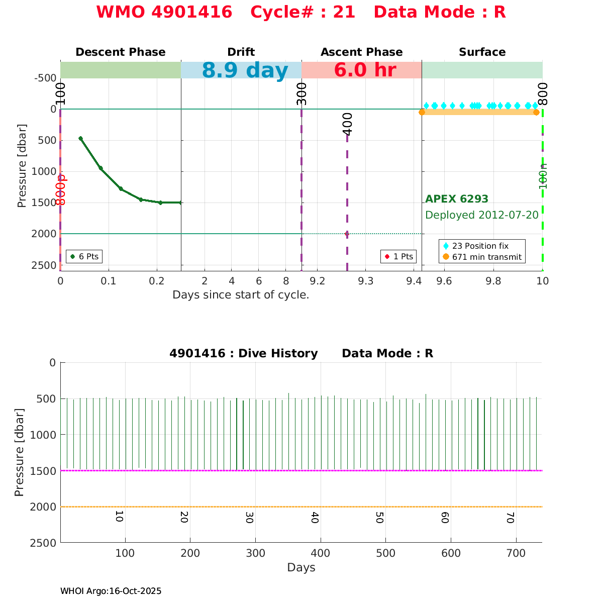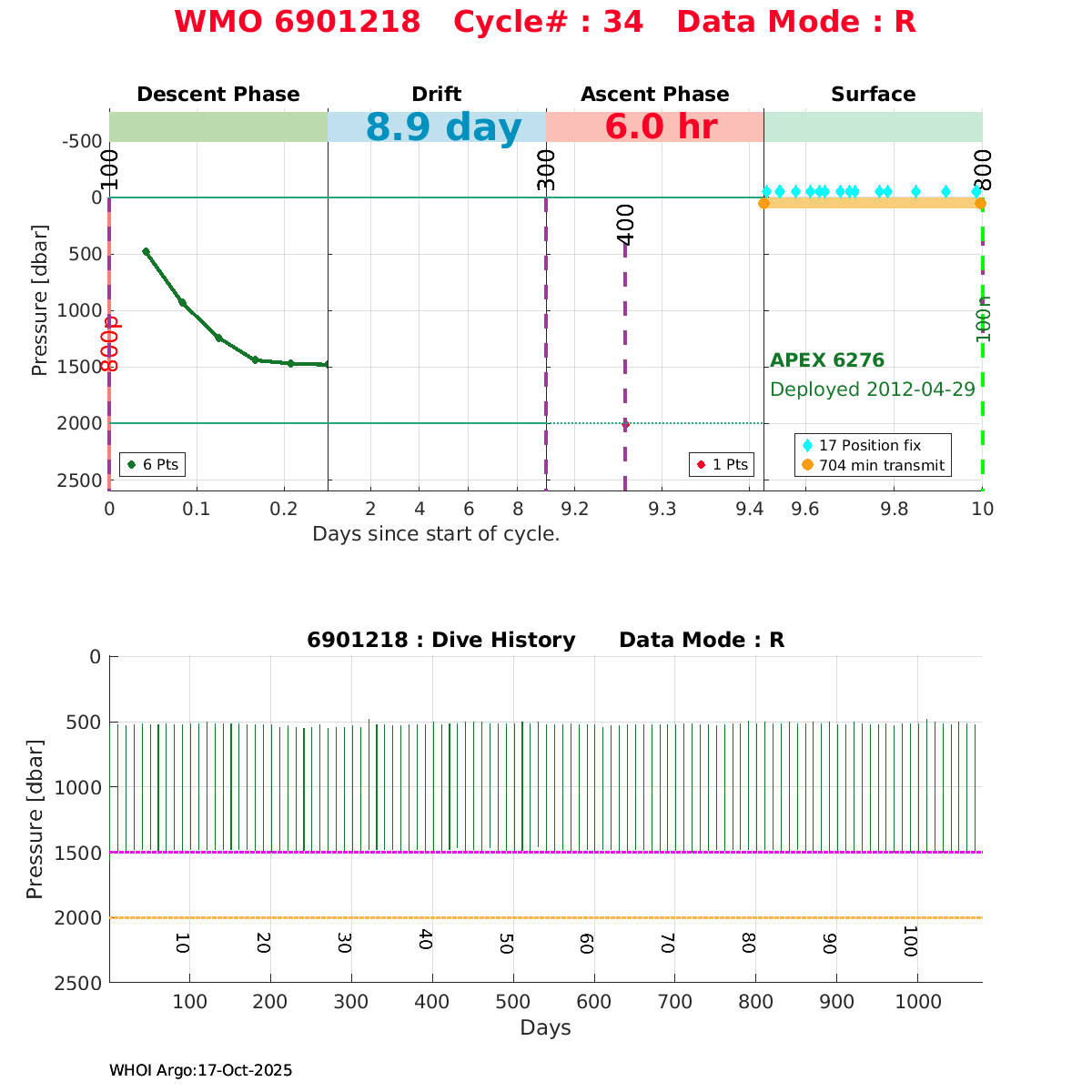 | WMO: #4901411 DAC: coriolis PI: Holger GIESE APEX: #6043 DRUCK_2900PSIA: #3198459 SBE41: #5669 Altimeter Comparison (IFREMER) EuroArgo Link | ![]() |