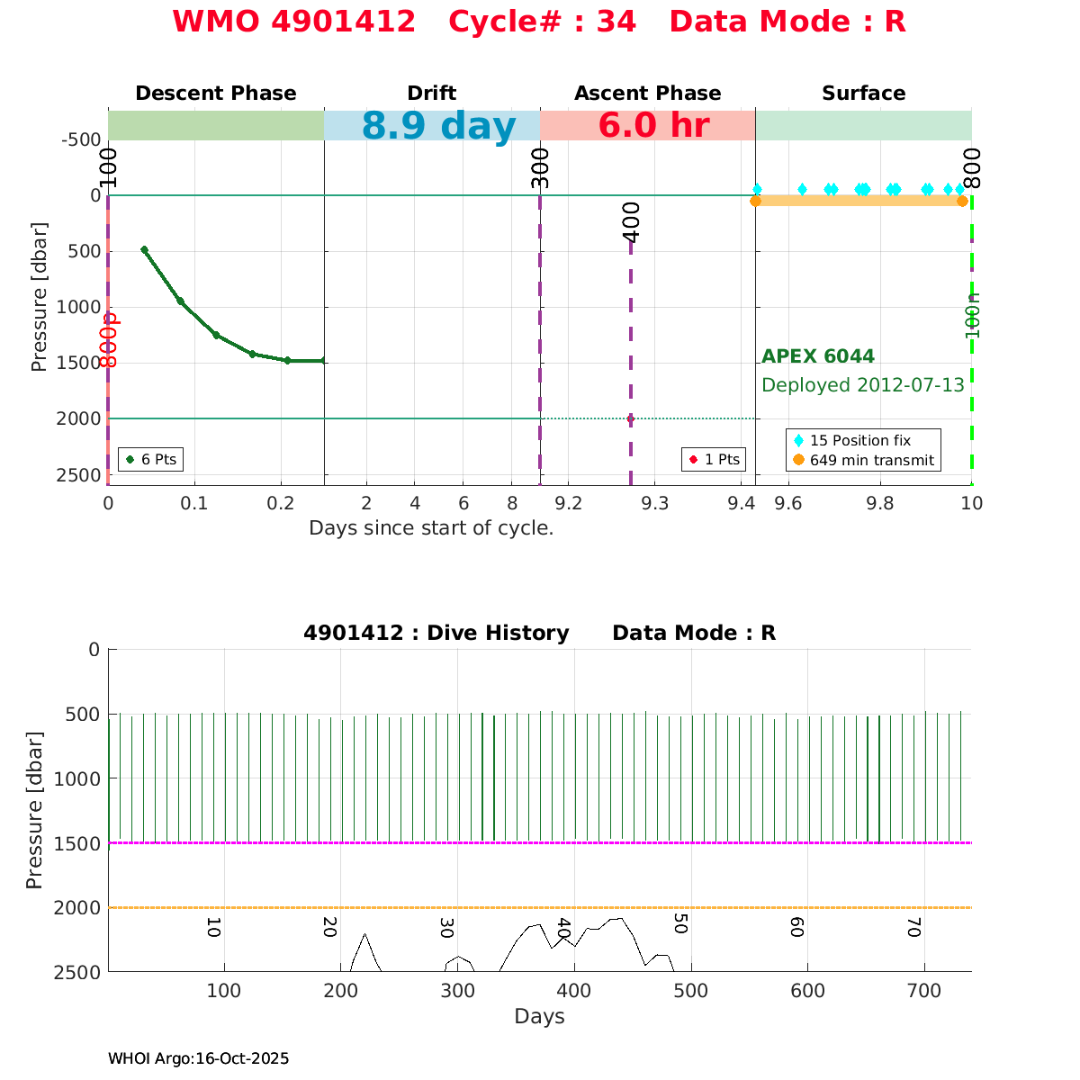 | WMO: #4901412 DAC: coriolis PI: Holger GIESE APEX: #6044 DRUCK_2900PSIA: #3212078 SBE41: #5675 Altimeter Comparison (IFREMER) EuroArgo Link | ![]() |