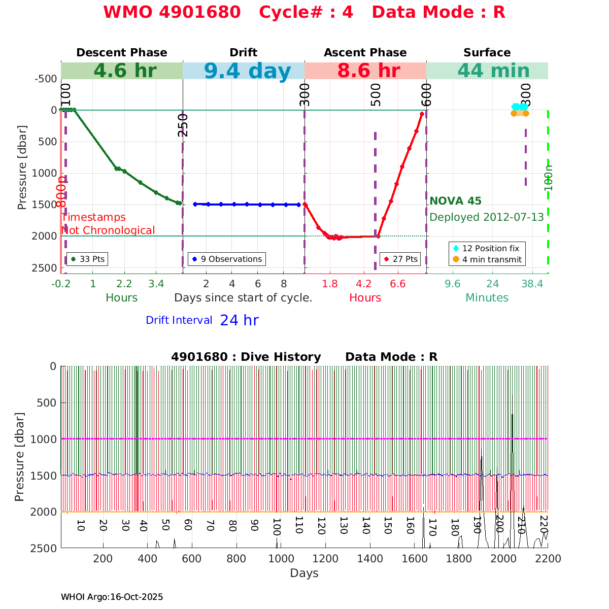 | WMO: #4901680 DAC: coriolis PI: Holger GIESE NOVA: #45 KISTLER_2900PSIA: #2097454 SBE41CP: #4336 Altimeter Comparison (IFREMER) EuroArgo Link | ![]() |