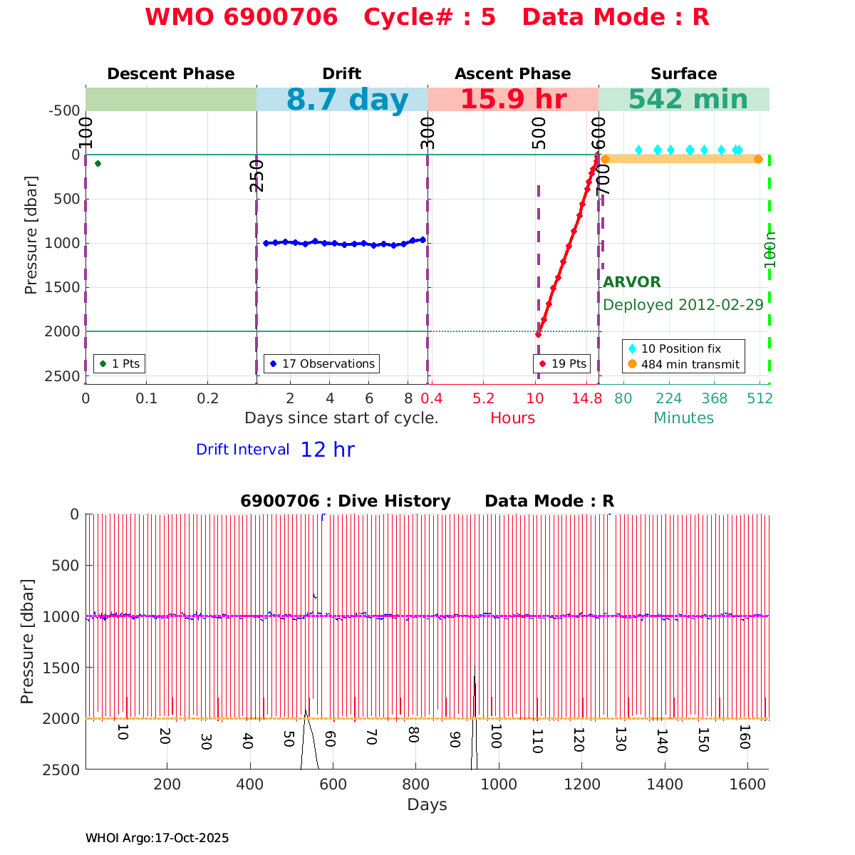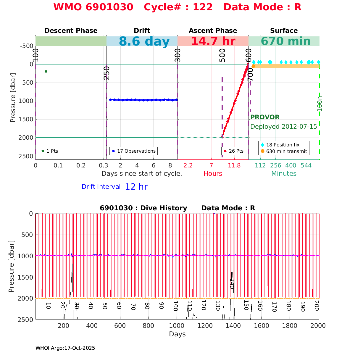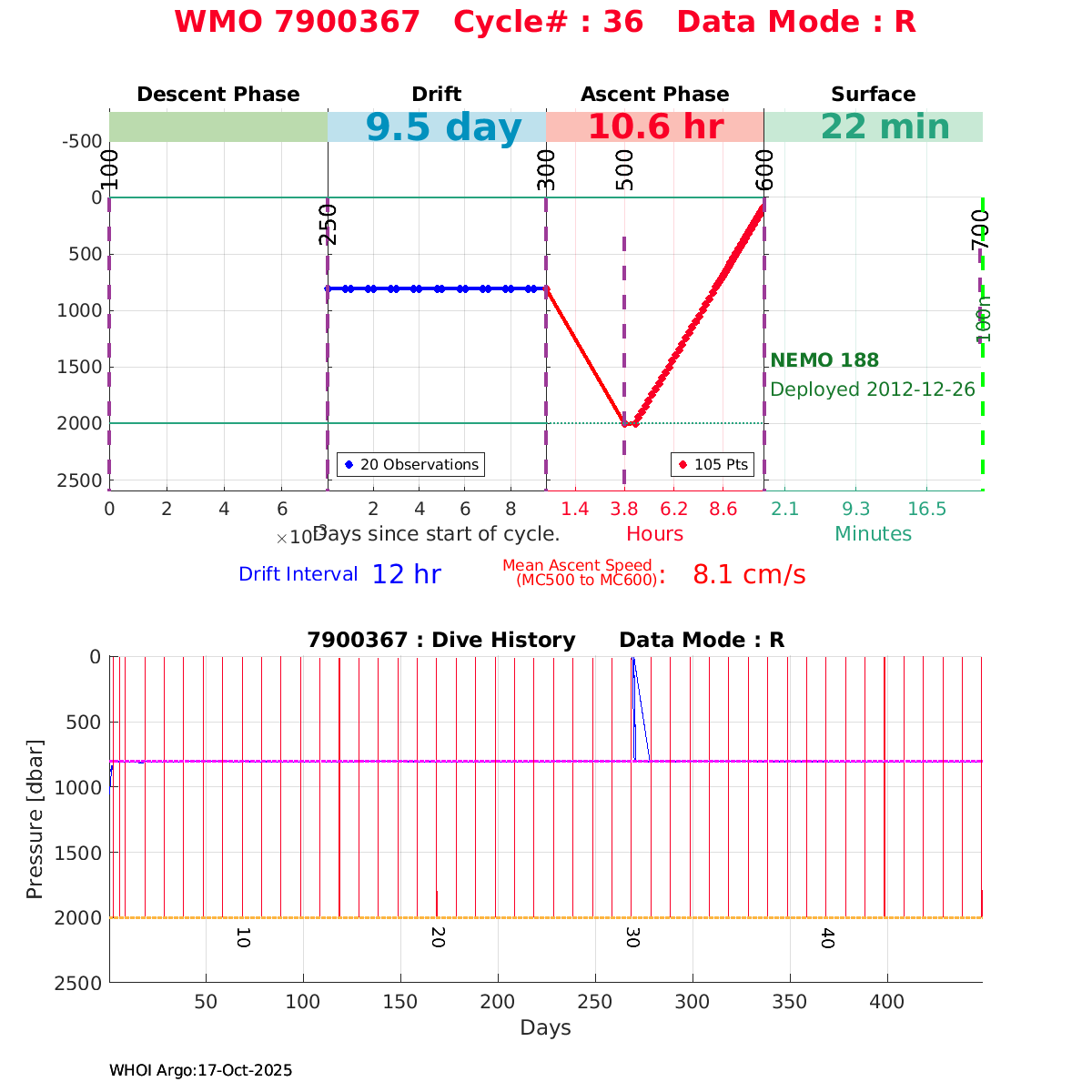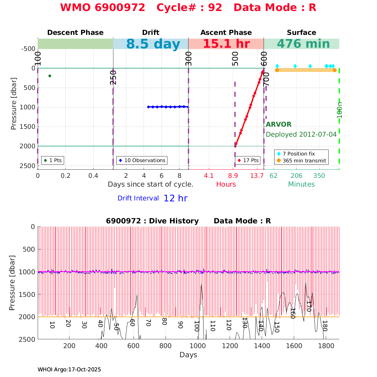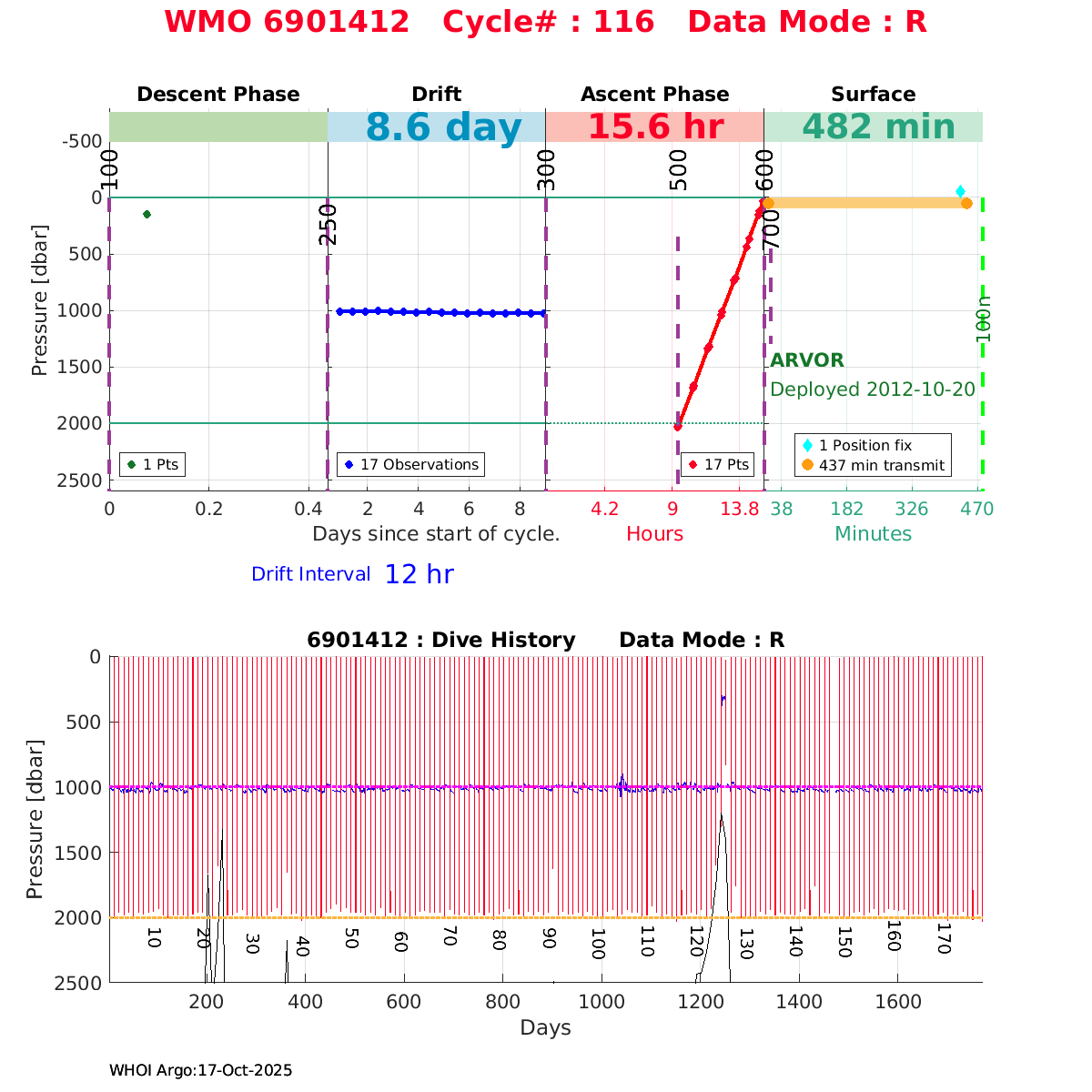 | WMO: #6901474 DAC: coriolis PI: Herve CLAUSTRE PROVOR_III: # KISTLER_2900PSIA: #2099881 SBE41CP: #3982 AANDERAA_OPTODE_4330: #843 SATLANTIC_OCR504_ICSW: #40225 ECO_FLBBCD: #2446 C_ROVER: #44 SUNA_V2: #202 Altimeter Comparison (IFREMER) EuroArgo Link | ![]() |