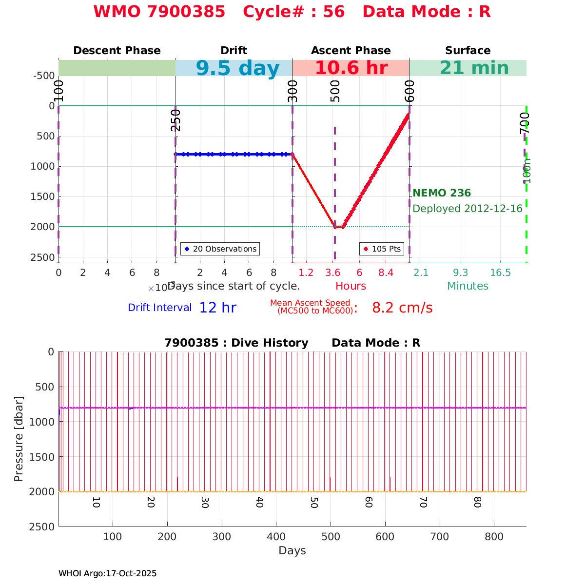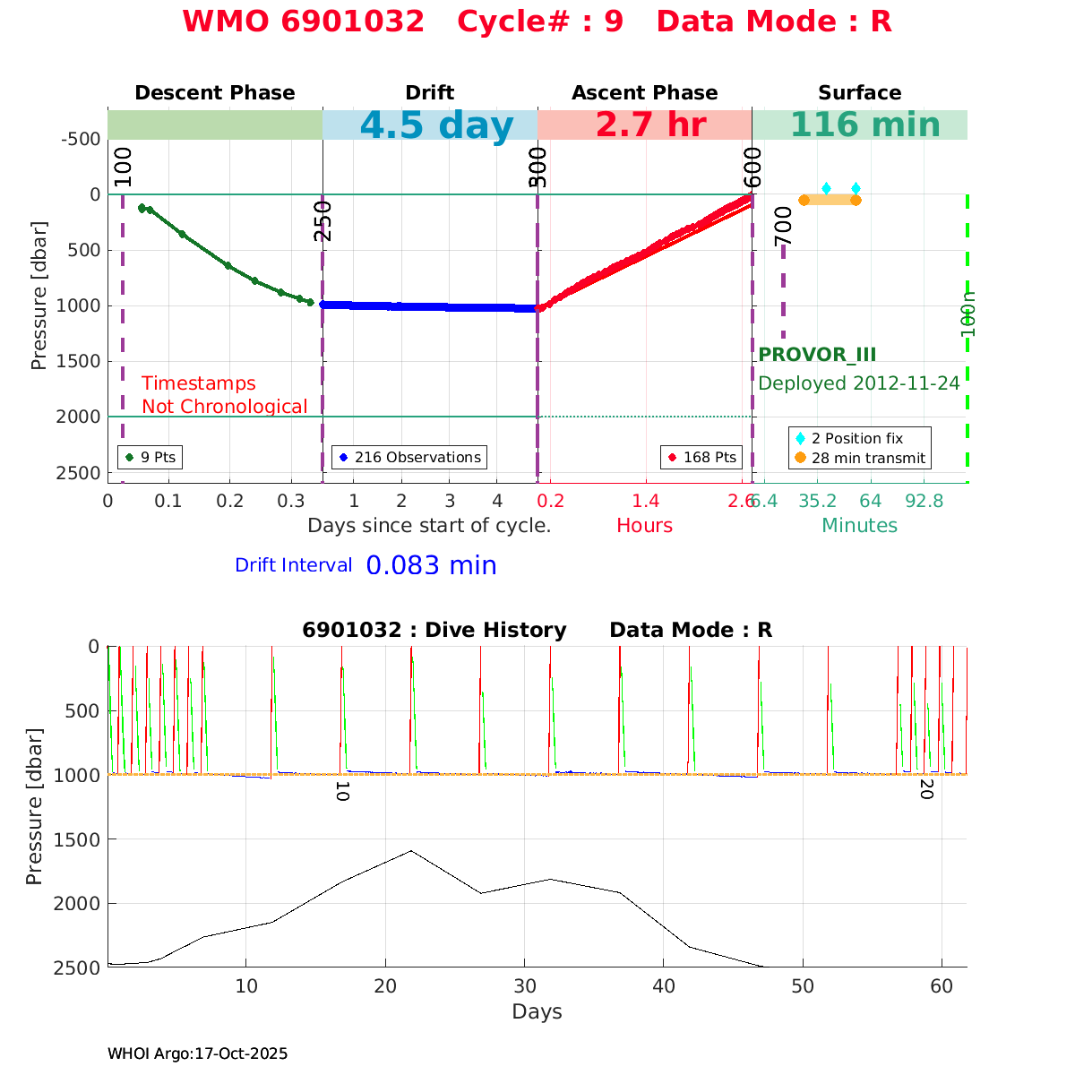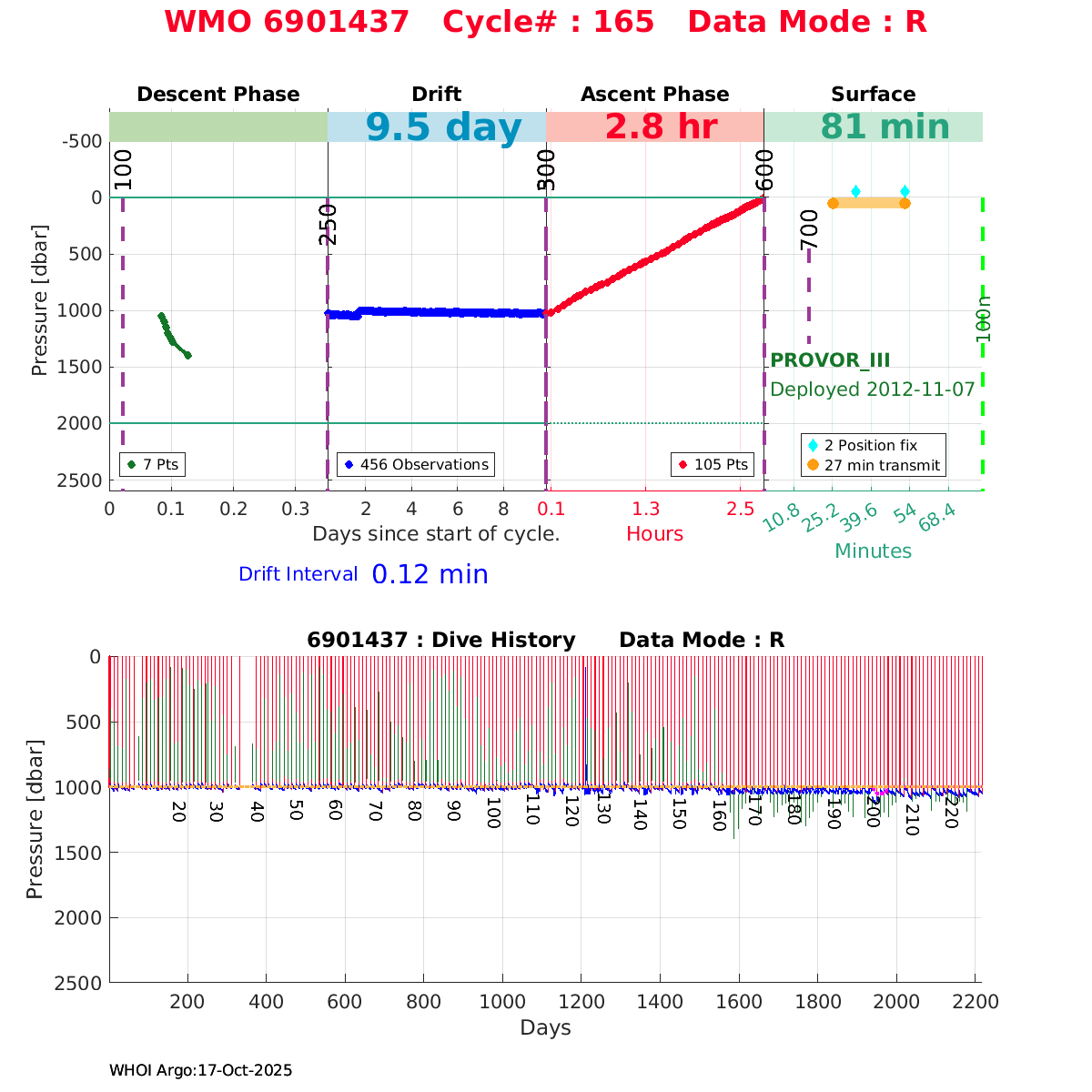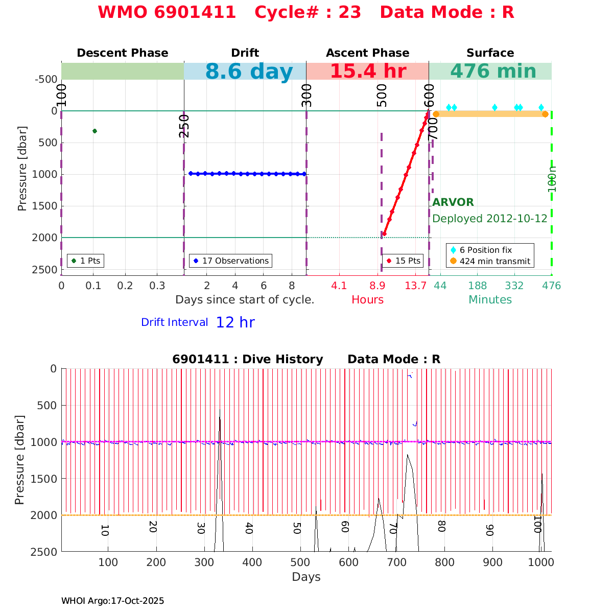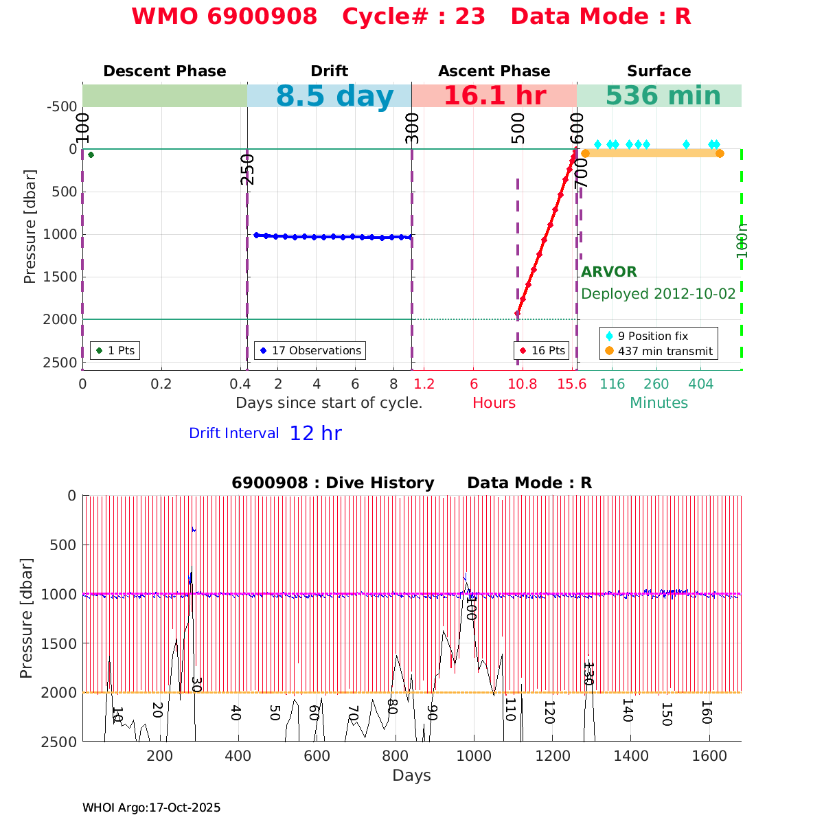 | WMO: #6901474 DAC: coriolis PI: Herve CLAUSTRE PROVOR_III: # KISTLER_2900PSIA: #2099881 SBE41CP: #3982 AANDERAA_OPTODE_4330: #843 SATLANTIC_OCR504_ICSW: #40225 ECO_FLBBCD: #2446 C_ROVER: #44 SUNA_V2: #202 Altimeter Comparison (IFREMER) EuroArgo Link | ![]() |