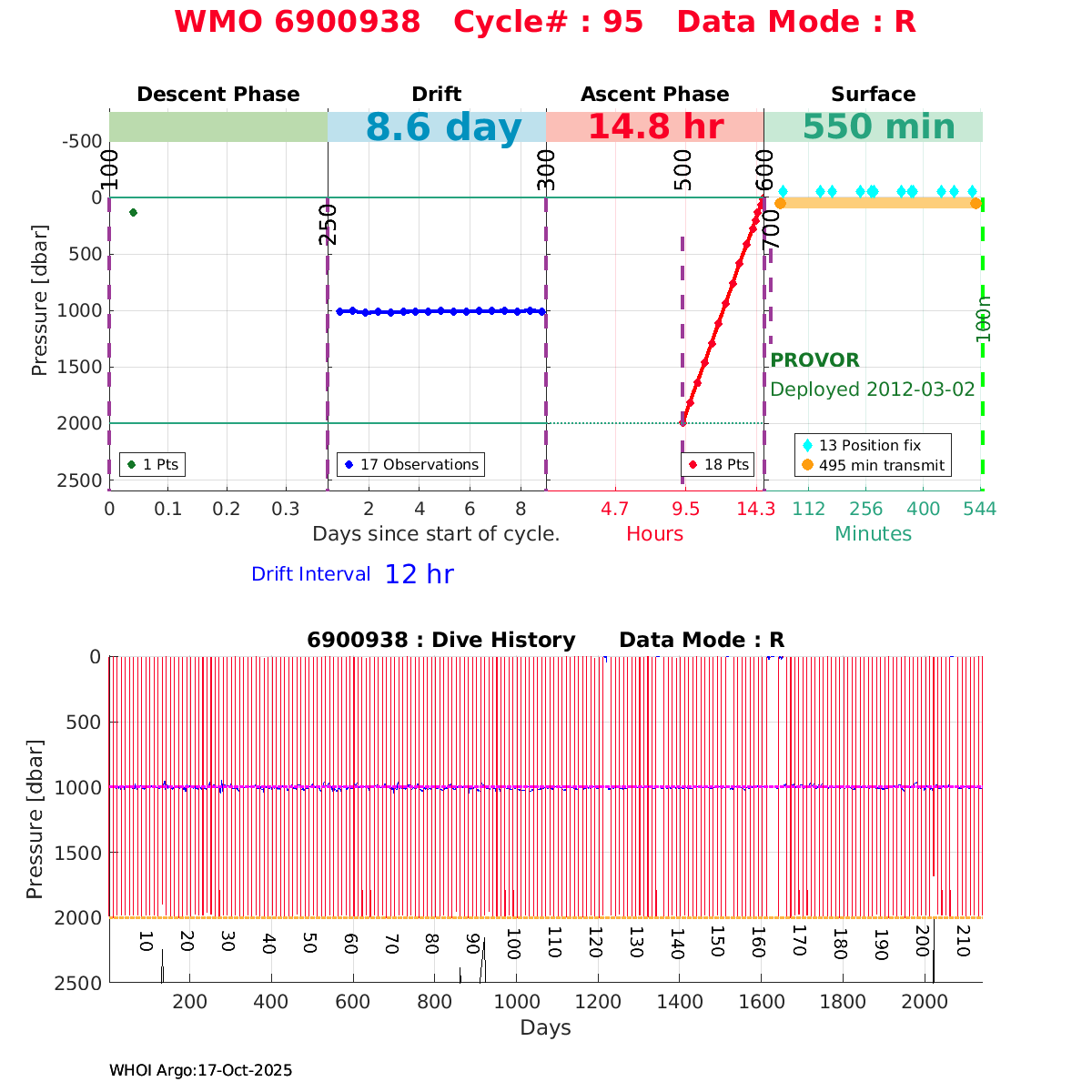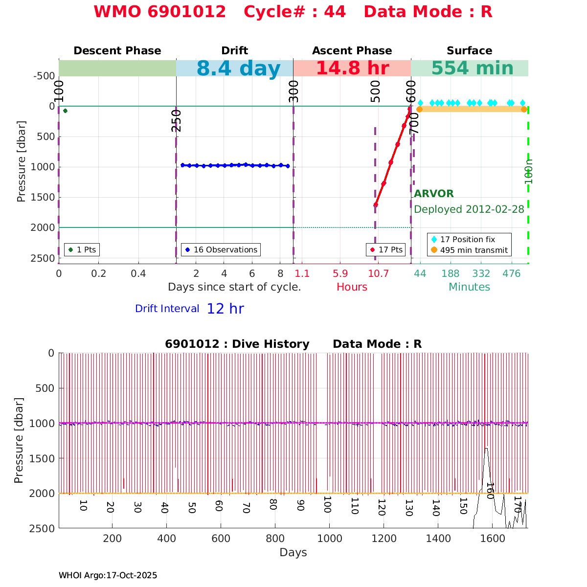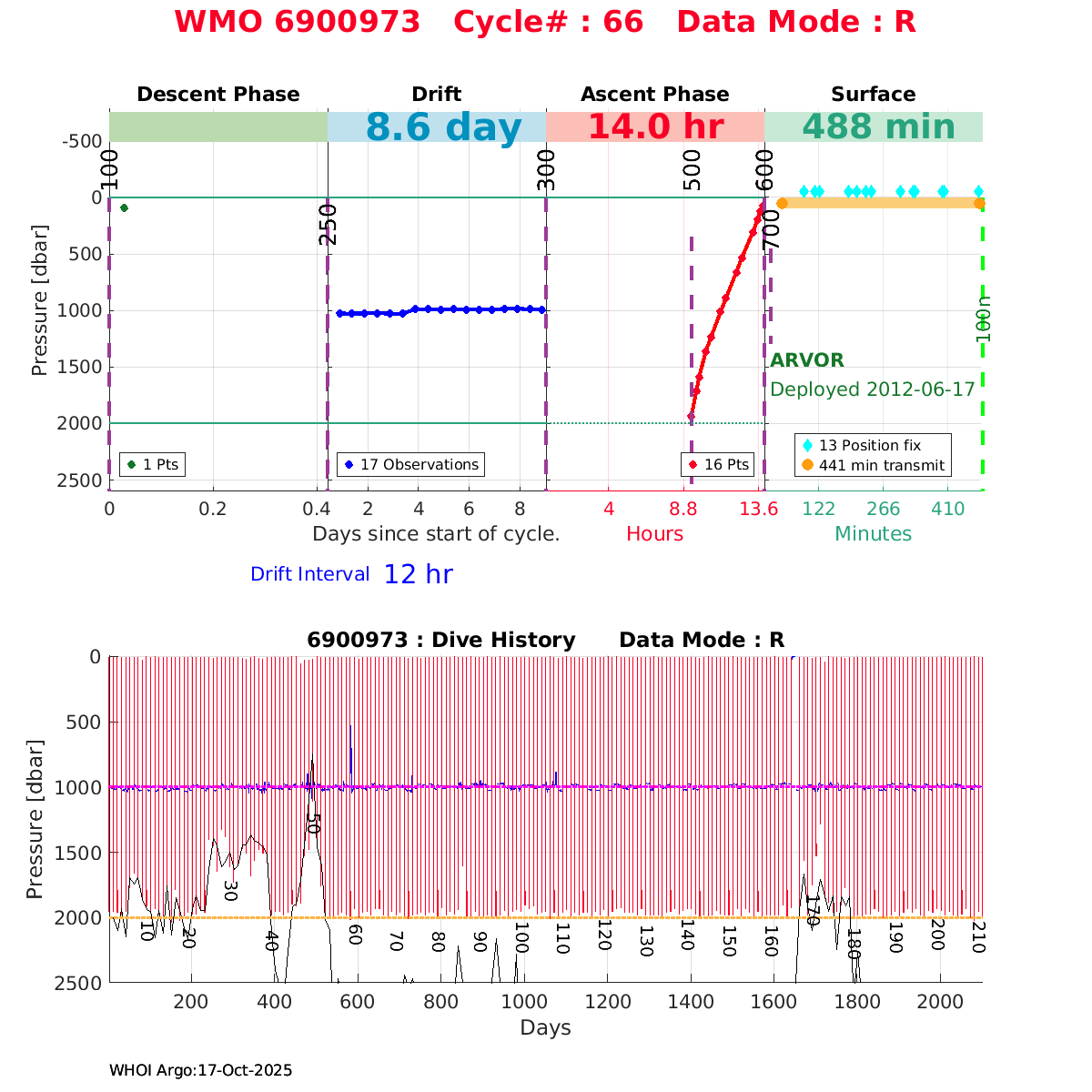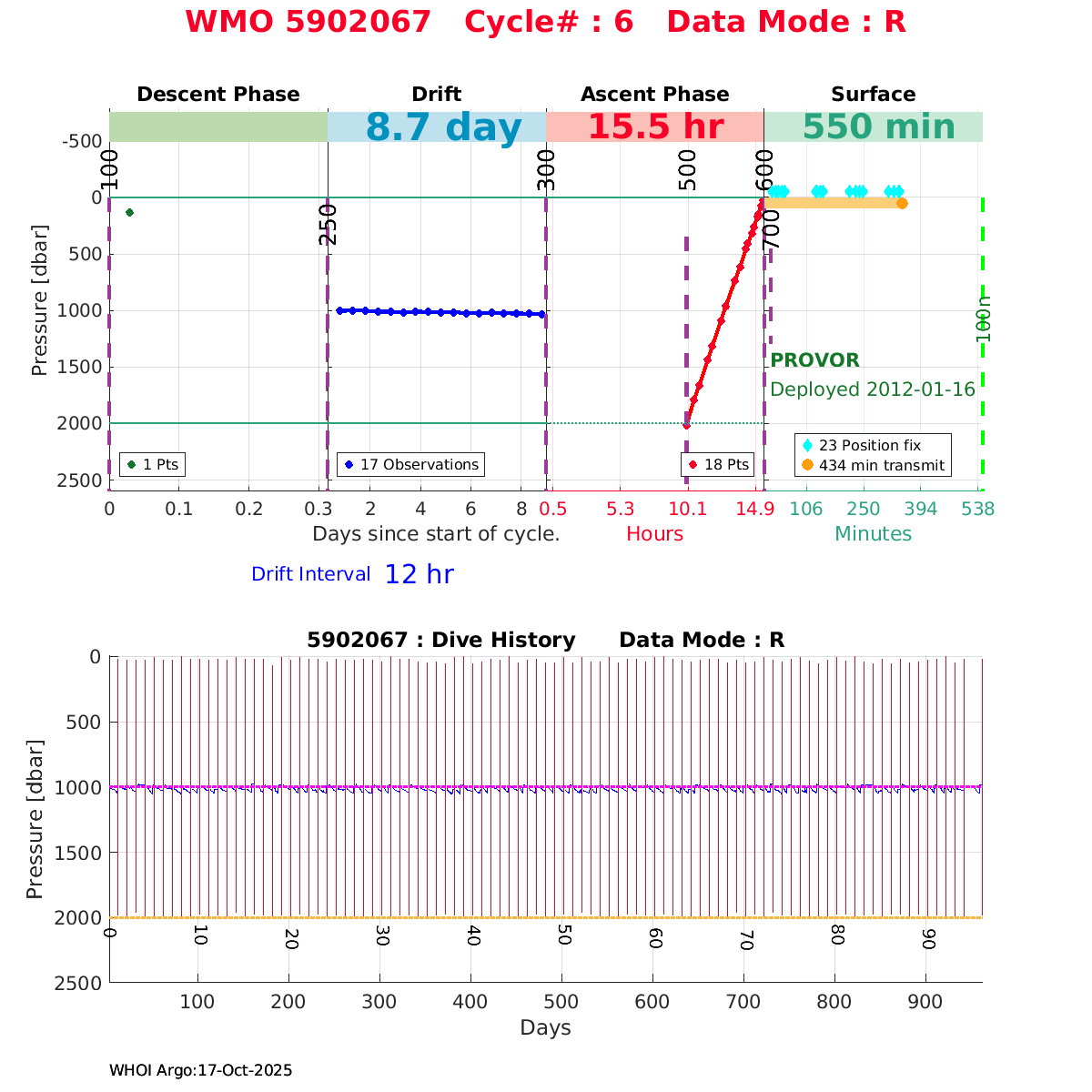 | WMO: #6901474 DAC: coriolis PI: Herve CLAUSTRE PROVOR_III: # KISTLER_2900PSIA: #2099881 SBE41CP: #3982 AANDERAA_OPTODE_4330: #843 SATLANTIC_OCR504_ICSW: #40225 ECO_FLBBCD: #2446 C_ROVER: #44 SUNA_V2: #202 Altimeter Comparison (IFREMER) EuroArgo Link | ![]() |