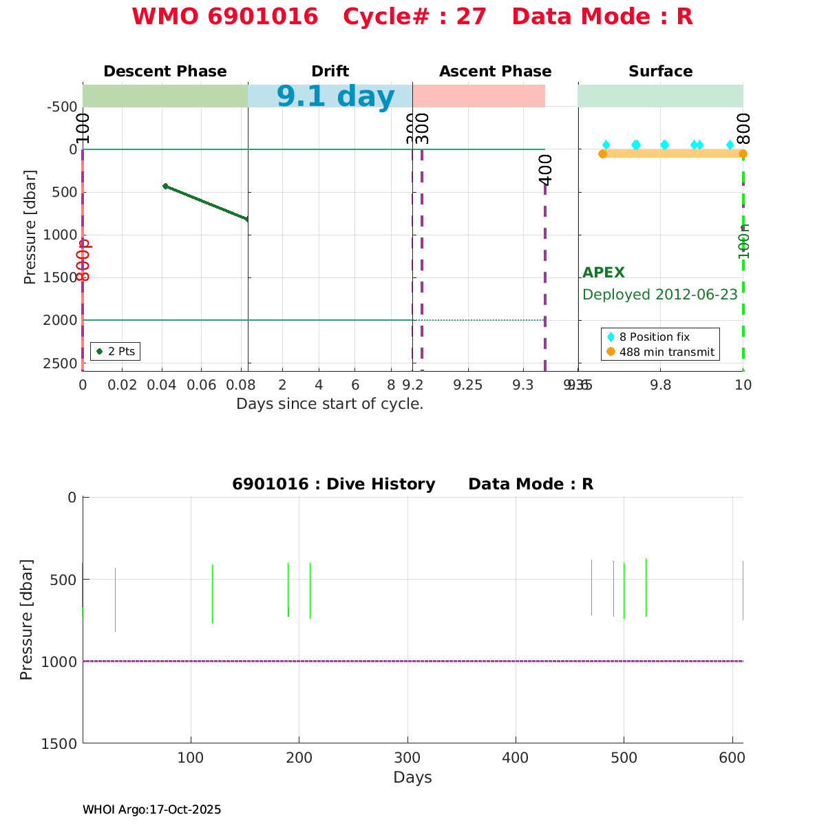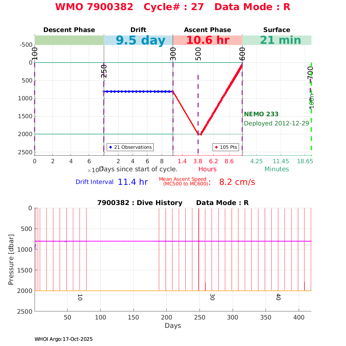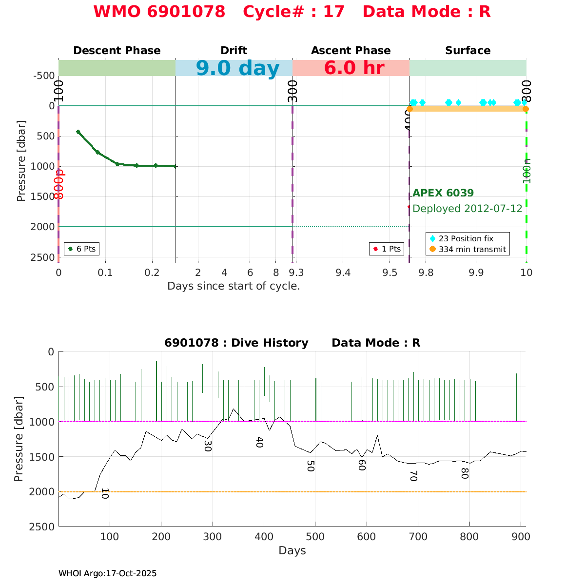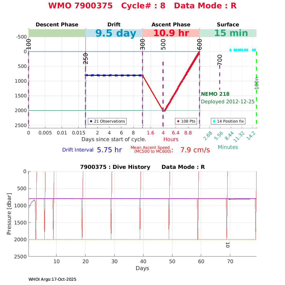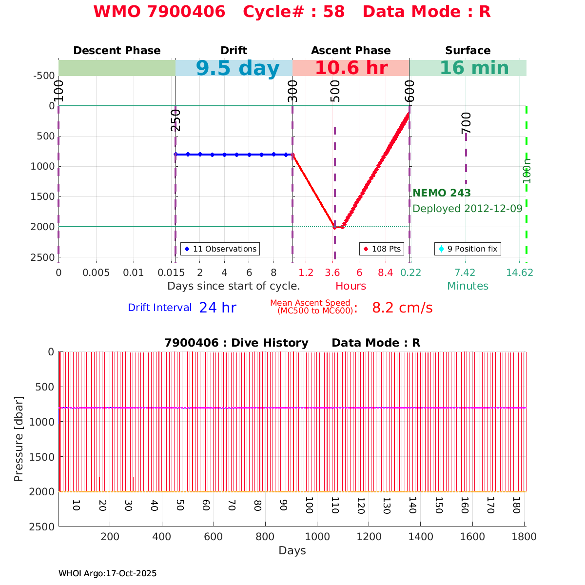 | WMO: #6901474 DAC: coriolis PI: Herve CLAUSTRE PROVOR_III: # KISTLER_2900PSIA: #2099881 SBE41CP: #3982 AANDERAA_OPTODE_4330: #843 SATLANTIC_OCR504_ICSW: #40225 ECO_FLBBCD: #2446 C_ROVER: #44 SUNA_V2: #202 Altimeter Comparison (IFREMER) EuroArgo Link | ![]() |