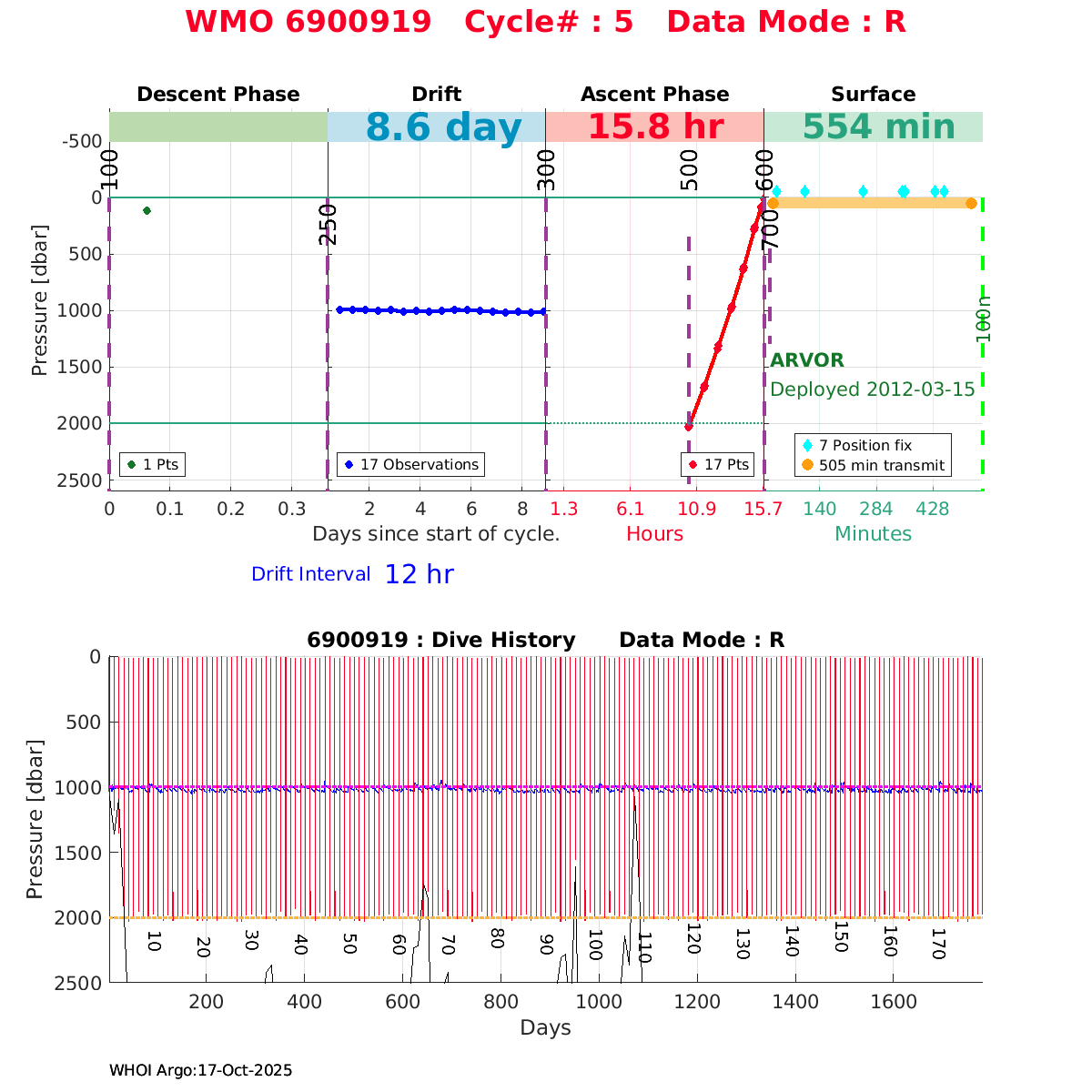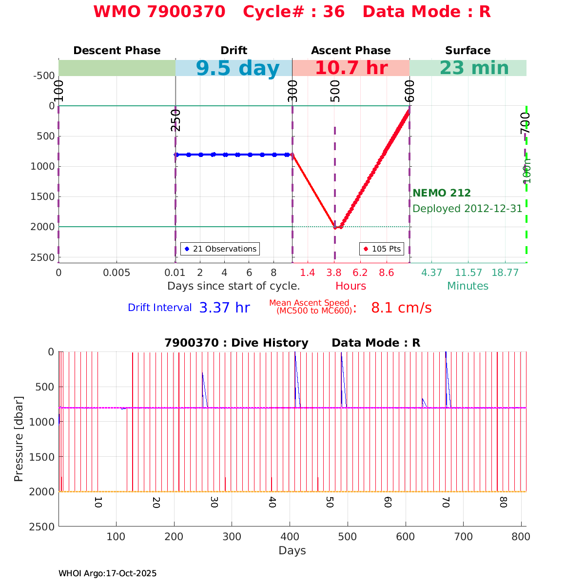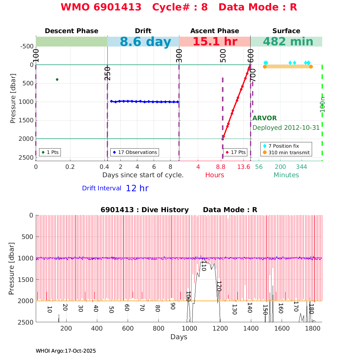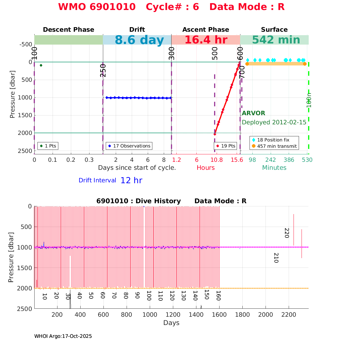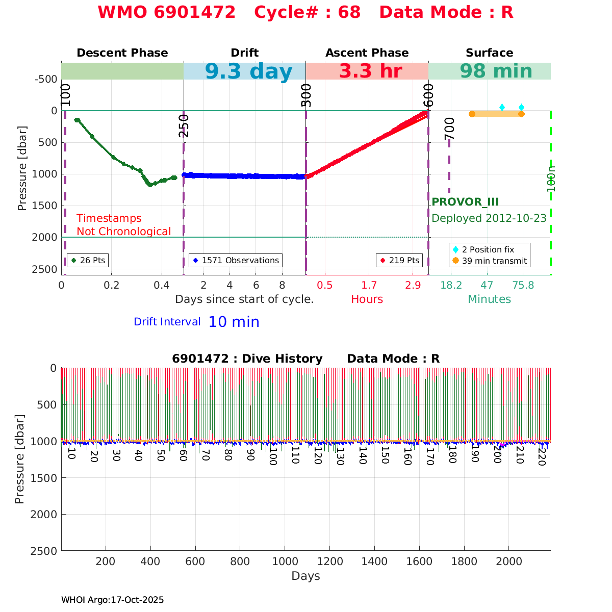 | WMO: #6901818 DAC: coriolis PI: Pierre-Marie POULAIN ARVOR: # FLOATCLOCK: # KISTLER_2900PSIA: #2103274 SBE41CP_V1.3: #4526 Altimeter Comparison (IFREMER) EuroArgo Link | ![]() |