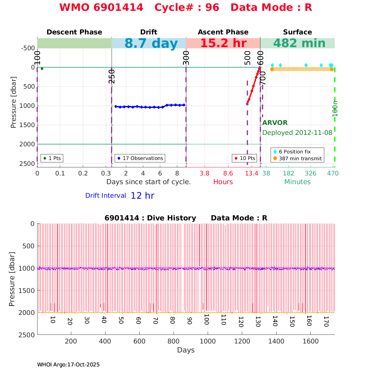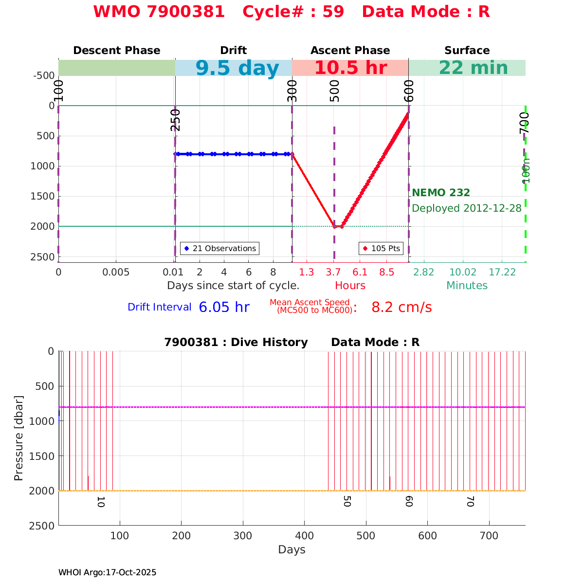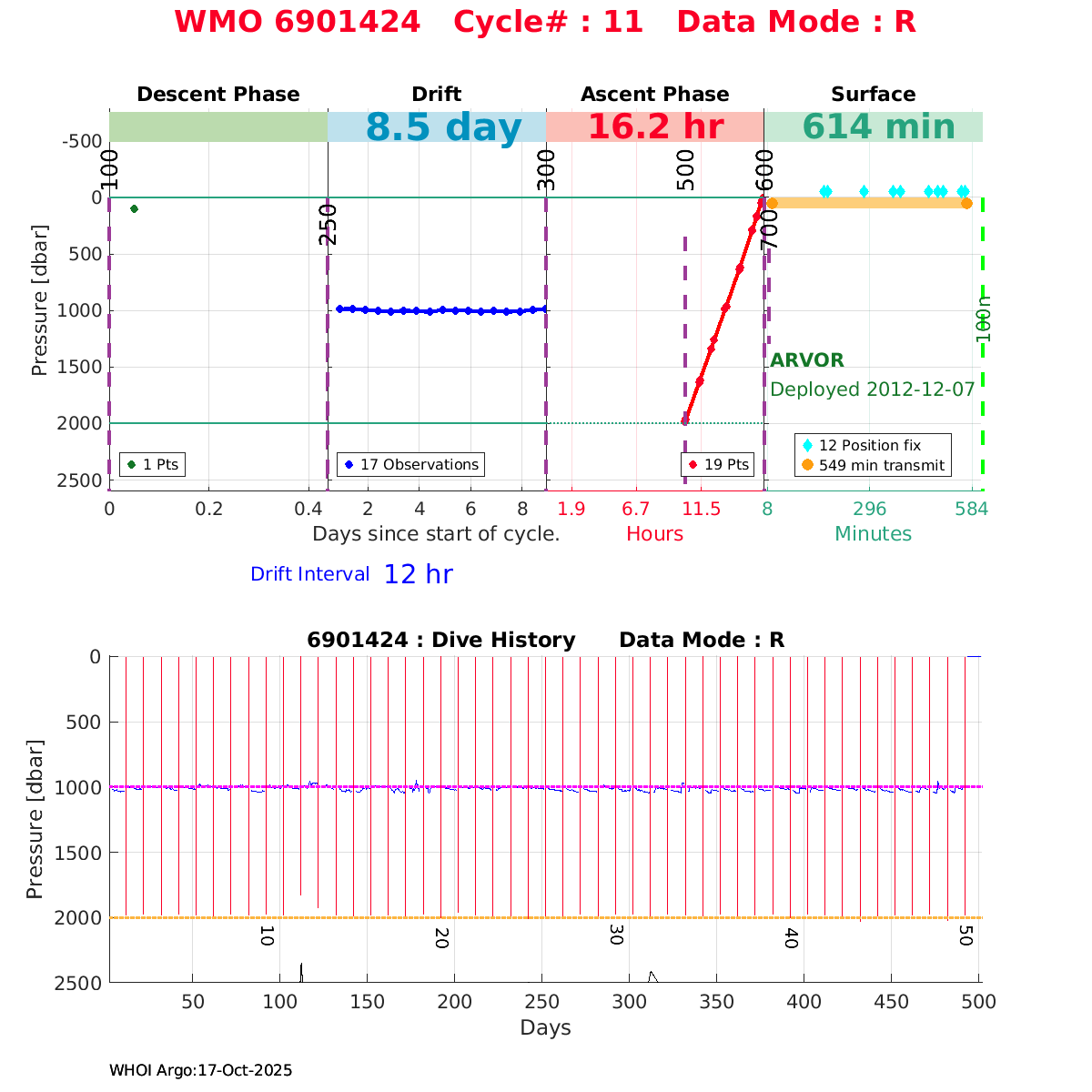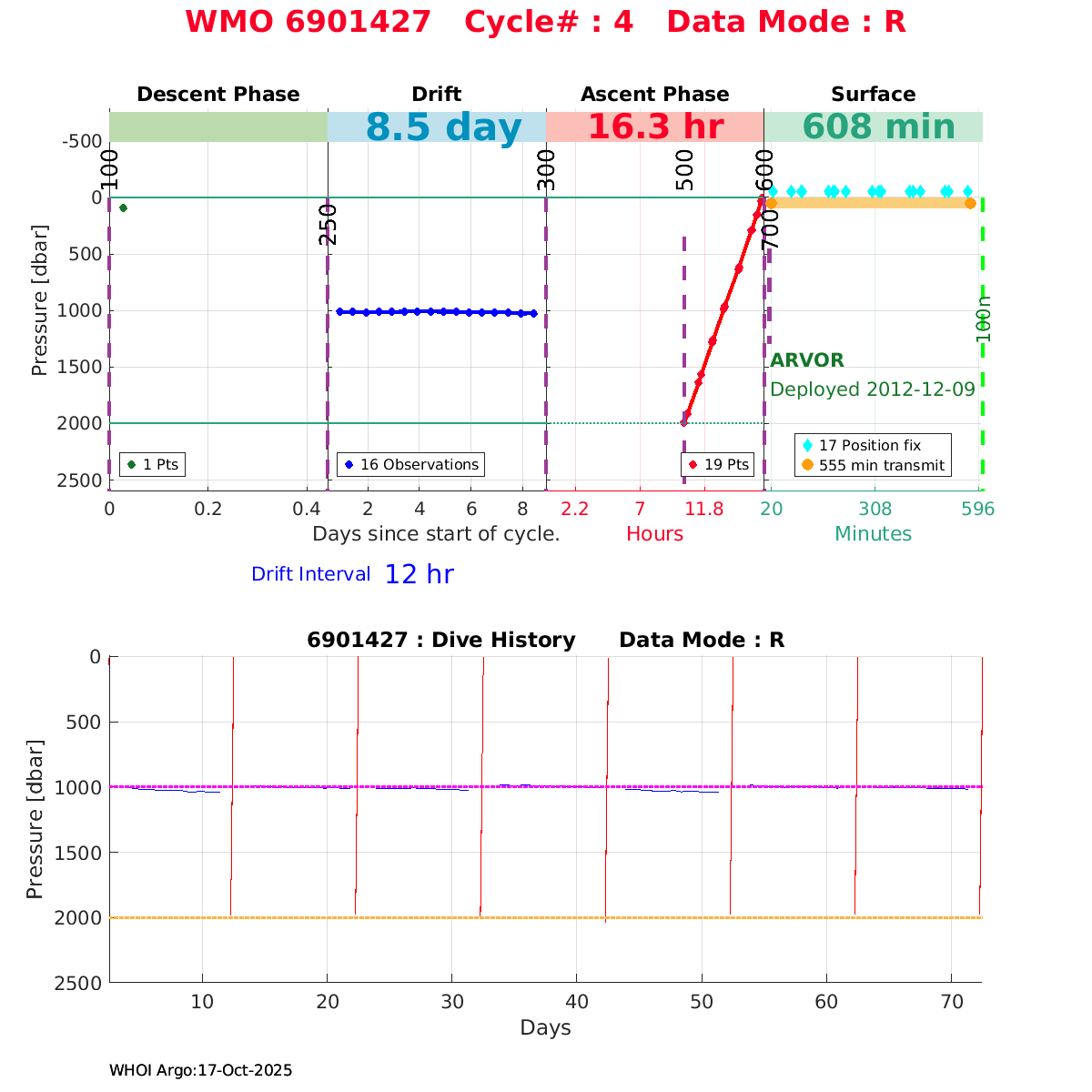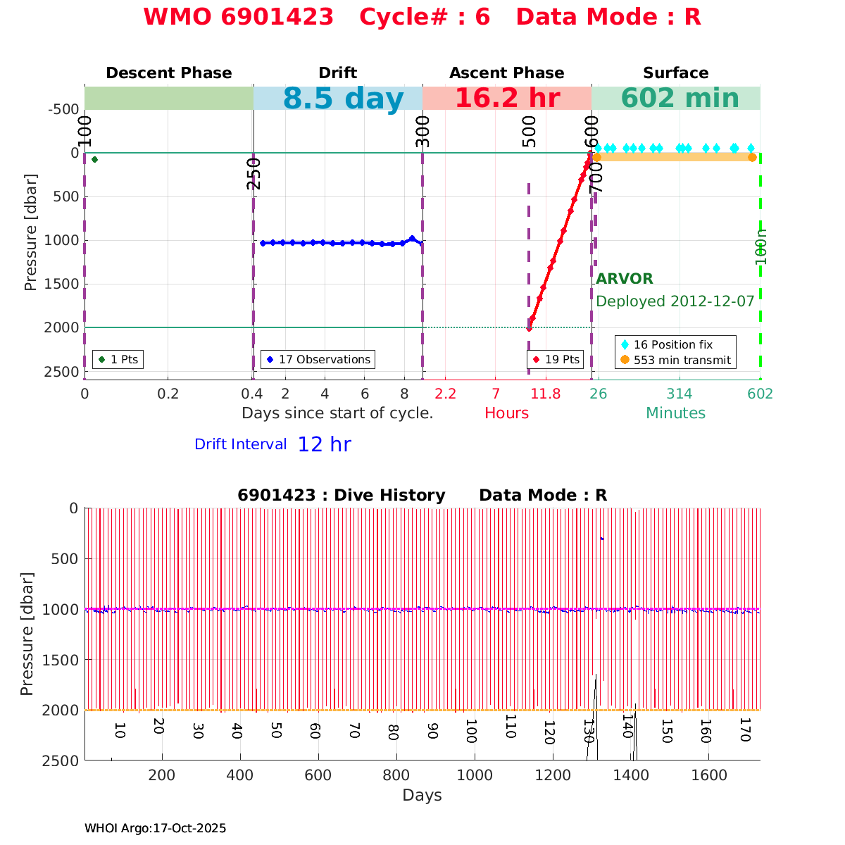 | WMO: #6901818 DAC: coriolis PI: Pierre-Marie POULAIN ARVOR: # FLOATCLOCK: # KISTLER_2900PSIA: #2103274 SBE41CP_V1.3: #4526 Altimeter Comparison (IFREMER) EuroArgo Link | ![]() |