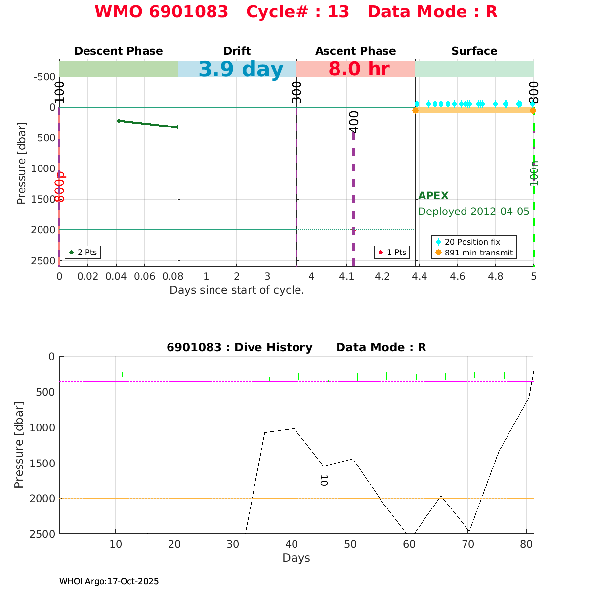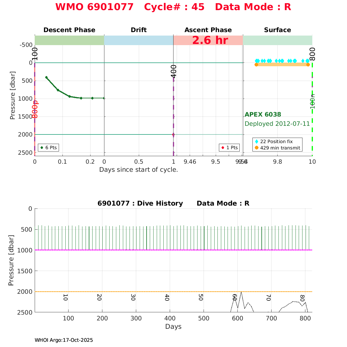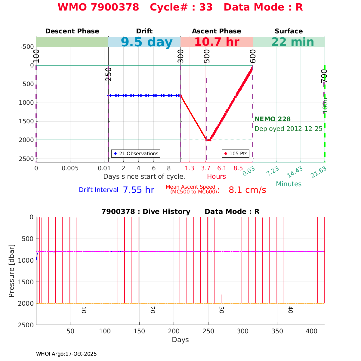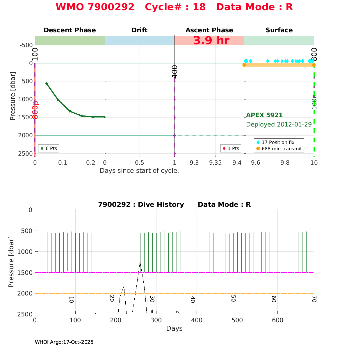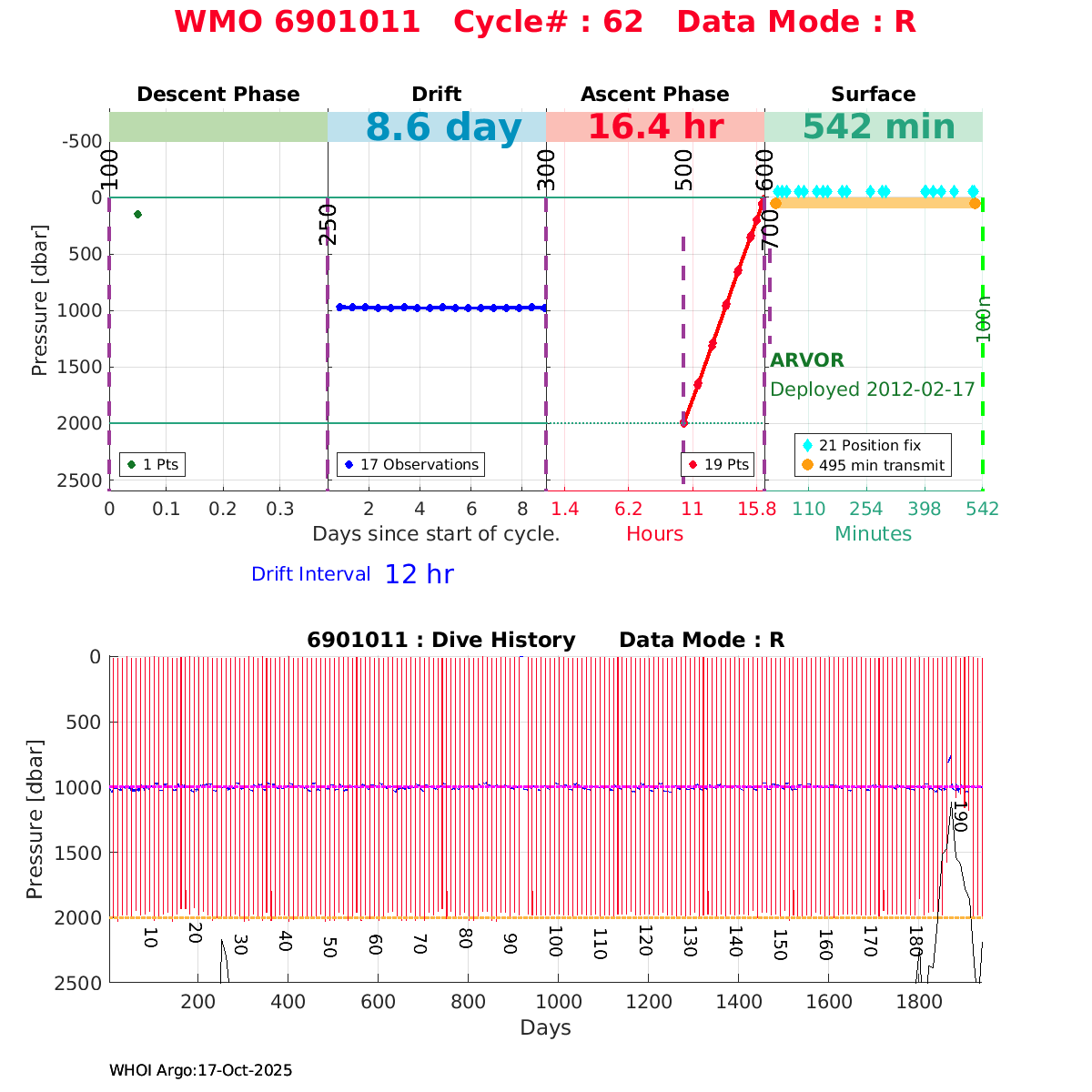 | WMO: #6901818 DAC: coriolis PI: Pierre-Marie POULAIN ARVOR: # FLOATCLOCK: # KISTLER_2900PSIA: #2103274 SBE41CP_V1.3: #4526 Altimeter Comparison (IFREMER) EuroArgo Link | ![]() |