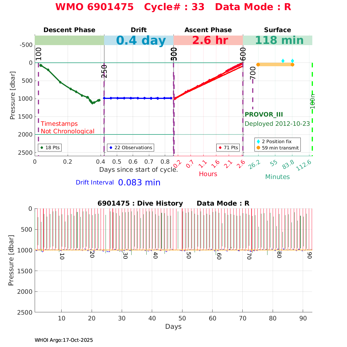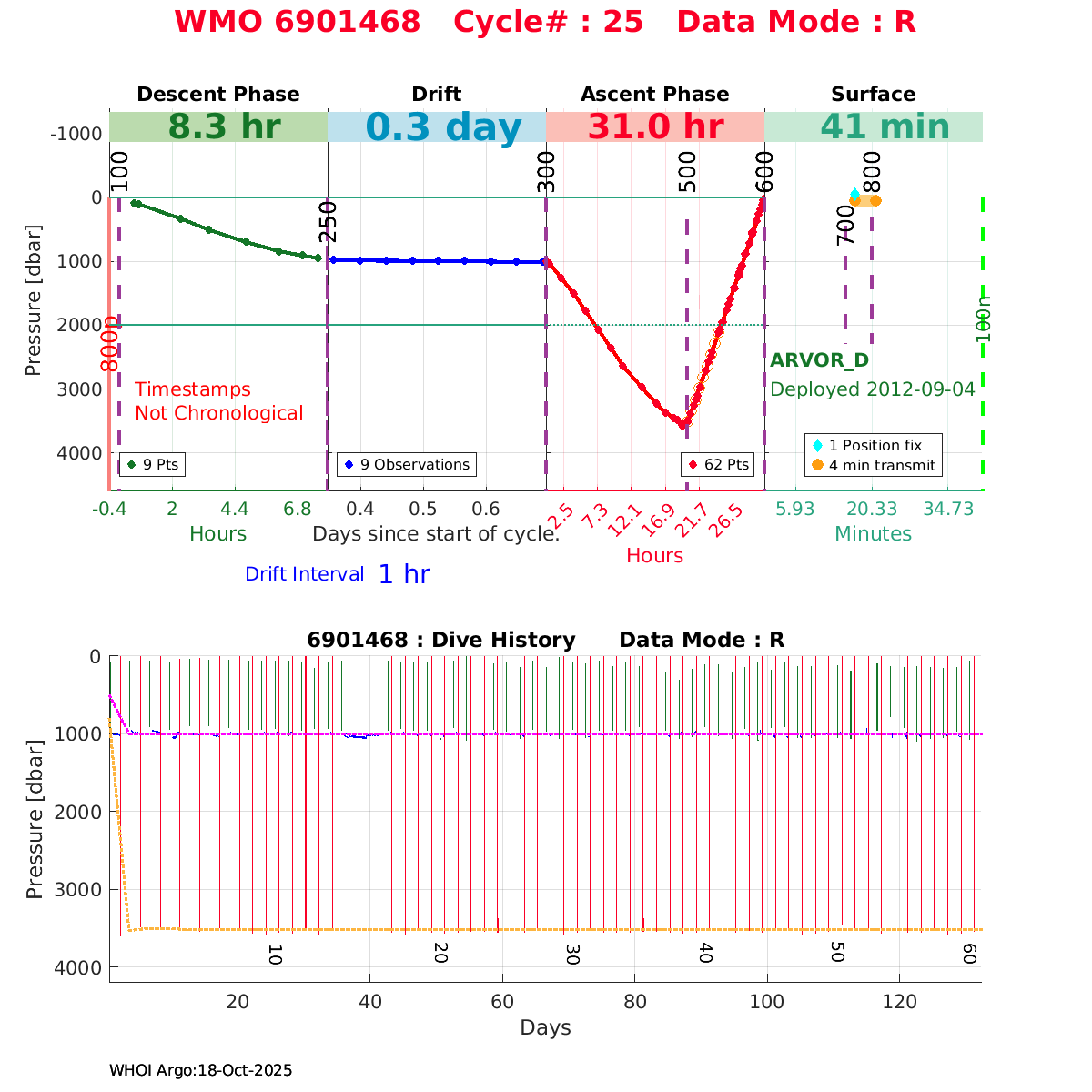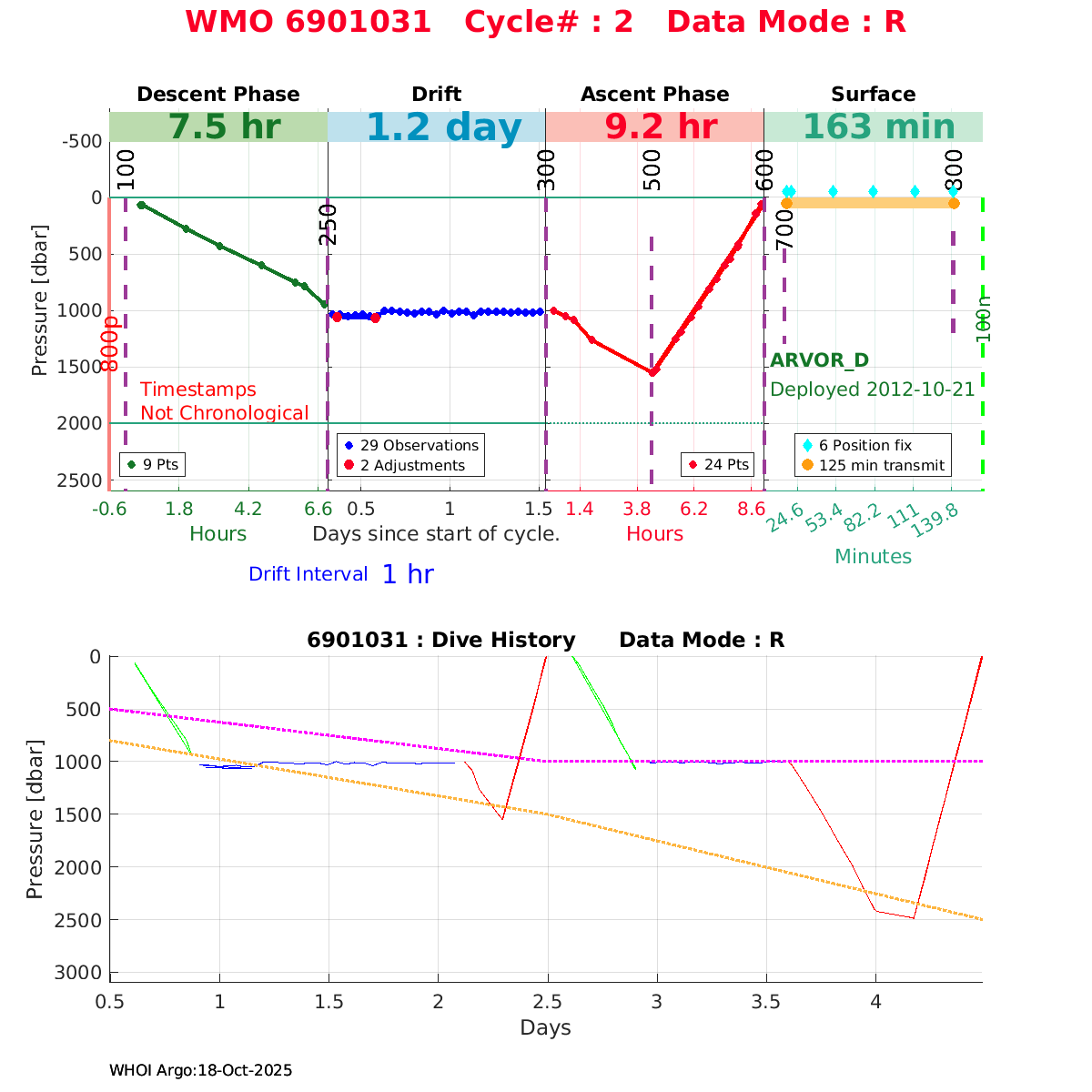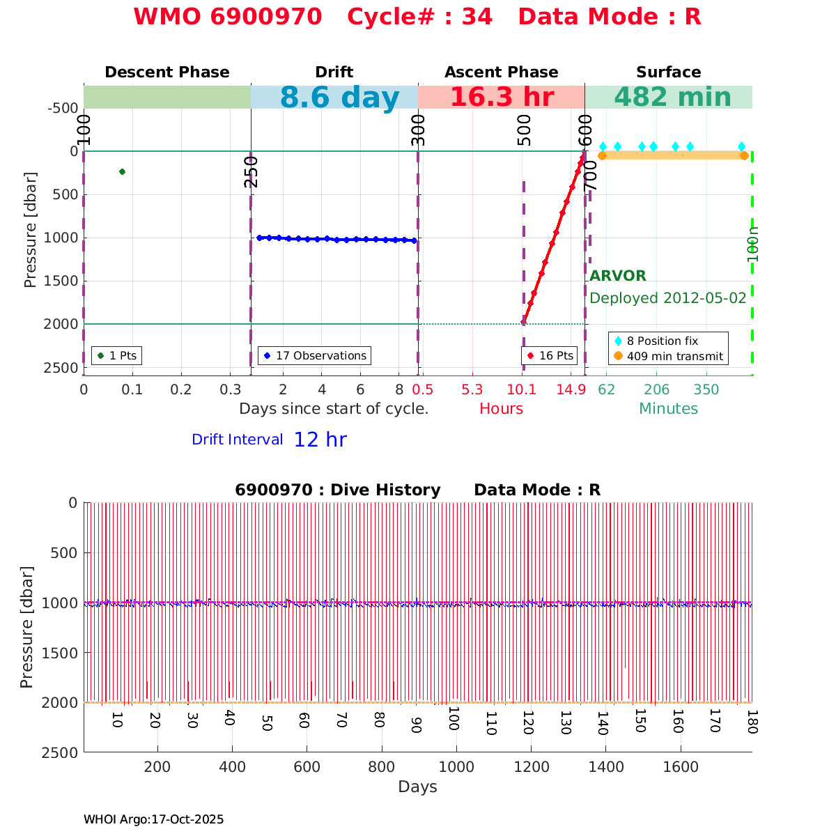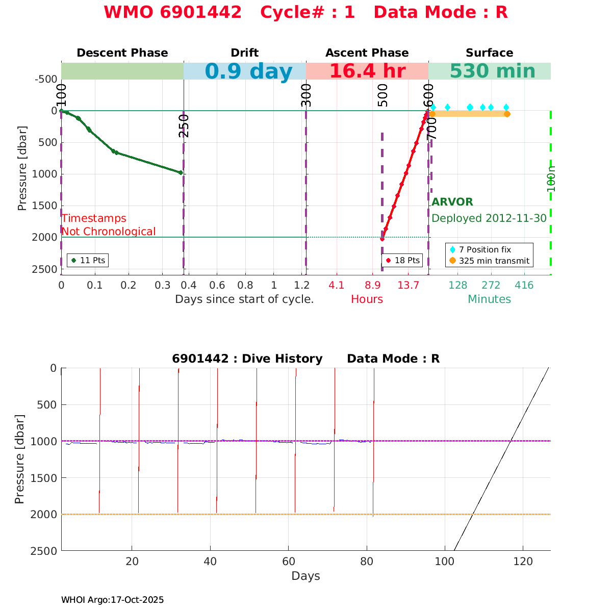 | WMO: #6900982 DAC: coriolis PI: Pierre-Marie POULAIN ARVOR: # FLOATCLOCK: # KISTLER_2900PSIA: #2100550 SBE41CP: #4008 Altimeter Comparison (IFREMER) EuroArgo Link | n/a | n/a | ![]() |