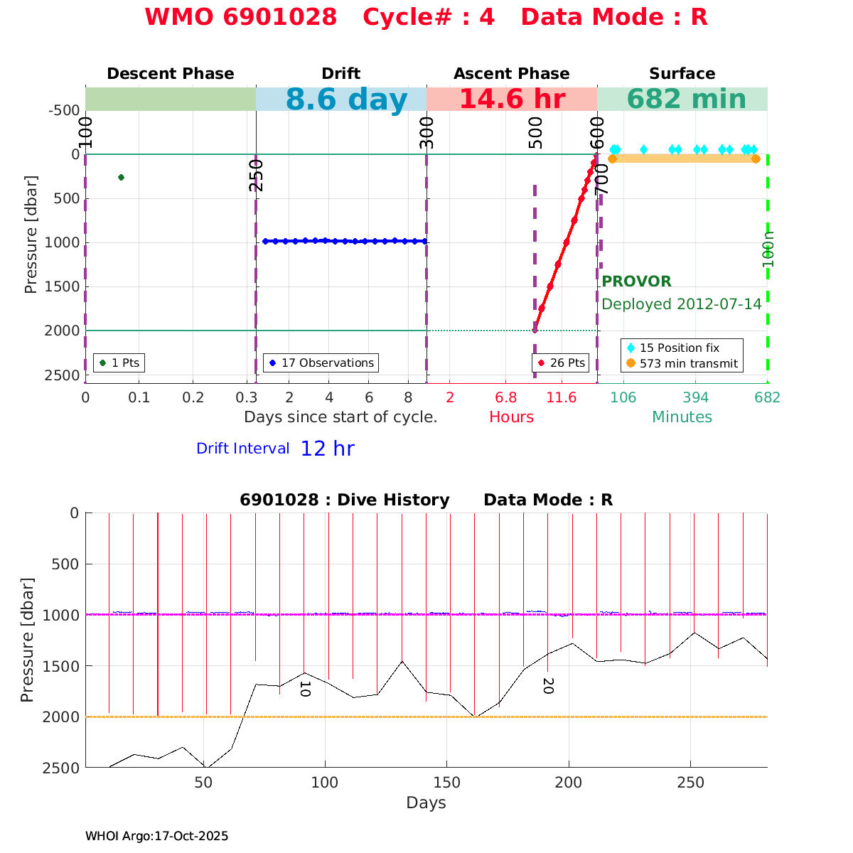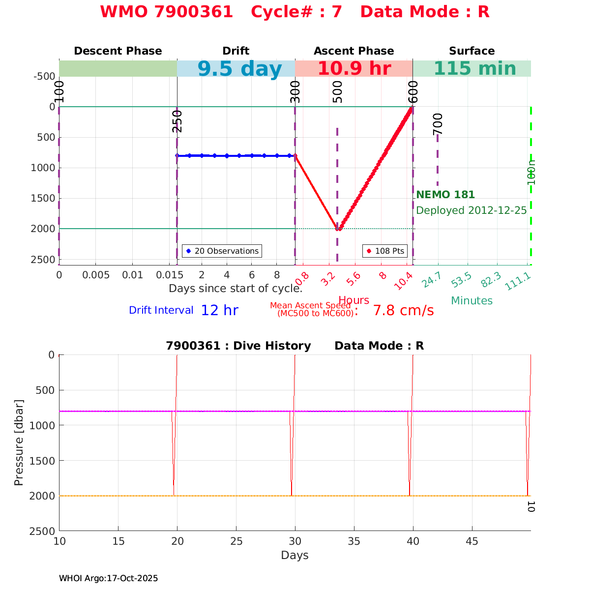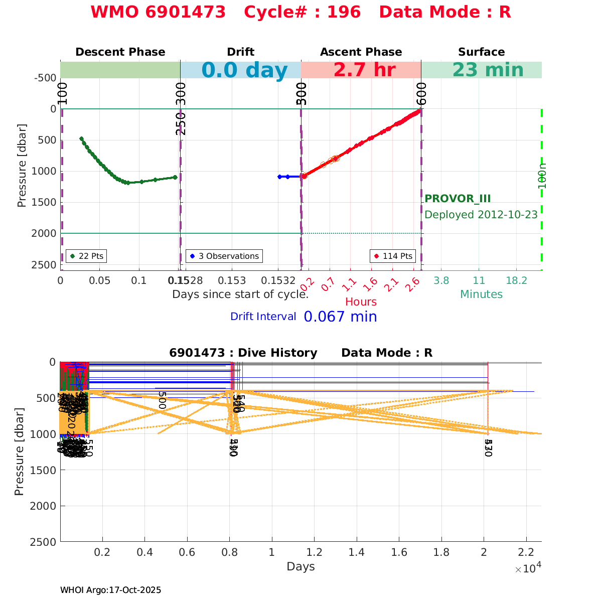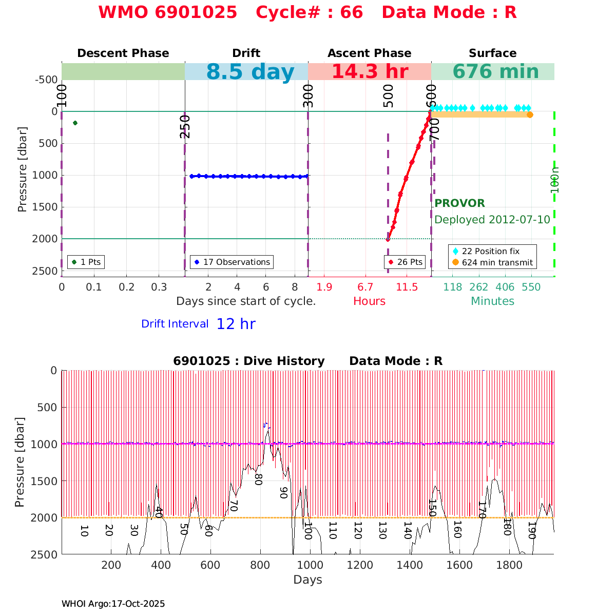 | WMO: #6901472 DAC: coriolis PI: Herve CLAUSTRE PROVOR_III: # KISTLER_2900PSIA: #2096303 SBE41CP: #3979 AANDERAA_OPTODE_4330: #840 SATLANTIC_OCR504_ICSW: #40190 ECO_FLBBCD: #2307 SUNA_V2: #200 Altimeter Comparison (IFREMER) EuroArgo Link | ![]() |