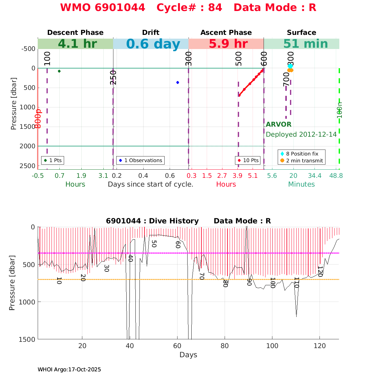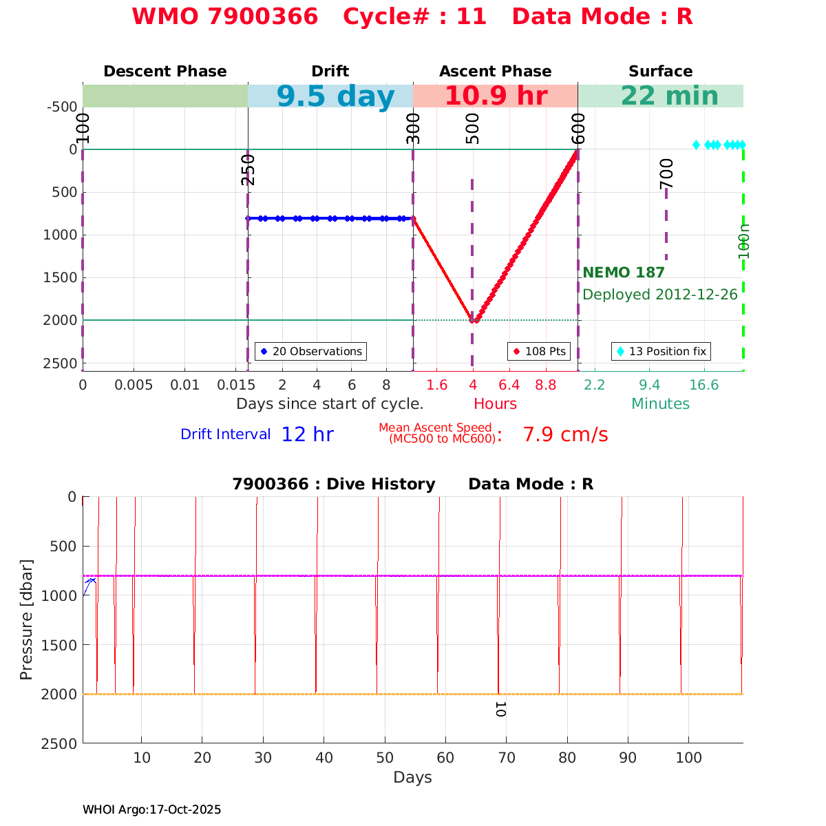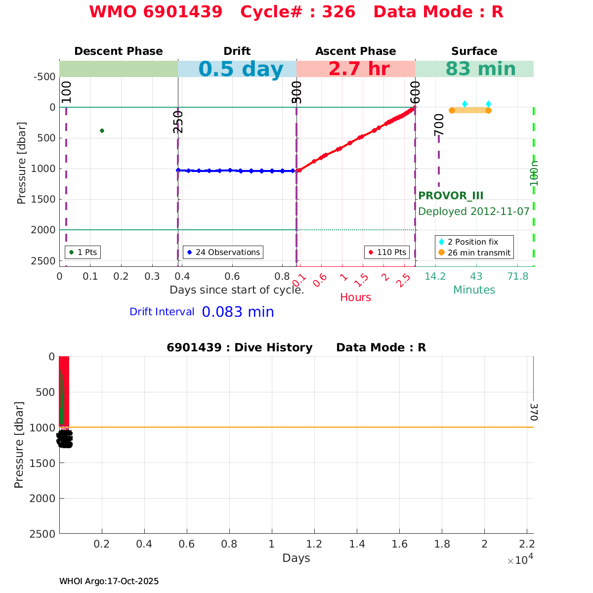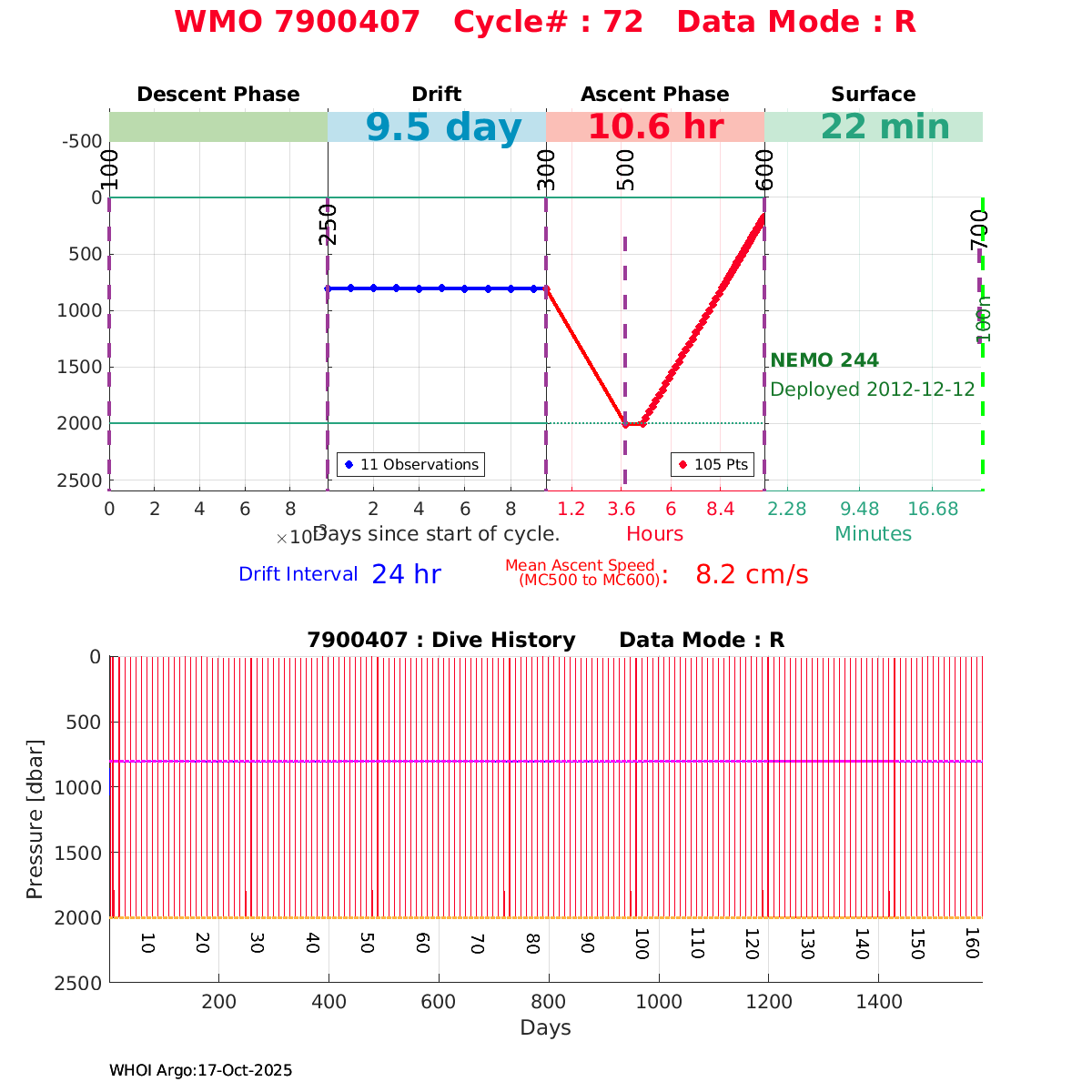 | WMO: #6901472 DAC: coriolis PI: Herve CLAUSTRE PROVOR_III: # KISTLER_2900PSIA: #2096303 SBE41CP: #3979 AANDERAA_OPTODE_4330: #840 SATLANTIC_OCR504_ICSW: #40190 ECO_FLBBCD: #2307 SUNA_V2: #200 Altimeter Comparison (IFREMER) EuroArgo Link | ![]() |