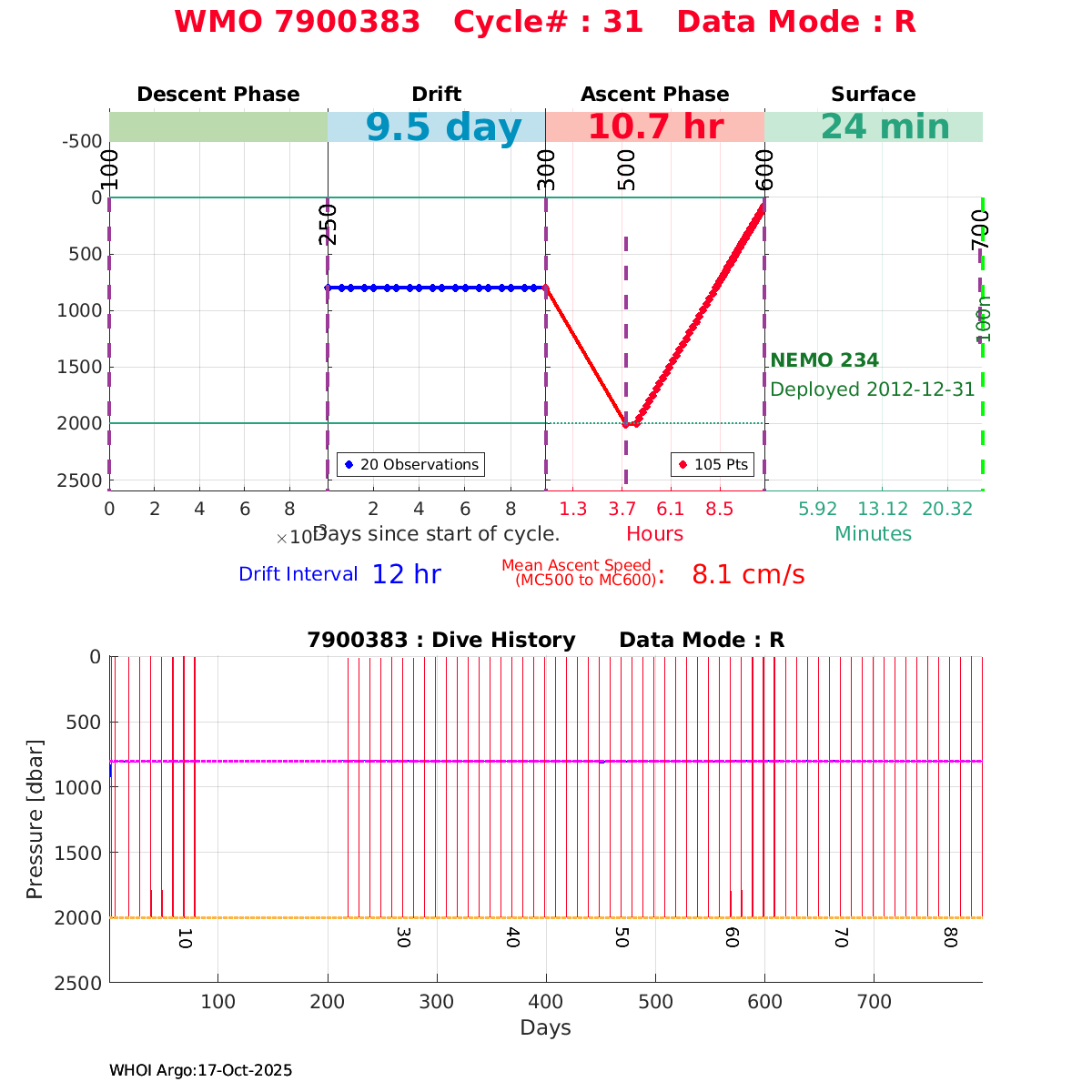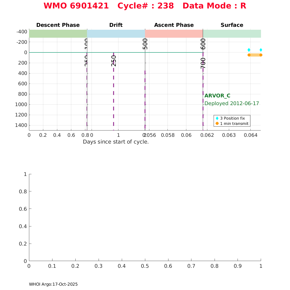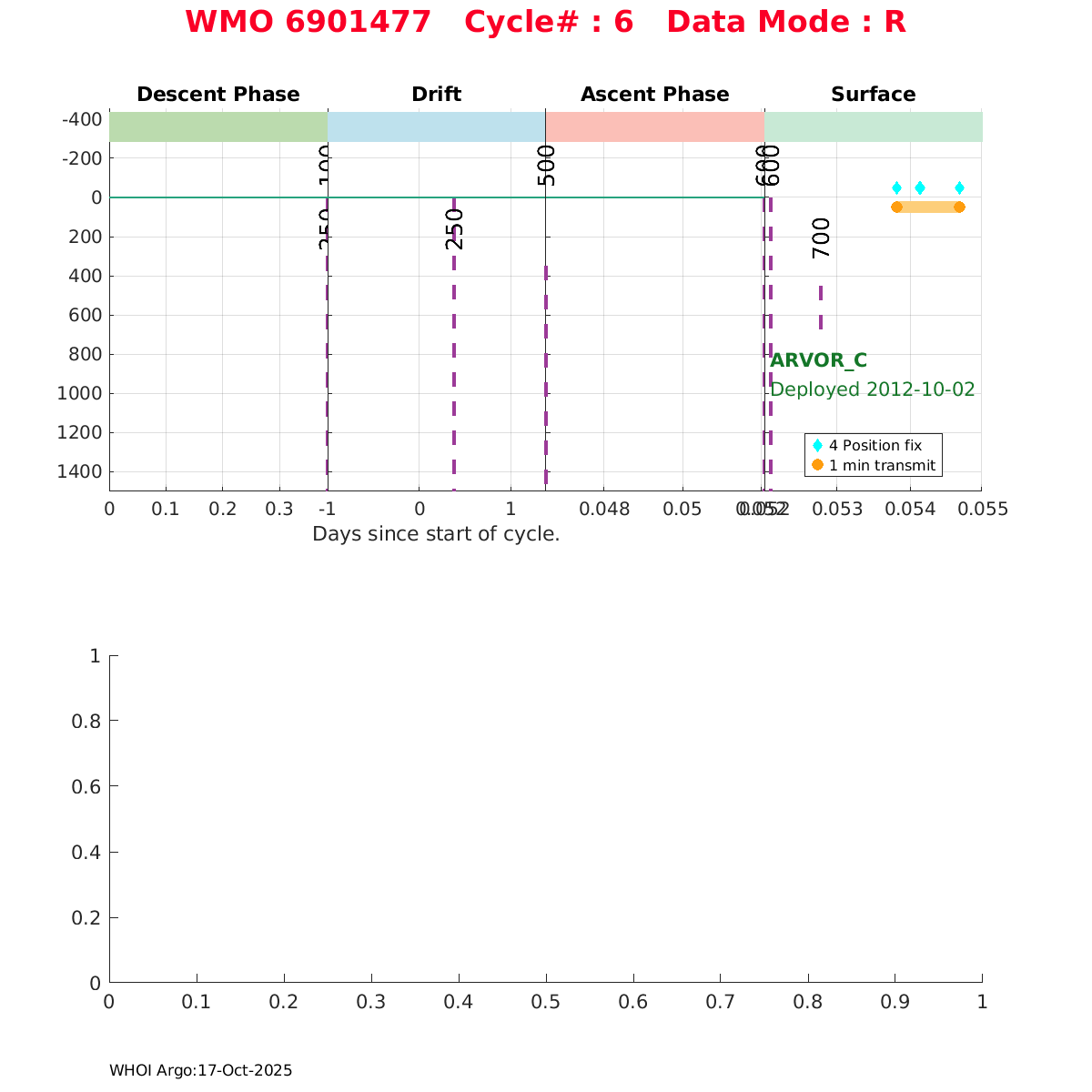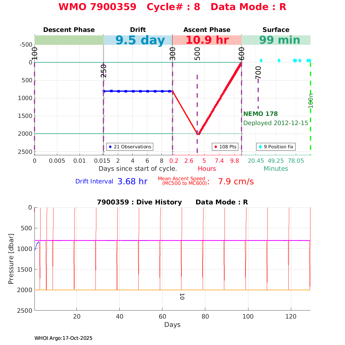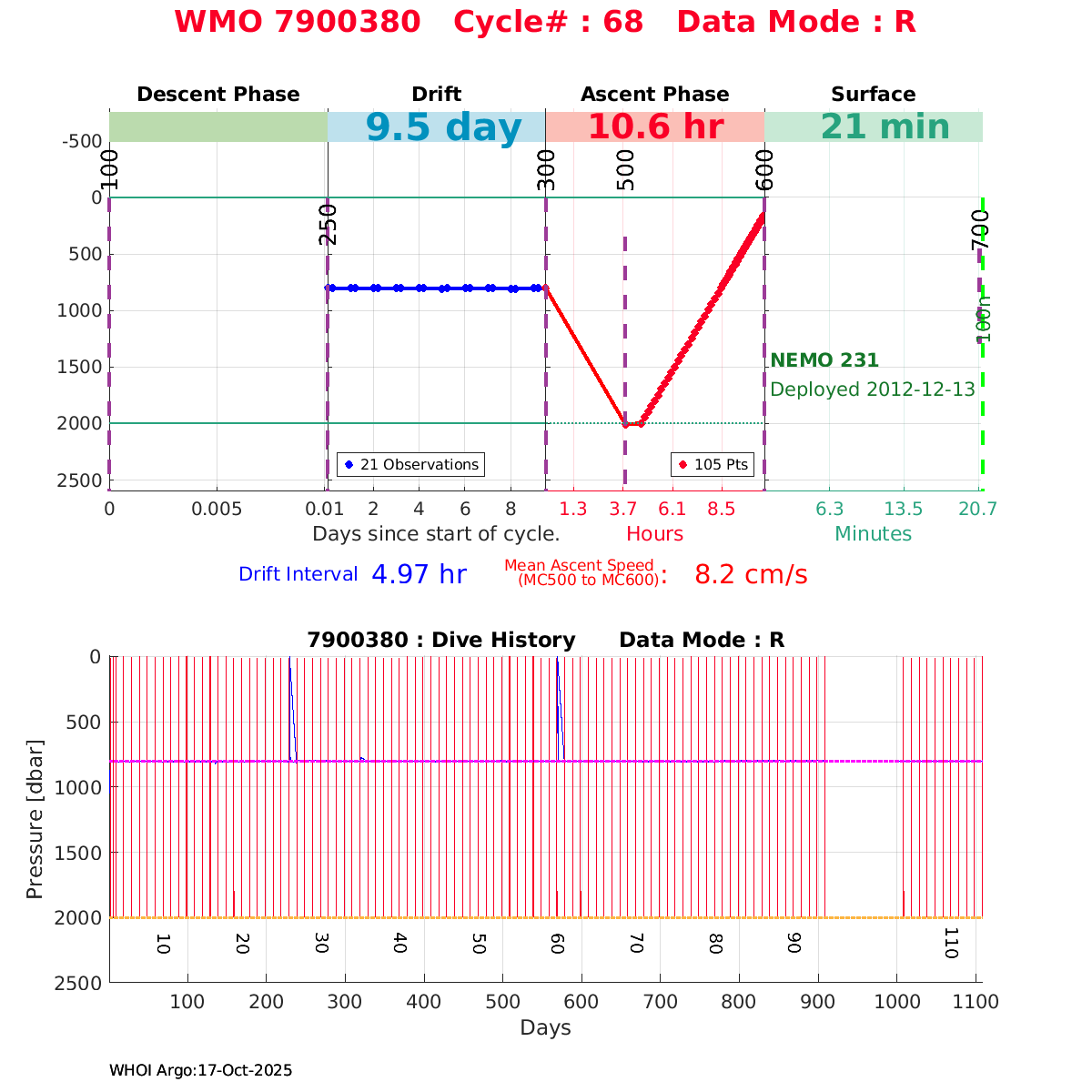 | WMO: #6901960 DAC: coriolis PI: Pierre-Marie POULAIN ARVOR: # FLOATCLOCK: # KISTLER_2900PSIA: #2099803 SBE41CP_V1.3: #4013 Altimeter Comparison (IFREMER) EuroArgo Link | n/a | n/a | ![]() |