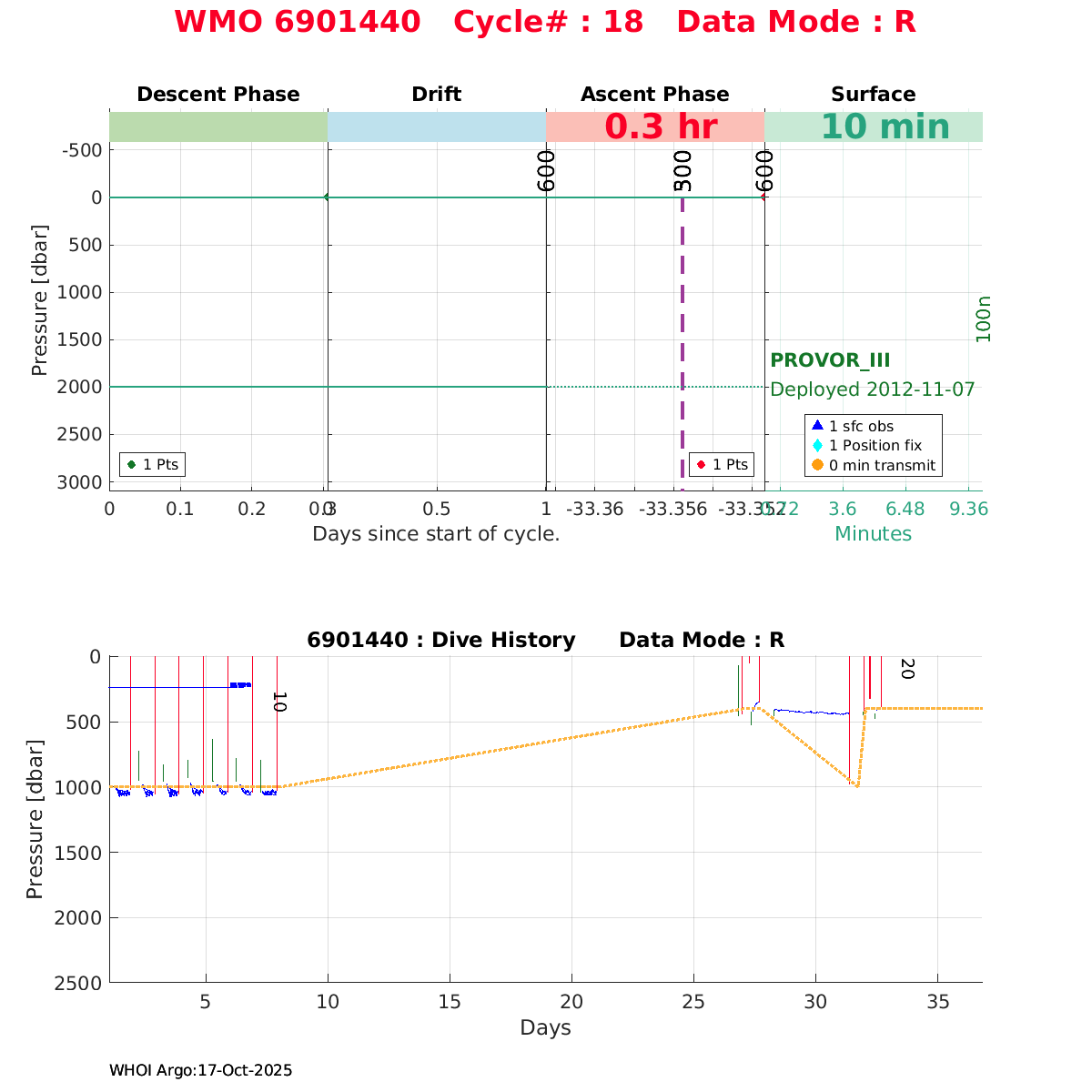 | WMO: #6901440 DAC: coriolis PI: Herve CLAUSTRE PROVOR_III: # KISTLER_2900PSIA: #2097359 SBE41CP: #3981 AANDERAA_OPTODE_4330: #841 SATLANTIC_OCR504_ICSW: #40223 ECO_FLBBCD: #2444 C_ROVER: #42 SUNA_V2: #201 Altimeter Comparison (IFREMER) EuroArgo Link | ![]() |
