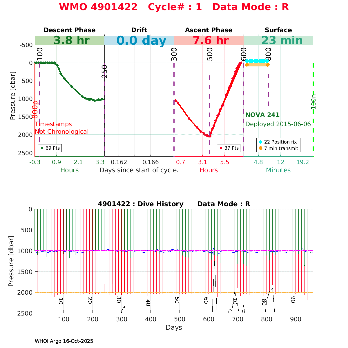 | WMO: #6901732 DAC: coriolis PI: Bernard BOURLES ARVOR: # FLOATCLOCK: # KISTLER_2900PSIA: #2152082 SBE41CP_V2: #6370 Altimeter Comparison (IFREMER) EuroArgo Link | ![]() |