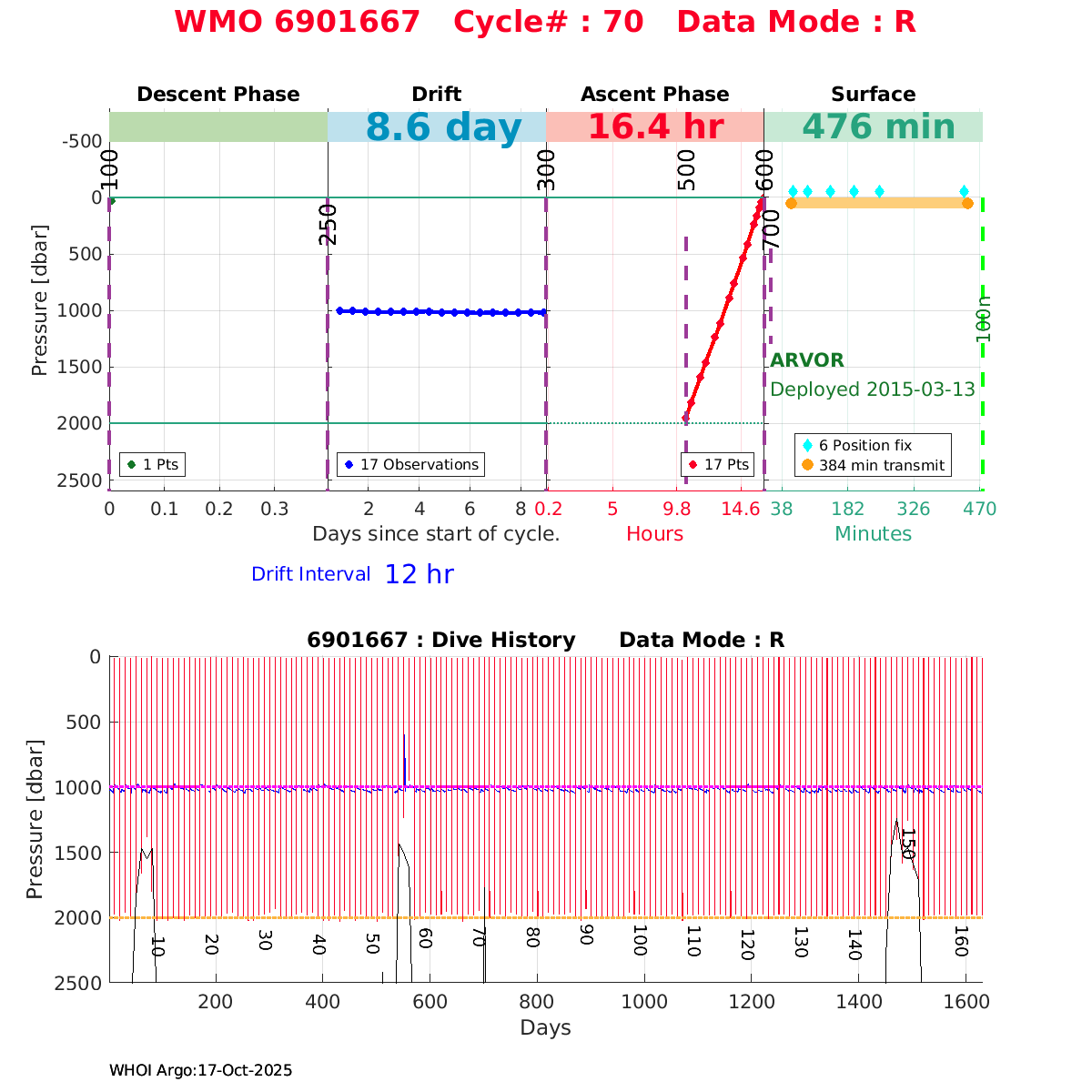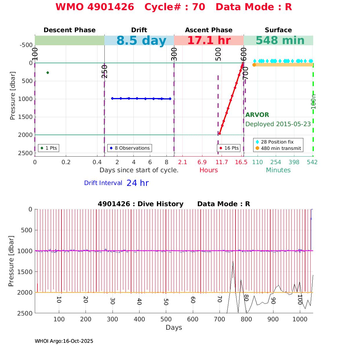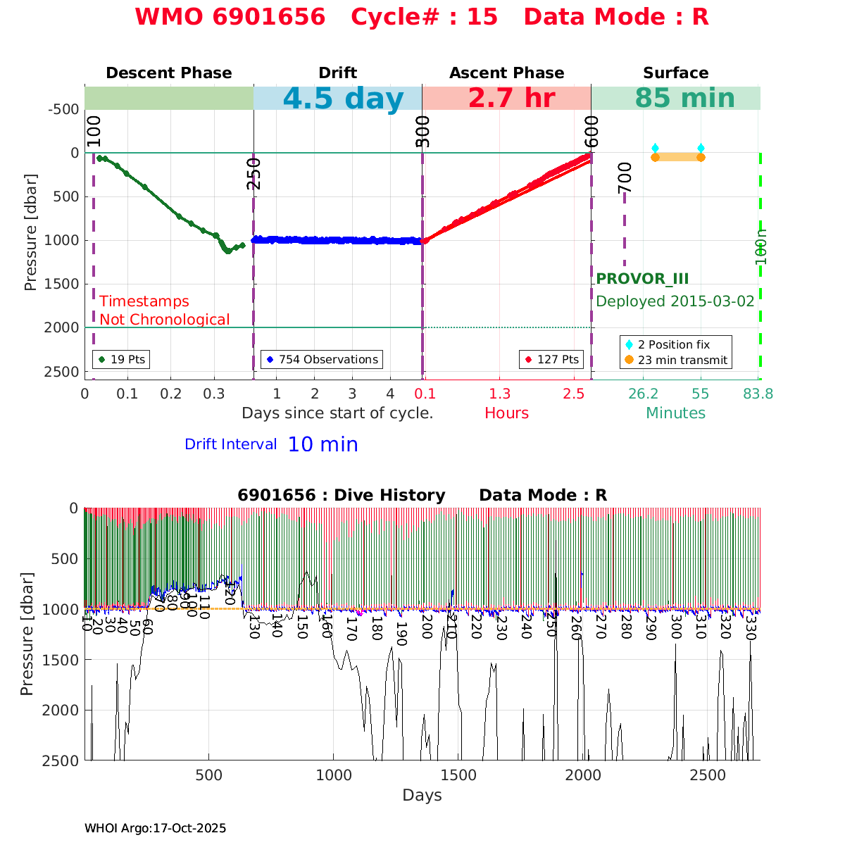 | WMO: #6901670 DAC: coriolis PI: Christophe MAES ARVOR: # FLOATCLOCK: # KISTLER_2900PSIA: #2149193 SBE41CP_V2: #6058 Altimeter Comparison (IFREMER) EuroArgo Link | ![]() |