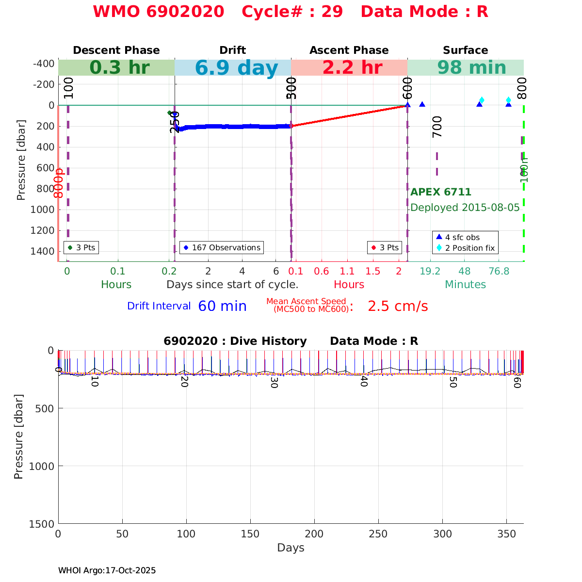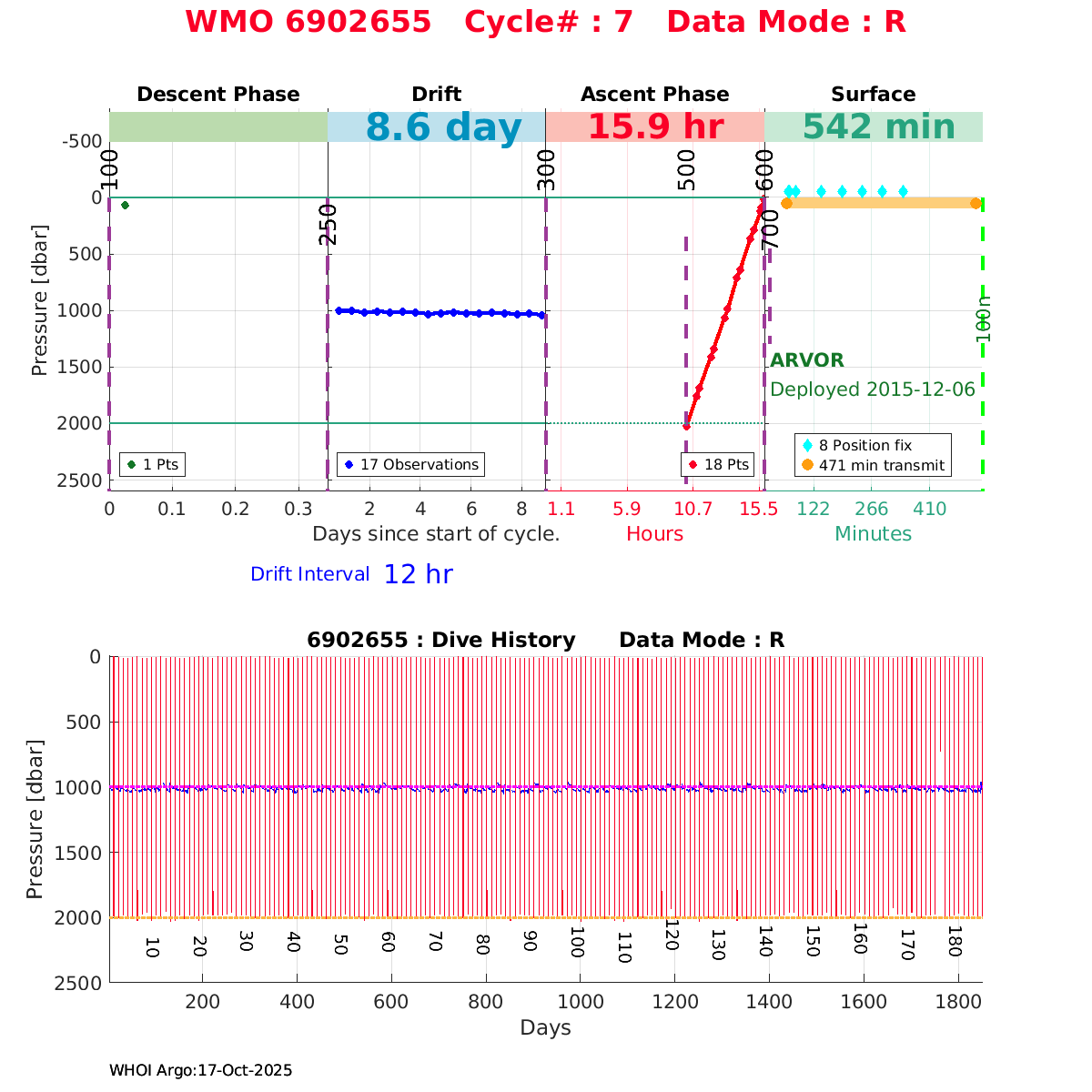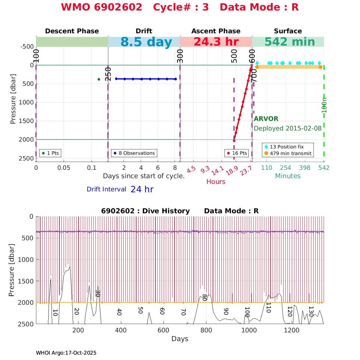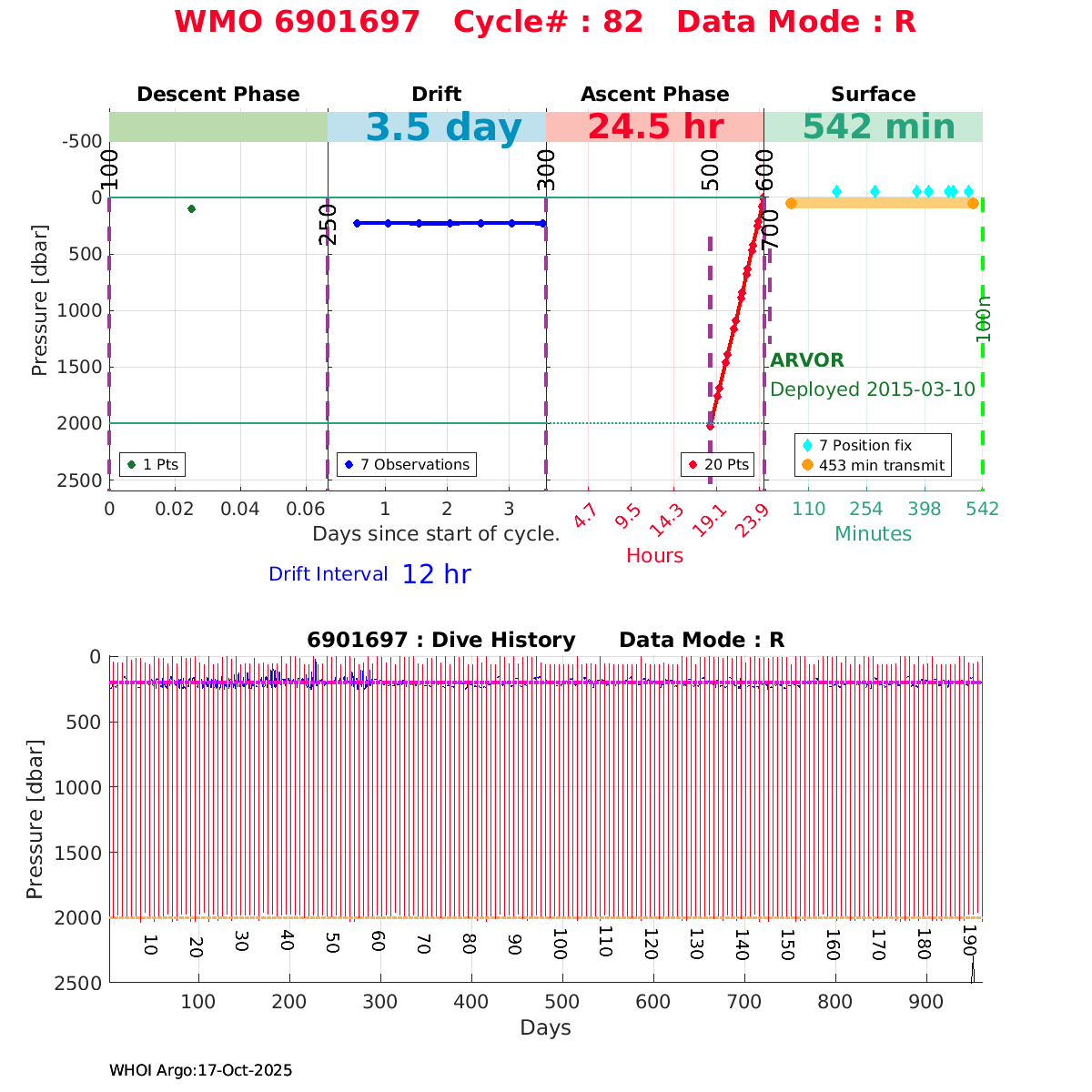 | WMO: #6902665 DAC: coriolis PI: Vincent ECHEVIN ARVOR: # FLOATCLOCK: # KISTLER_2900PSIA: #2151813 SBE41CP_V2: #6846 Altimeter Comparison (IFREMER) EuroArgo Link | ![]() |