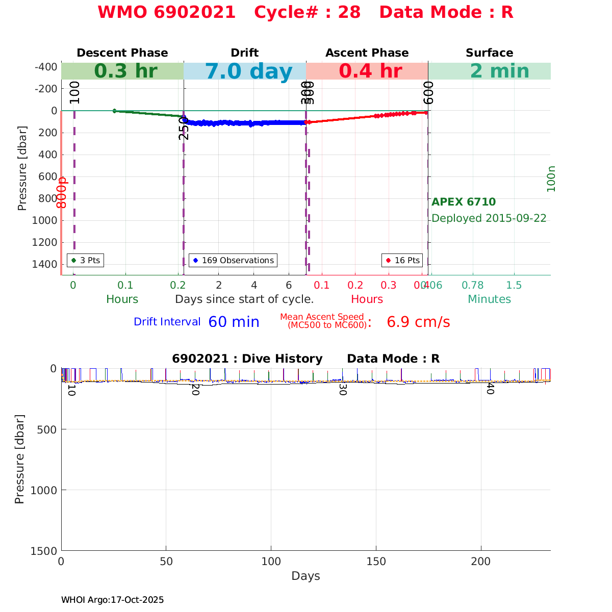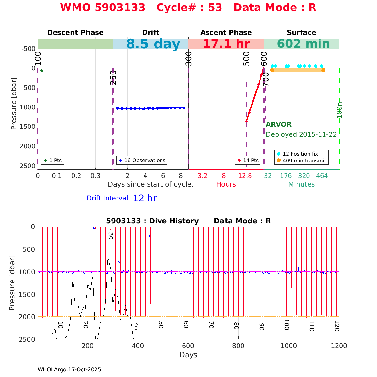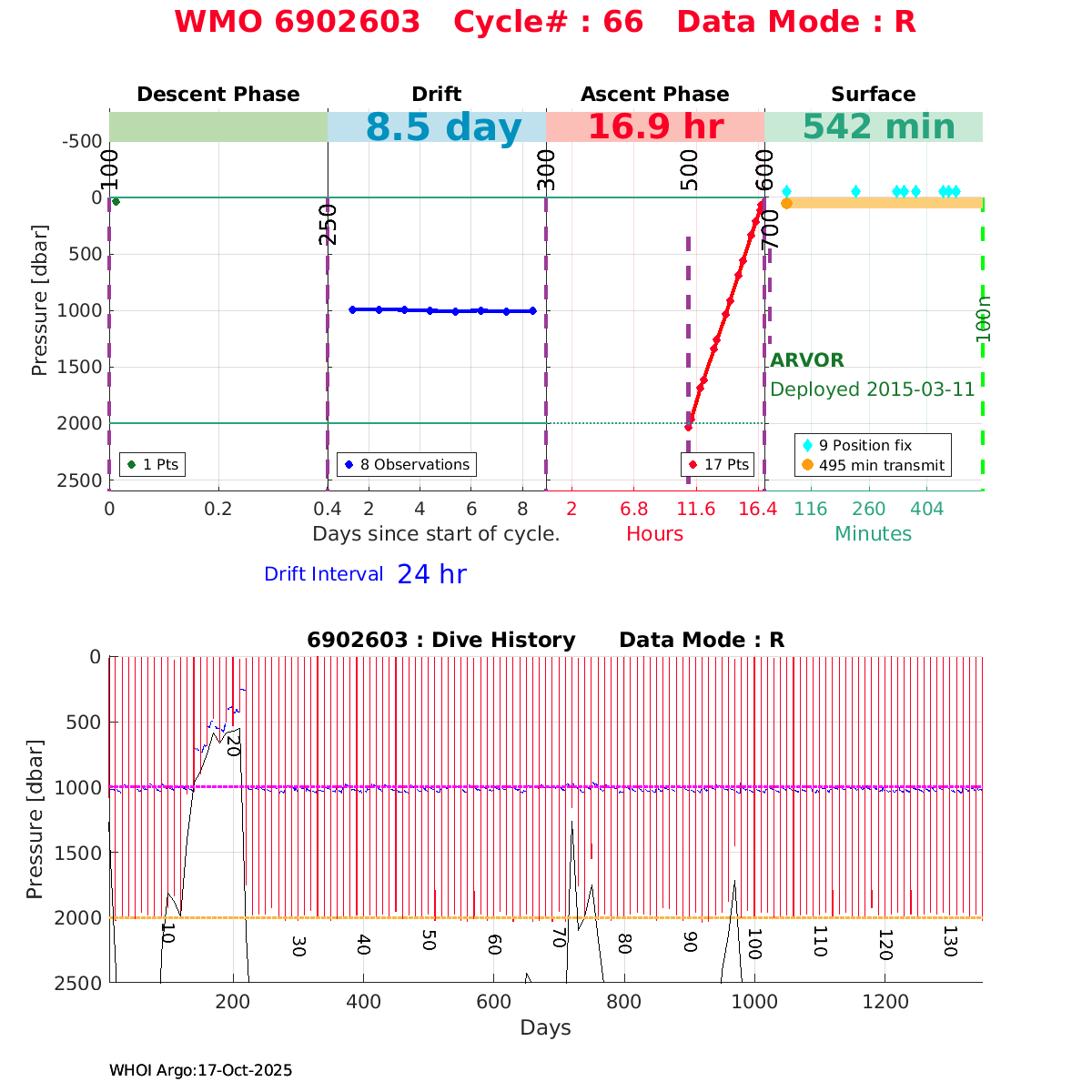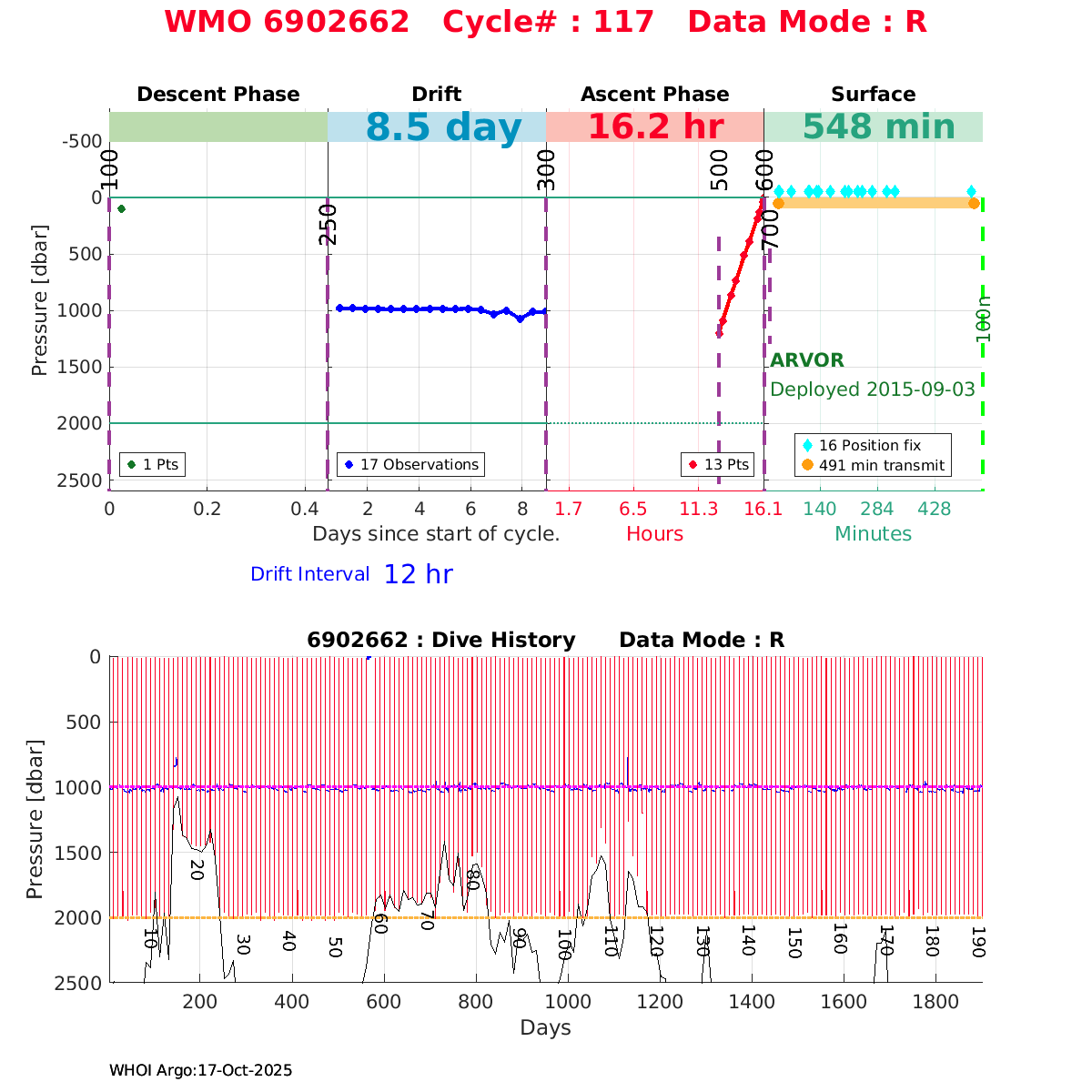| WMO: #6902665 DAC: coriolis PI: Vincent ECHEVIN ARVOR: # FLOATCLOCK: # KISTLER_2900PSIA: #2151813 SBE41CP_V2: #6846 Altimeter Comparison (IFREMER) EuroArgo Link | ![]() |