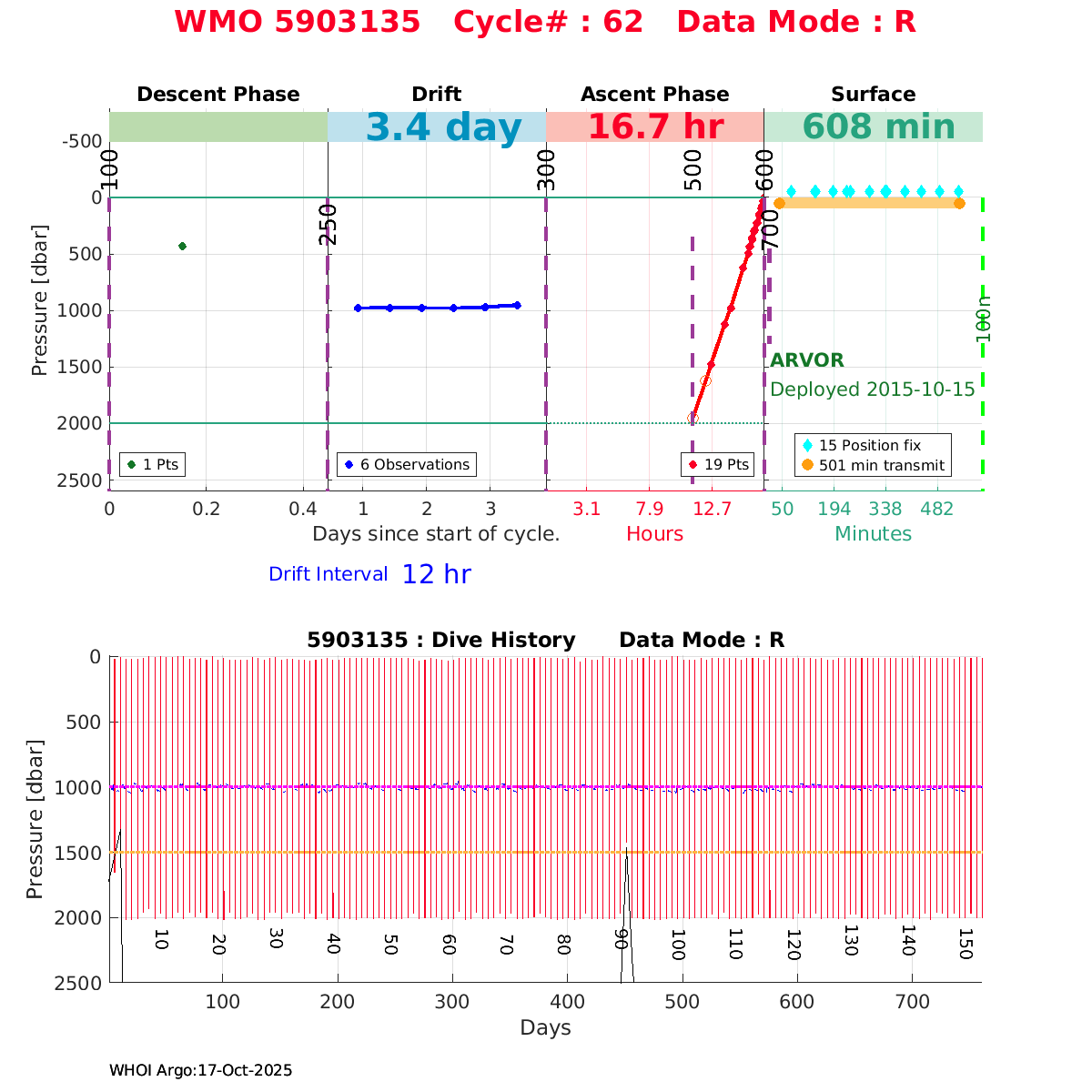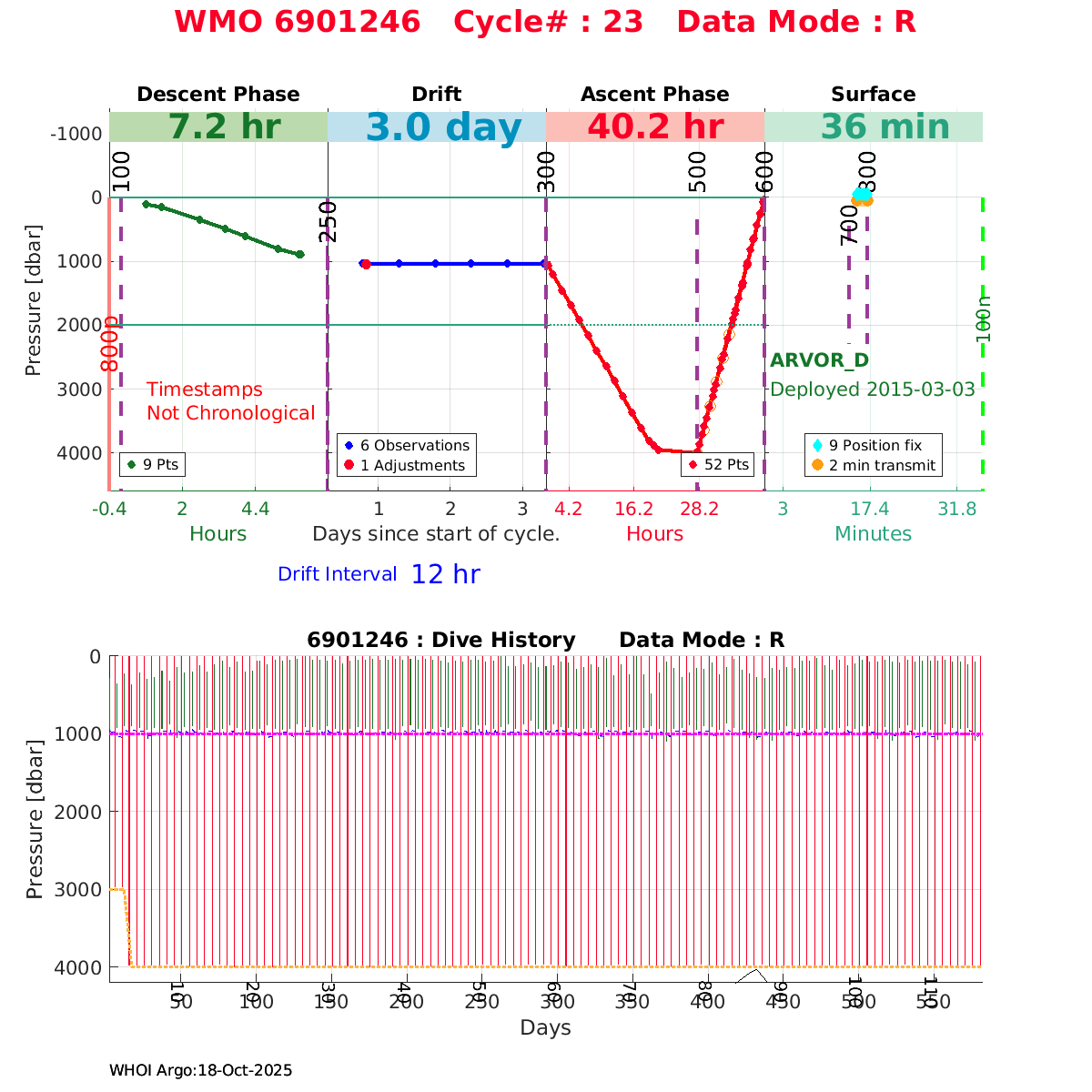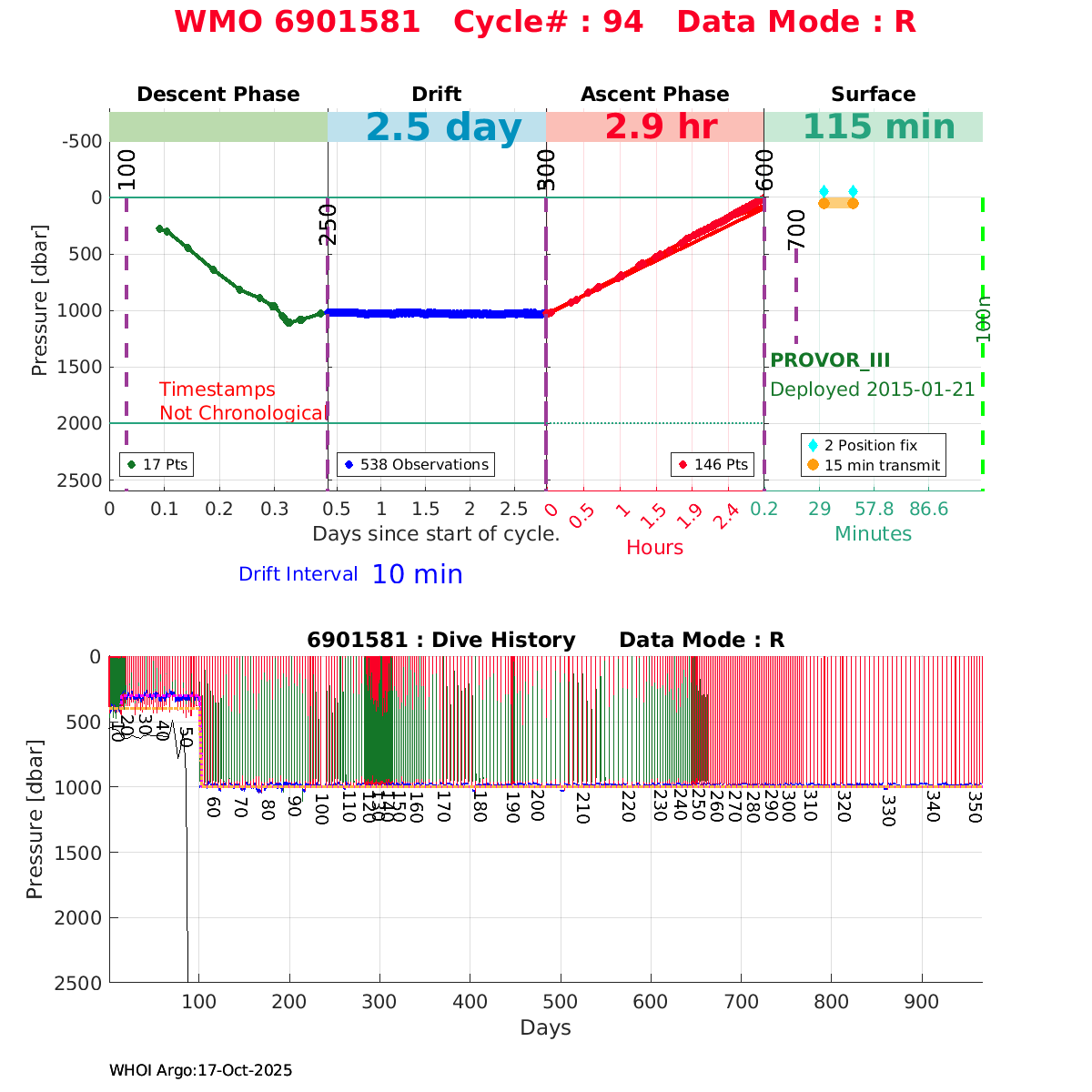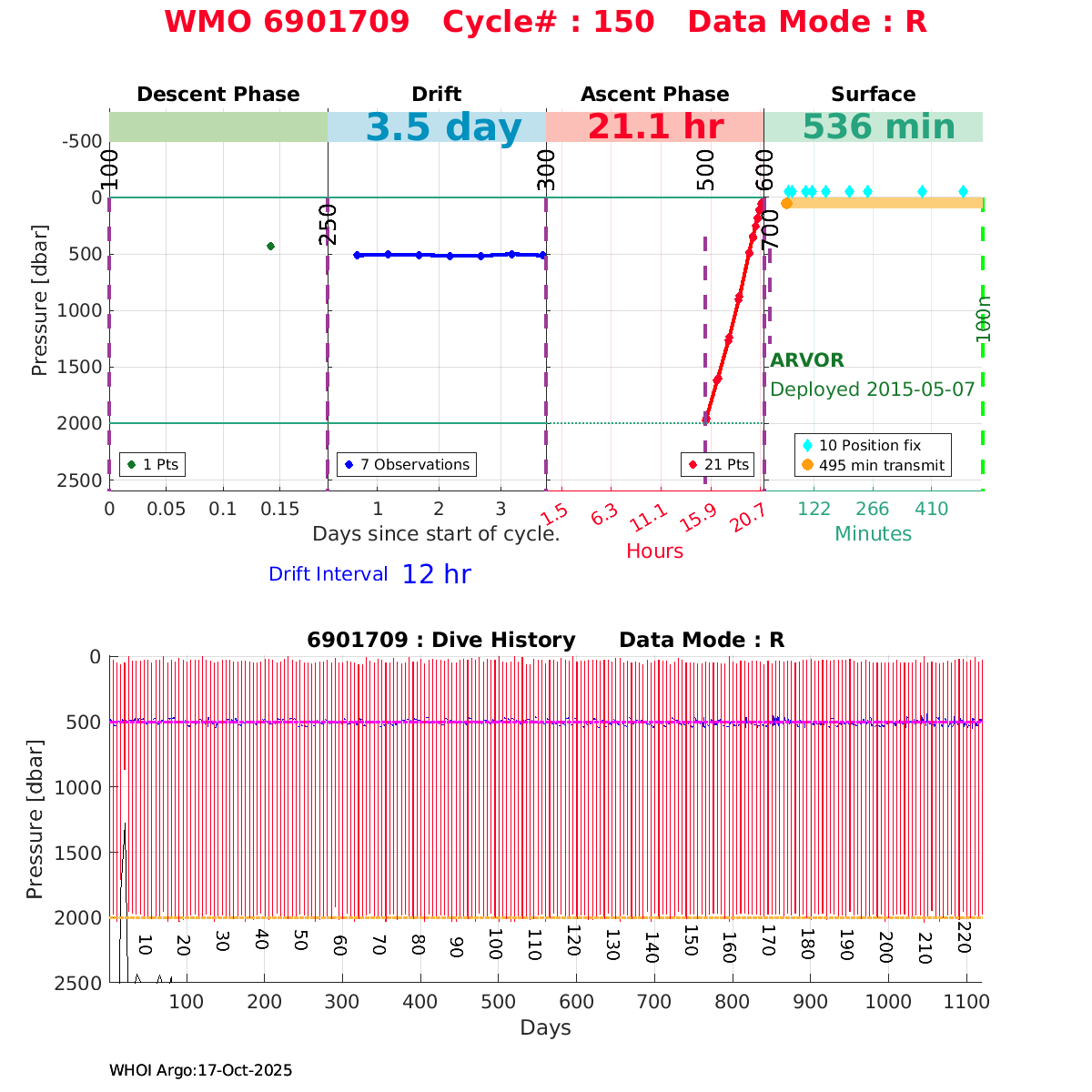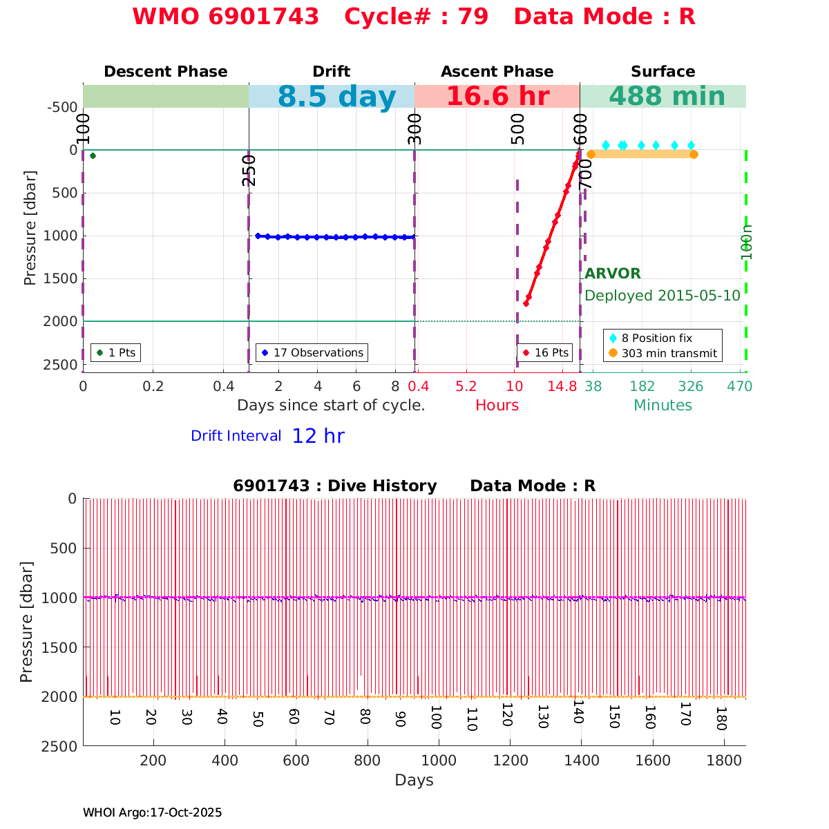 | WMO: #6901666 DAC: coriolis PI: Christophe MAES ARVOR: # FLOATCLOCK: # KISTLER_2900PSIA: #2149188 SBE41CP_V2: #6053 Altimeter Comparison (IFREMER) EuroArgo Link | ![]() |