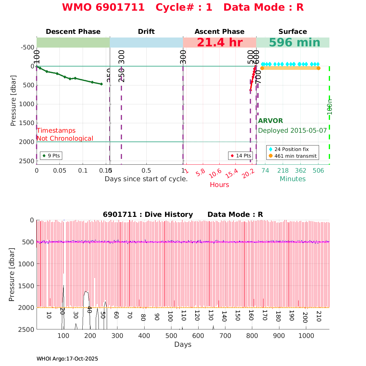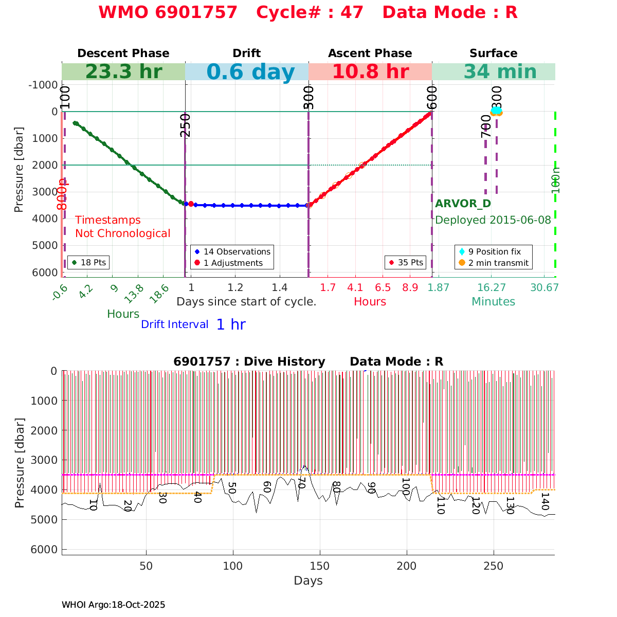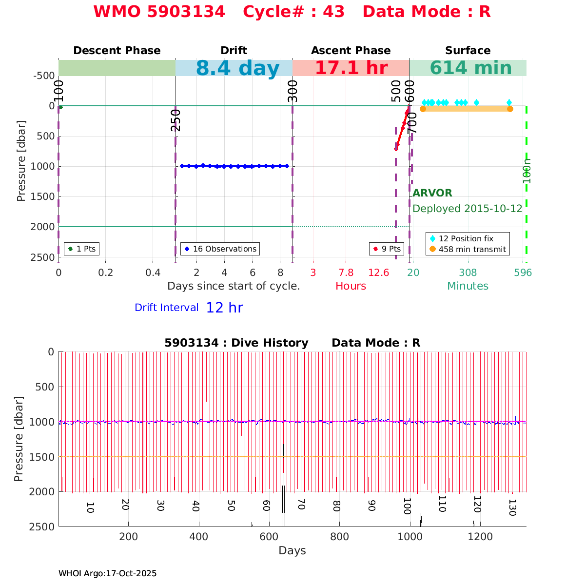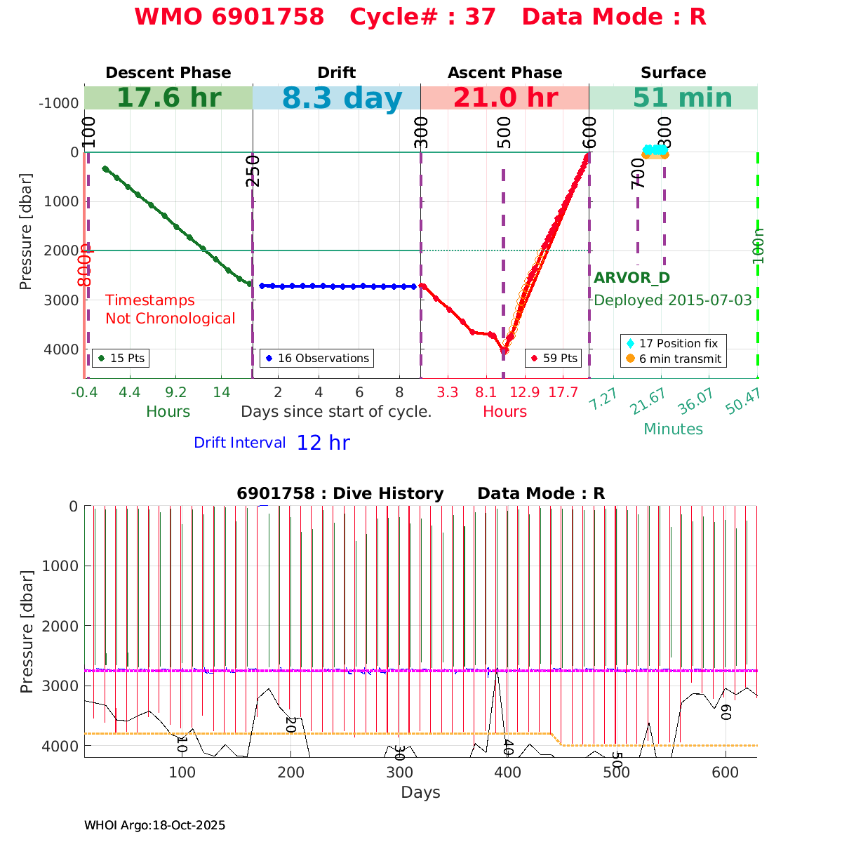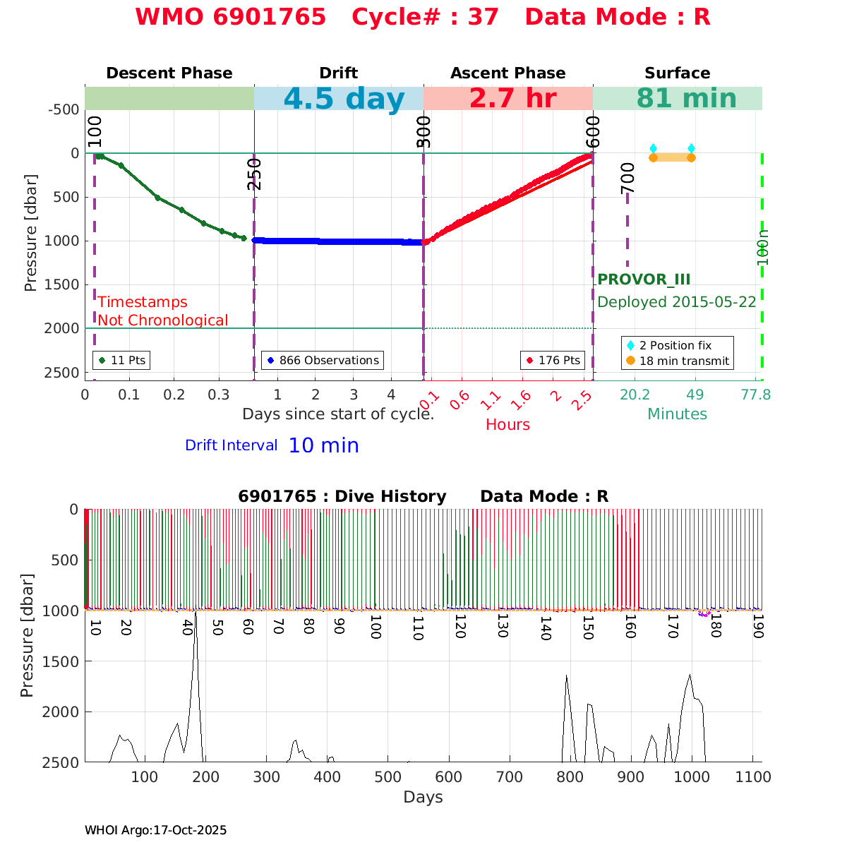 | WMO: #6901666 DAC: coriolis PI: Christophe MAES ARVOR: # FLOATCLOCK: # KISTLER_2900PSIA: #2149188 SBE41CP_V2: #6053 Altimeter Comparison (IFREMER) EuroArgo Link | ![]() |