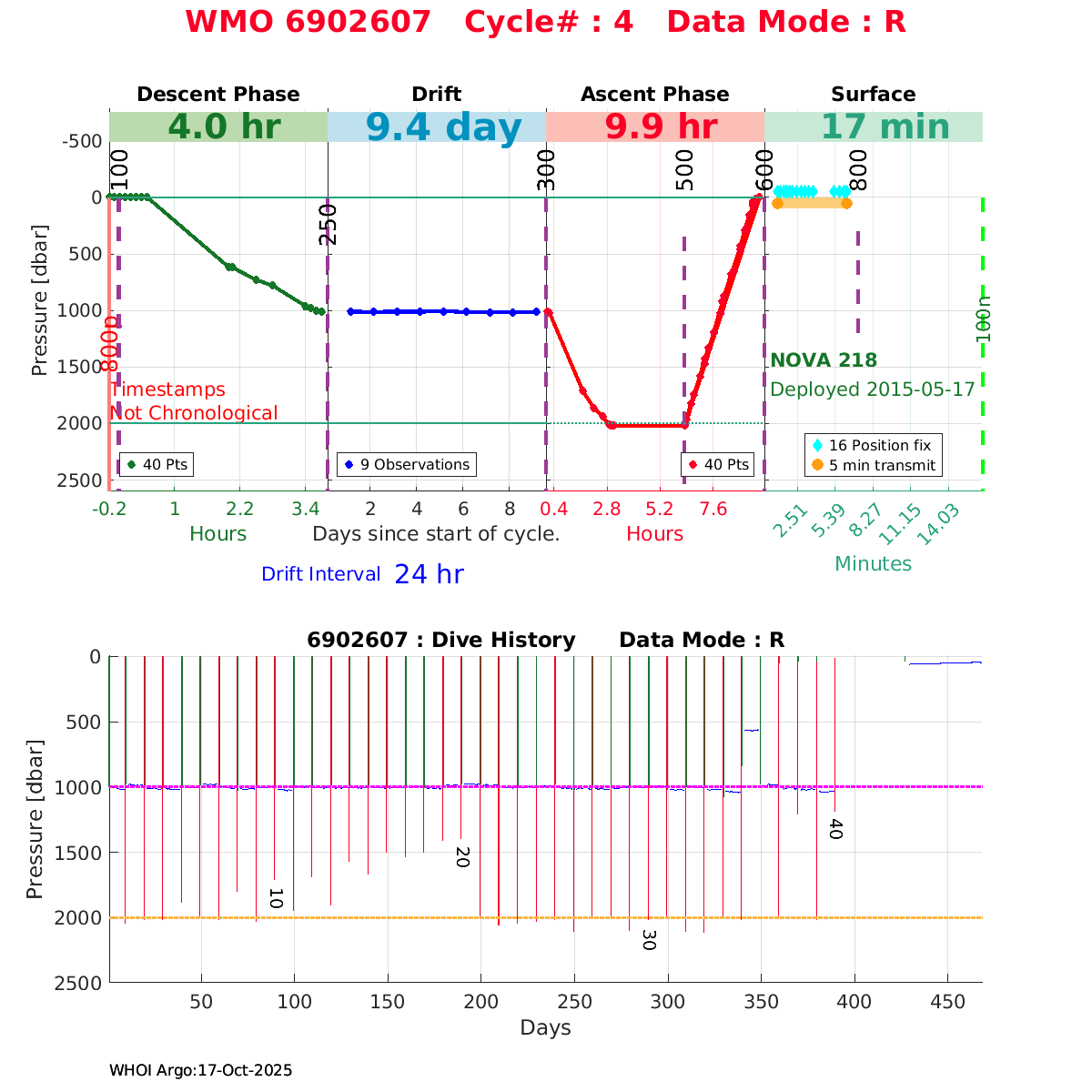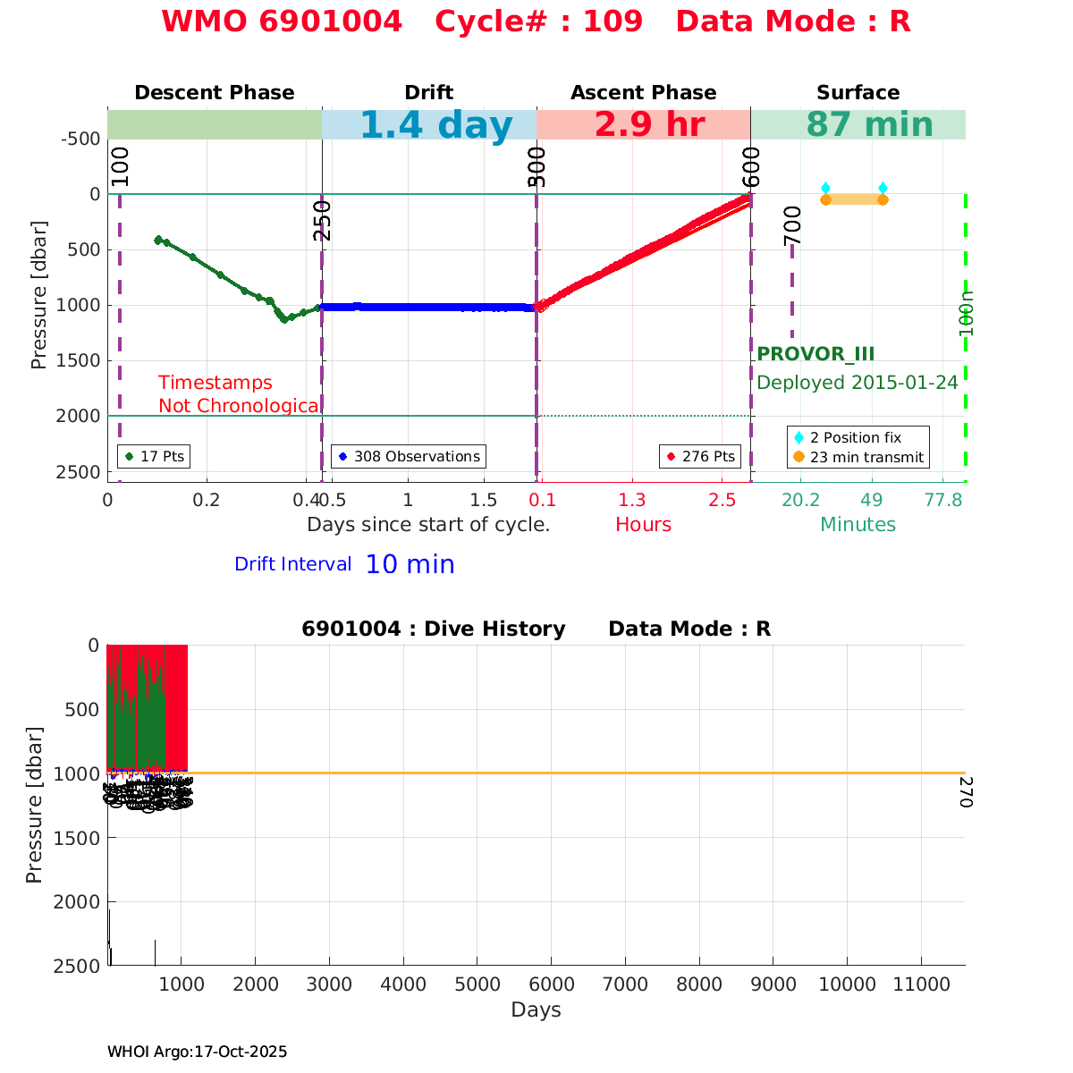 | WMO: #6901687 DAC: coriolis PI: Elodie MARTINEZ PROVOR_III: # KISTLER_2900PSIA: #2150382 SBE41CP_V2: #6019 SATLANTIC_OCR504_ICSW: #40325 ECO_FLBBCD: #3515 Altimeter Comparison (IFREMER) EuroArgo Link | ![]() |