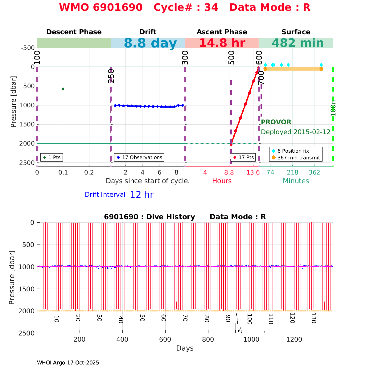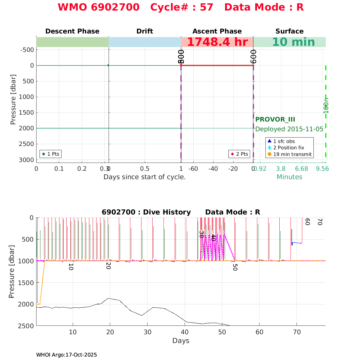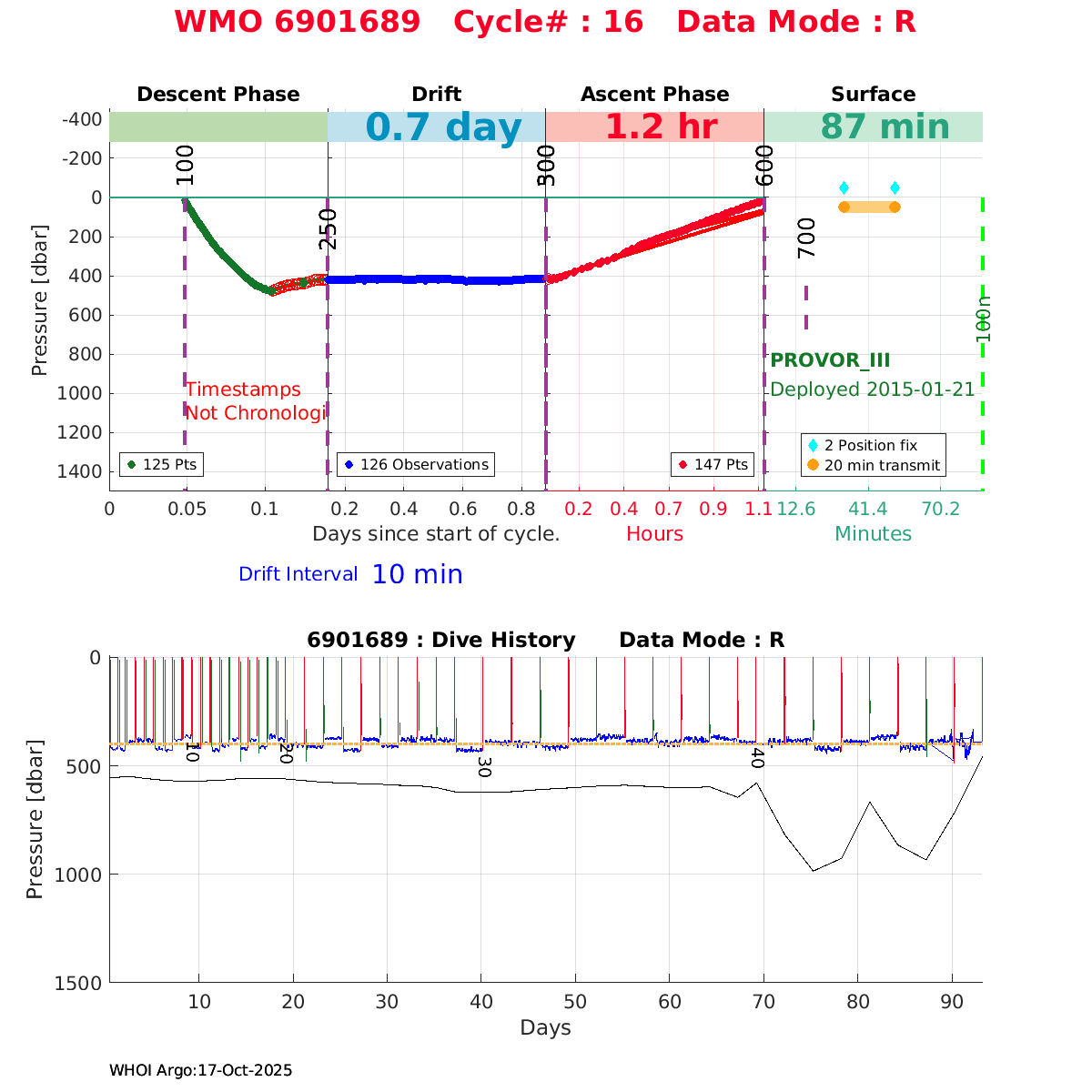 | WMO: #6901689 DAC: coriolis PI: Herve CLAUSTRE PROVOR_III: # KISTLER_2900PSIA: #2148595 SBE41CP_V2: #6021 AANDERAA_OPTODE_4330: #1756 SATLANTIC_OCR504_ICSW: #40324 ECO_FLBBCD: #3518 SUNA_V2: #412 Altimeter Comparison (IFREMER) EuroArgo Link | n/a | n/a | ![]() |