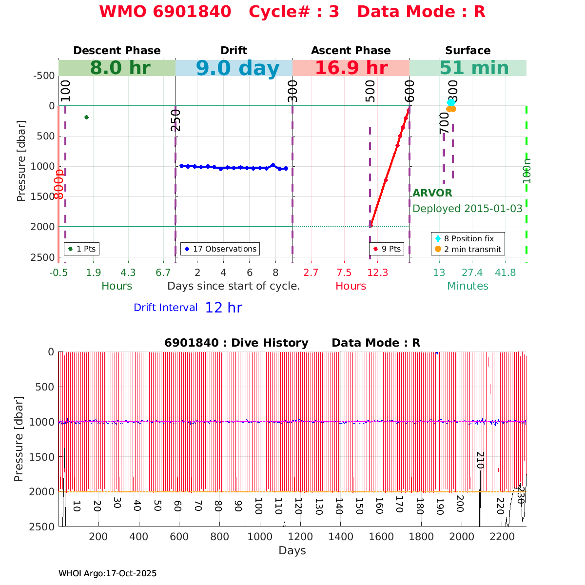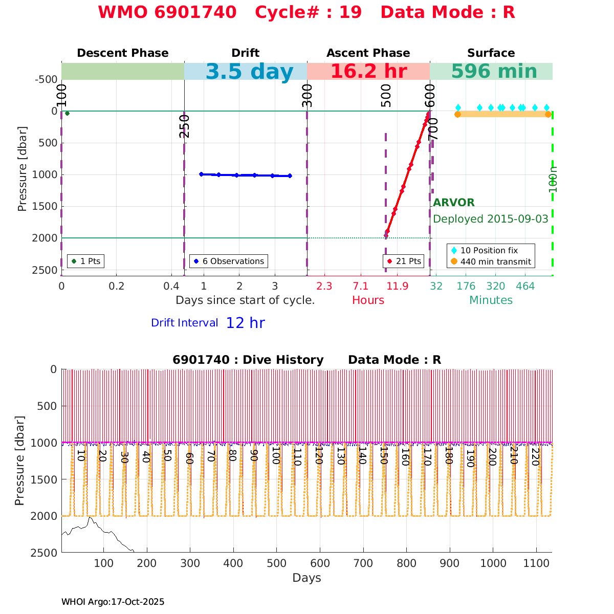 | WMO: #6901740 DAC: coriolis PI: Fabien DURAND ARVOR: # FLOATCLOCK: # KISTLER_2900PSIA: #2157440 SBE41CP_V2: #6383 Altimeter Comparison (IFREMER) EuroArgo Link | ![]() |