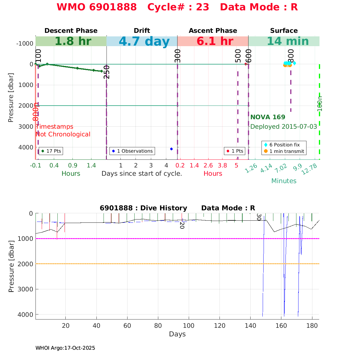 | WMO: #6901733 DAC: coriolis PI: Bernard BOURLES ARVOR: # FLOATCLOCK: # KISTLER_2900PSIA: #2152076 SBE41CP_V2: #6216 Altimeter Comparison (IFREMER) EuroArgo Link | ![]() |