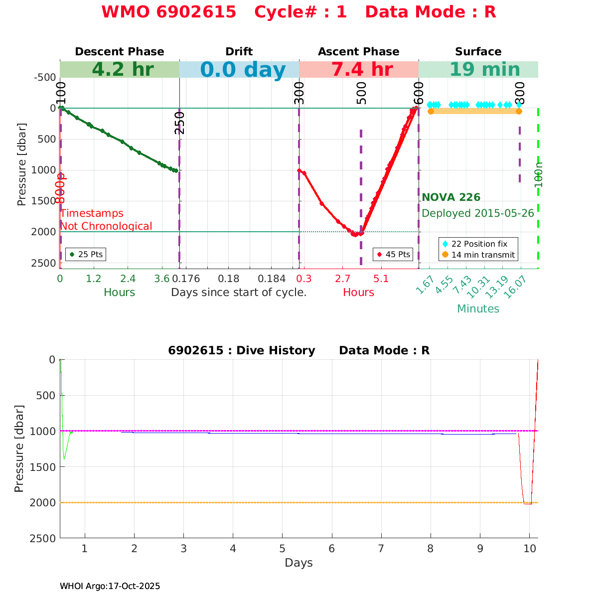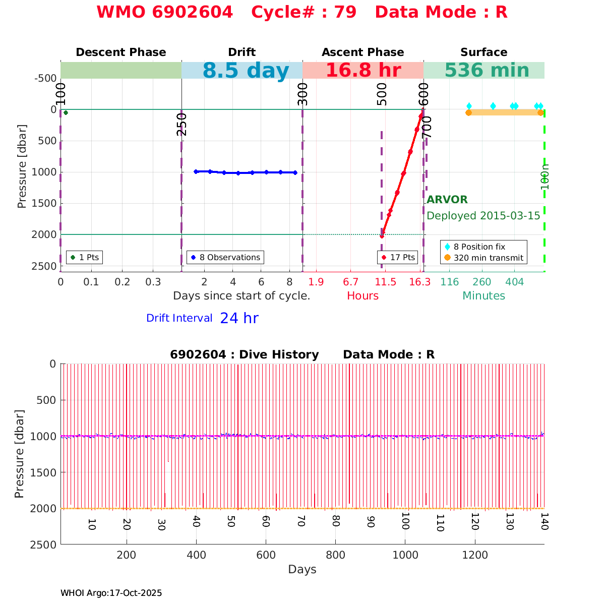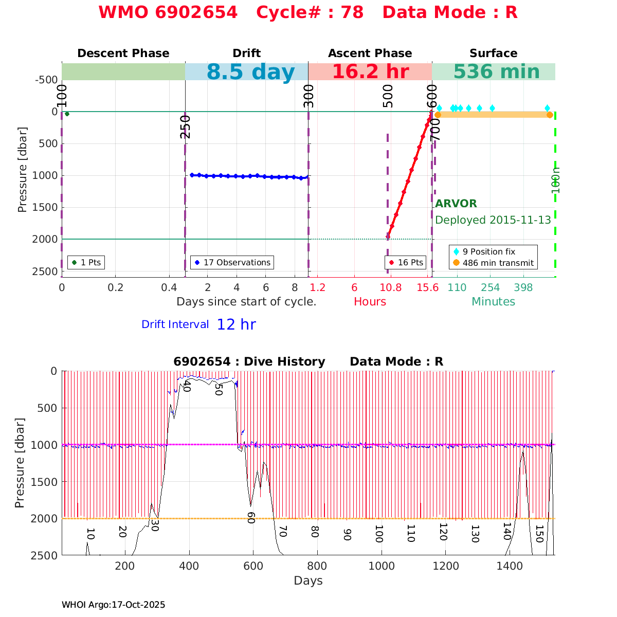 | WMO: #6902631 DAC: coriolis PI: Birgit KLEIN ARVOR: # FLOATCLOCK: # KISTLER: #4669412 SBE41CP_V2: #7348 Altimeter Comparison (IFREMER) EuroArgo Link | ![]() |