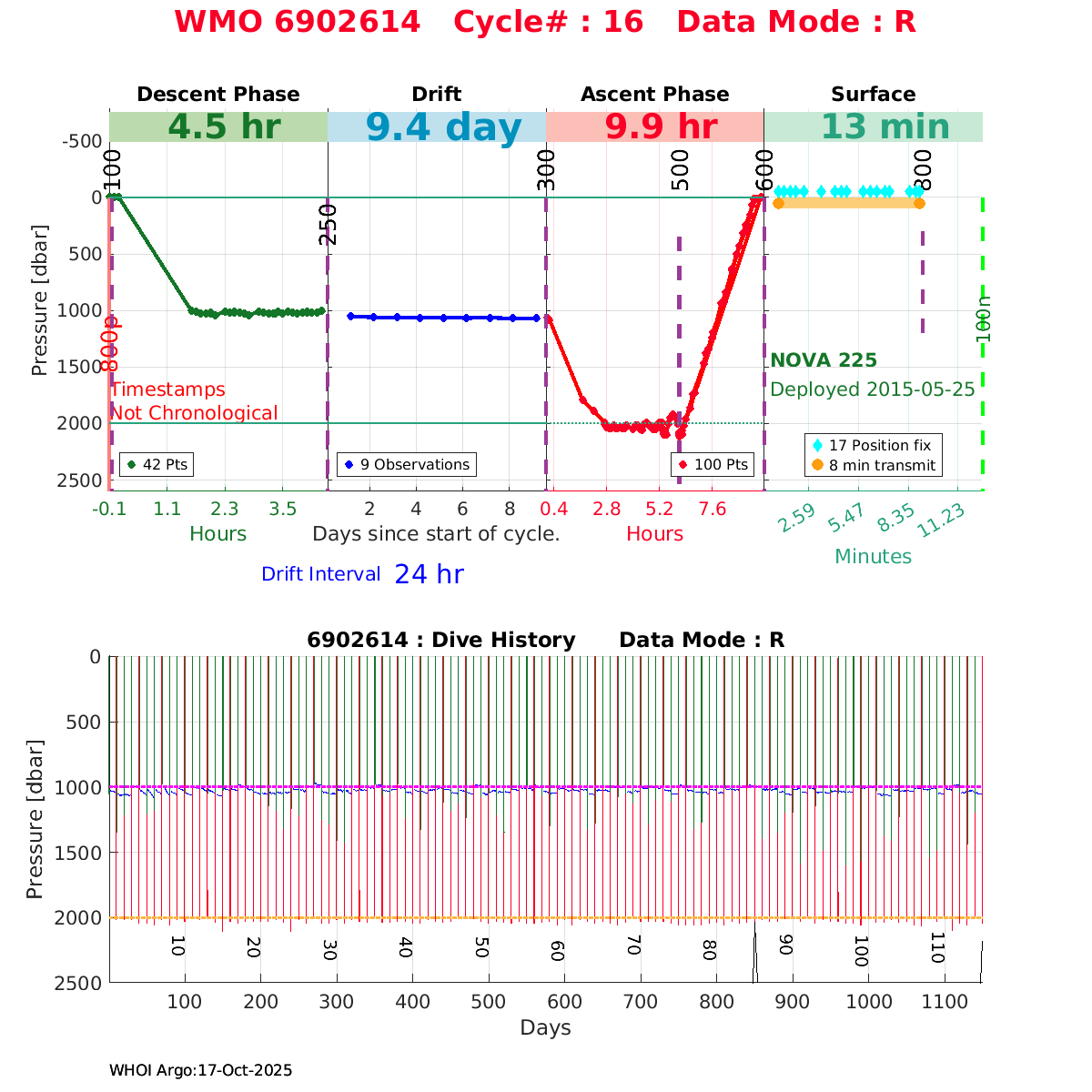 | WMO: #6902616 DAC: coriolis PI: Birgit KLEIN NOVA: #144 KISTLER_2900PSIA: #2150355 SBE41CP: #6263 Altimeter Comparison (IFREMER) EuroArgo Link | ![]() |