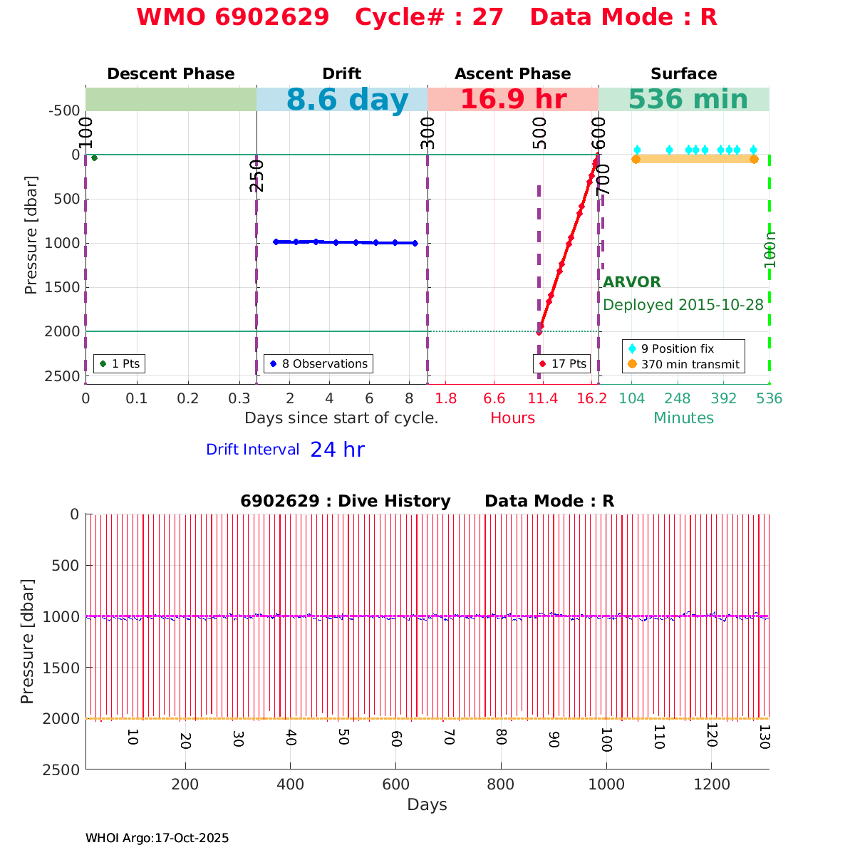 | WMO: #6902629 DAC: coriolis PI: Birgit KLEIN ARVOR: # FLOATCLOCK: # KISTLER: #4669421 SBE41CP_V2: #7344 Altimeter Comparison (IFREMER) EuroArgo Link | ![]() |