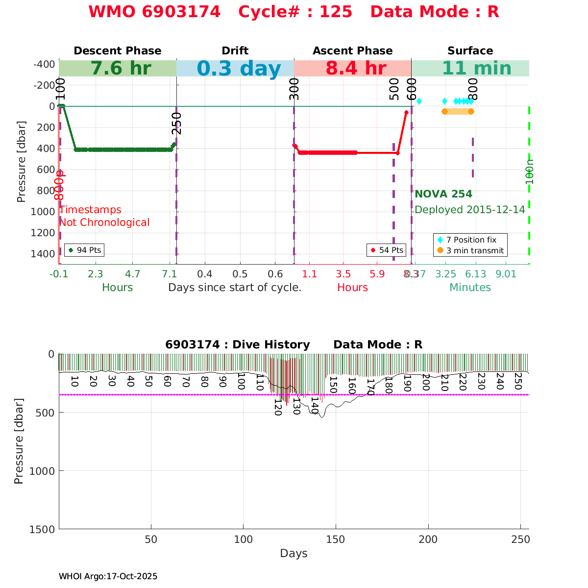 | WMO: #6903174 DAC: coriolis PI: Pierre-Marie POULAIN NOVA: #254 SBE41CP: #4645068 SBE41CP: #7260 Altimeter Comparison (IFREMER) EuroArgo Link | n/a | n/a | ![]() |