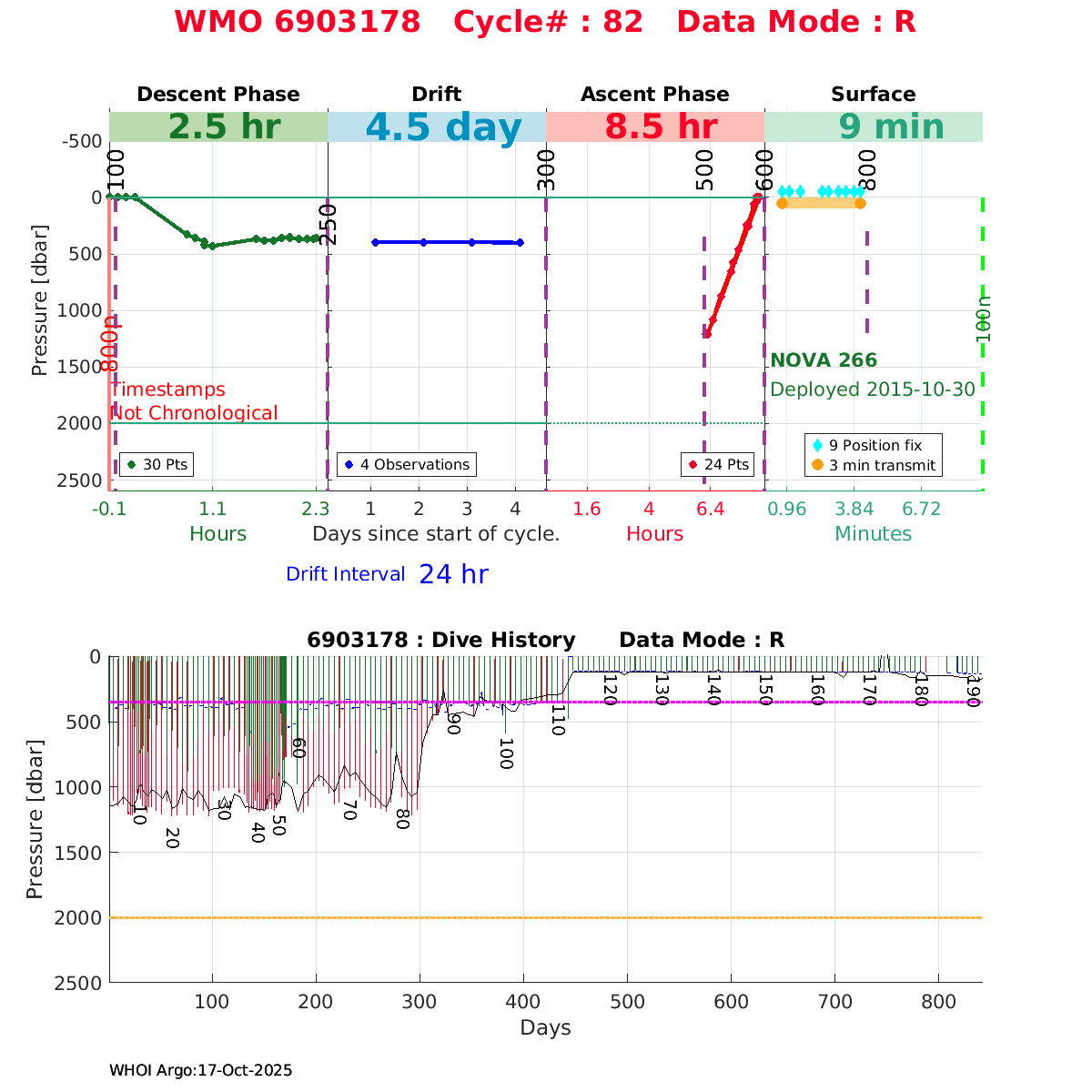 | WMO: #6903177 DAC: coriolis PI: Pierre-Marie POULAIN NOVA: #255 SBE41CP: #4632619 SBE41CP: #7072 Altimeter Comparison (IFREMER) EuroArgo Link | ![]() |