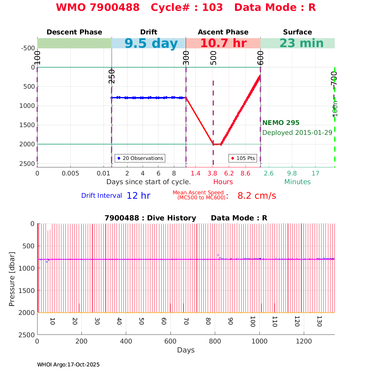 | WMO: #7900488 DAC: coriolis PI: Olaf BOEBEL NEMO: #295 SBE41_V3: #6459 Altimeter Comparison (IFREMER) EuroArgo Link | ![]() |