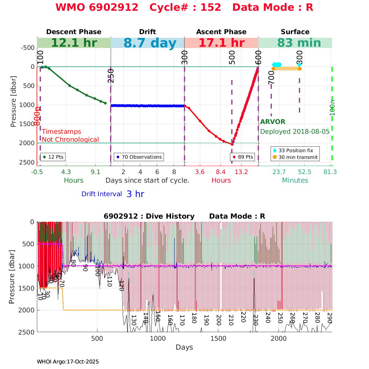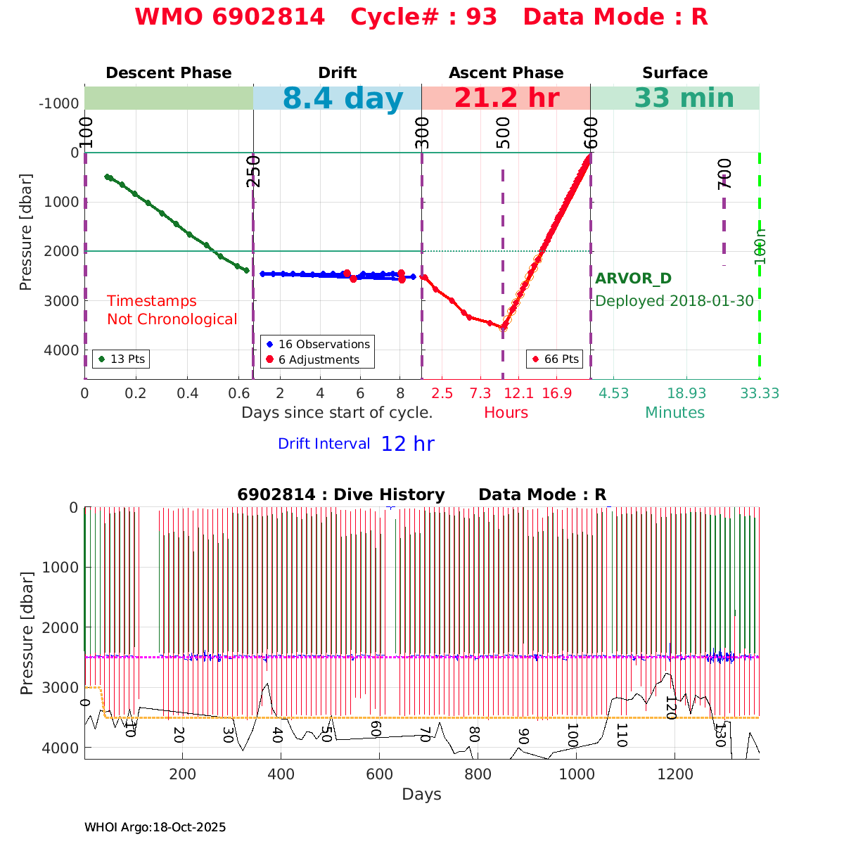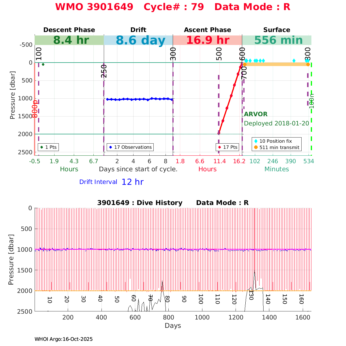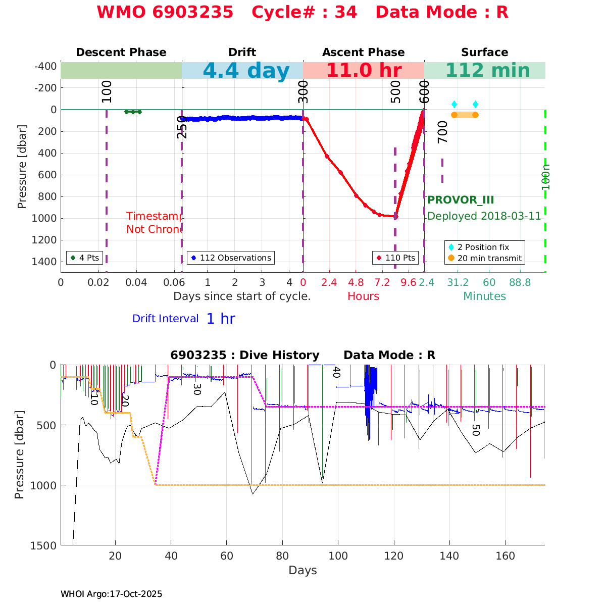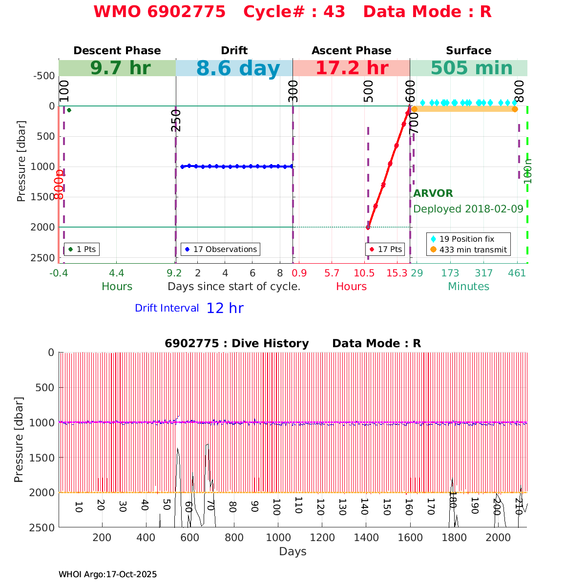 | WMO: #6902898 DAC: coriolis PI: Fabrizio D'ORTENZIO PROVOR_III: # KISTLER_2900PSIA: #2099901 SBE41CP: #4443 SATLANTIC_OCR504_ICSW: #40219 ECO_FLBBCD: #2439 Altimeter Comparison (IFREMER) EuroArgo Link | ![]() |