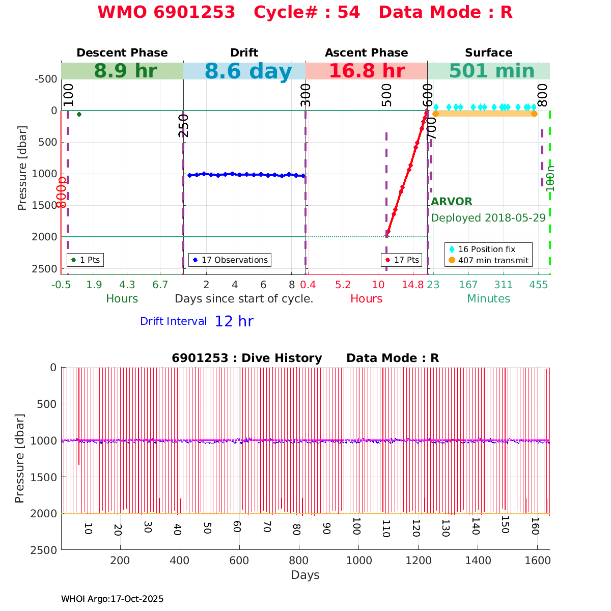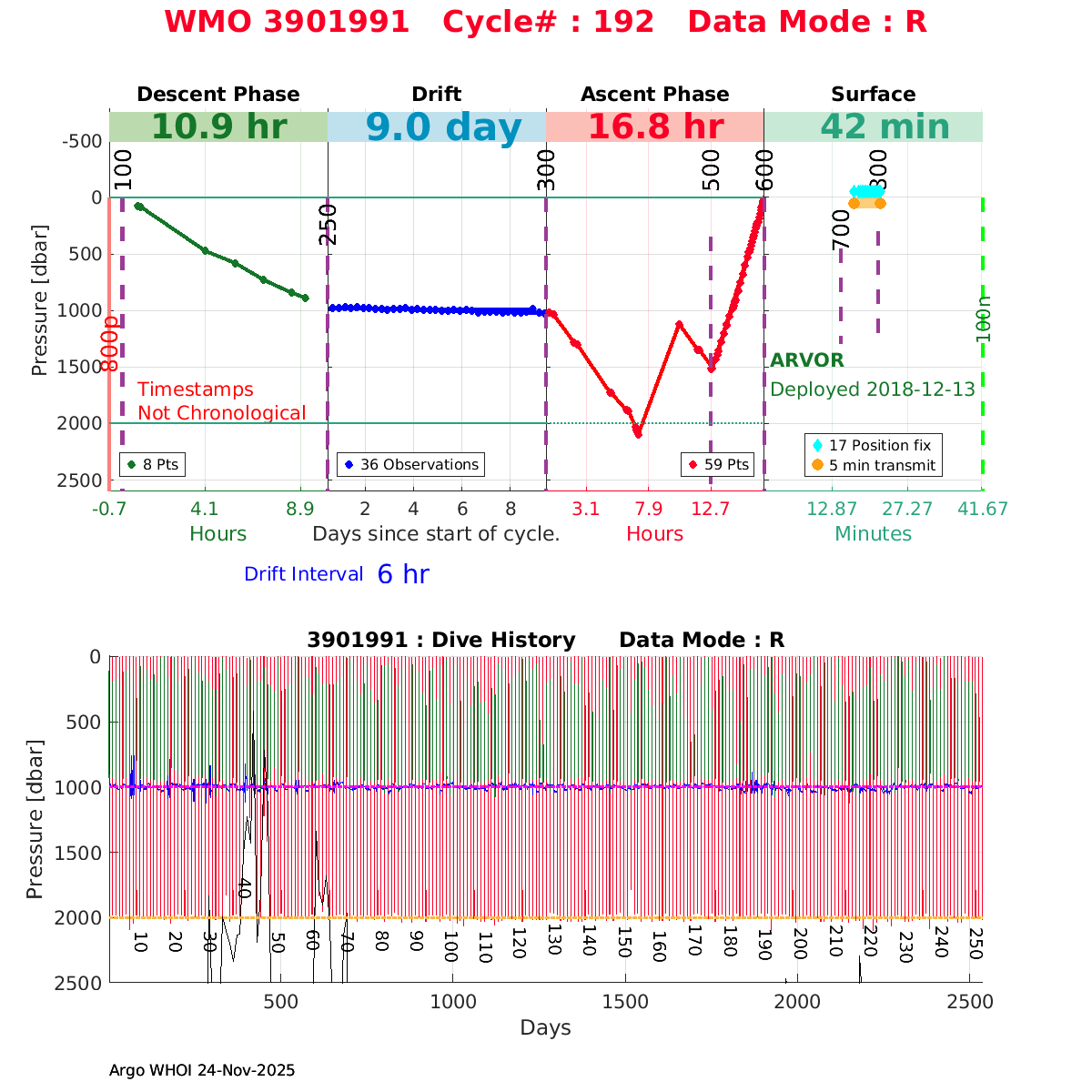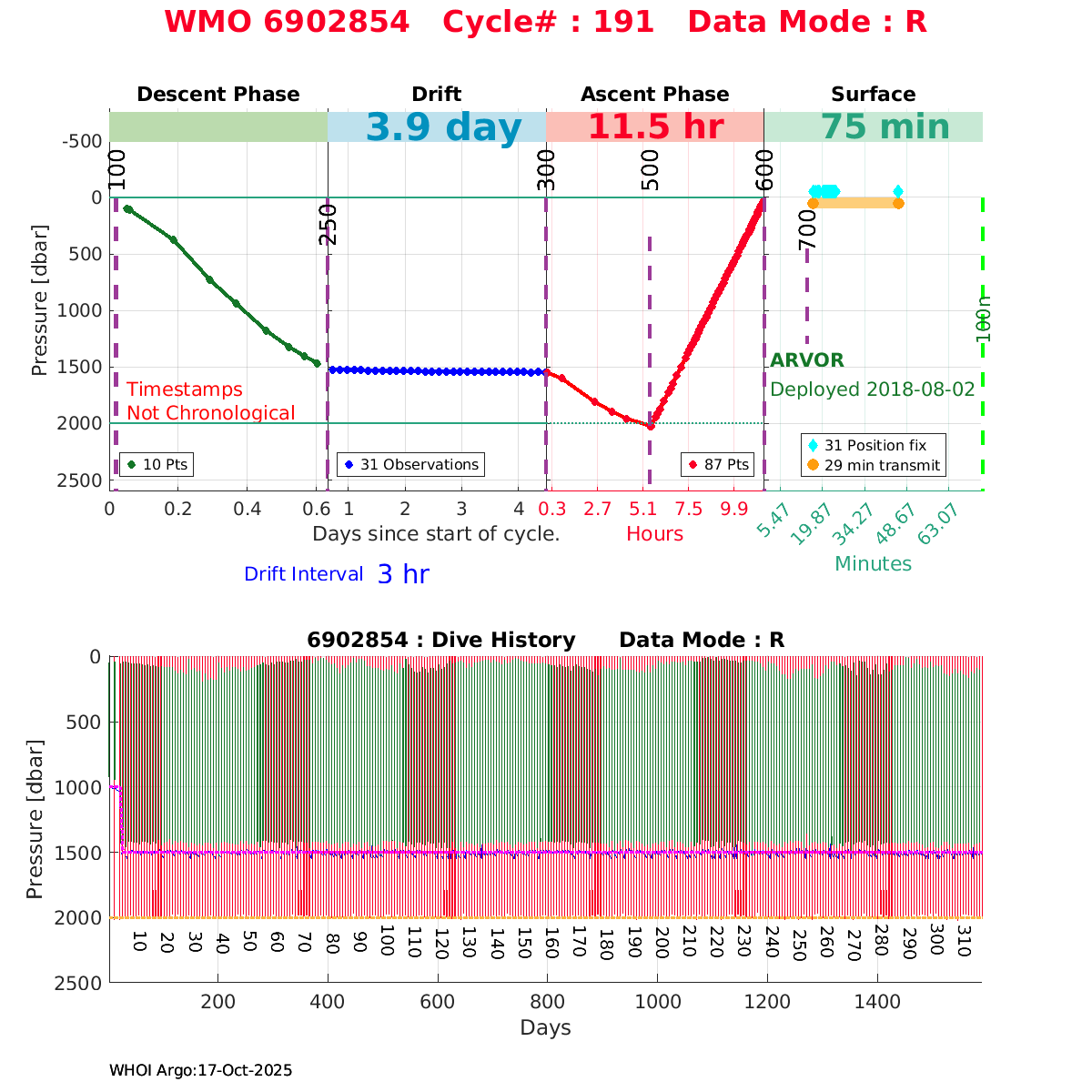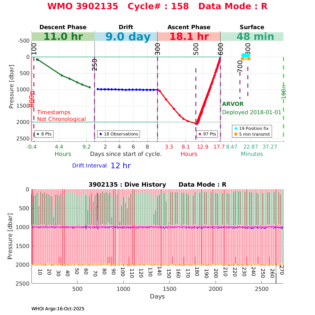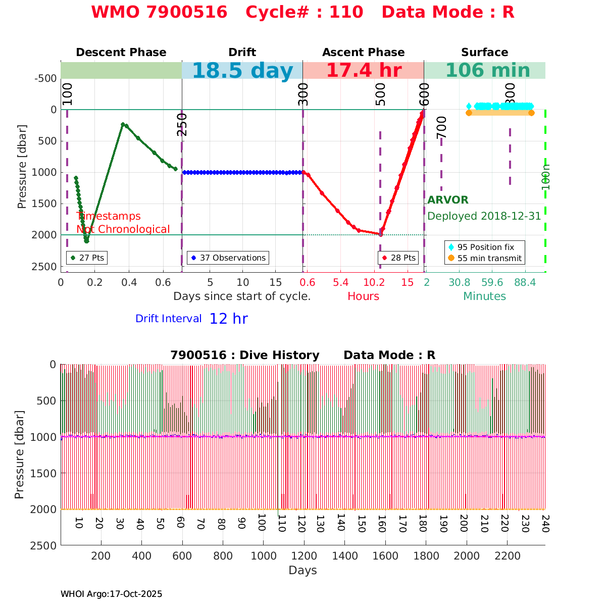 | WMO: #6902898 DAC: coriolis PI: Fabrizio D'ORTENZIO PROVOR_III: # KISTLER_2900PSIA: #2099901 SBE41CP: #4443 SATLANTIC_OCR504_ICSW: #40219 ECO_FLBBCD: #2439 Altimeter Comparison (IFREMER) EuroArgo Link | ![]() |