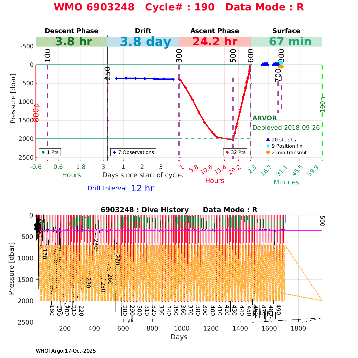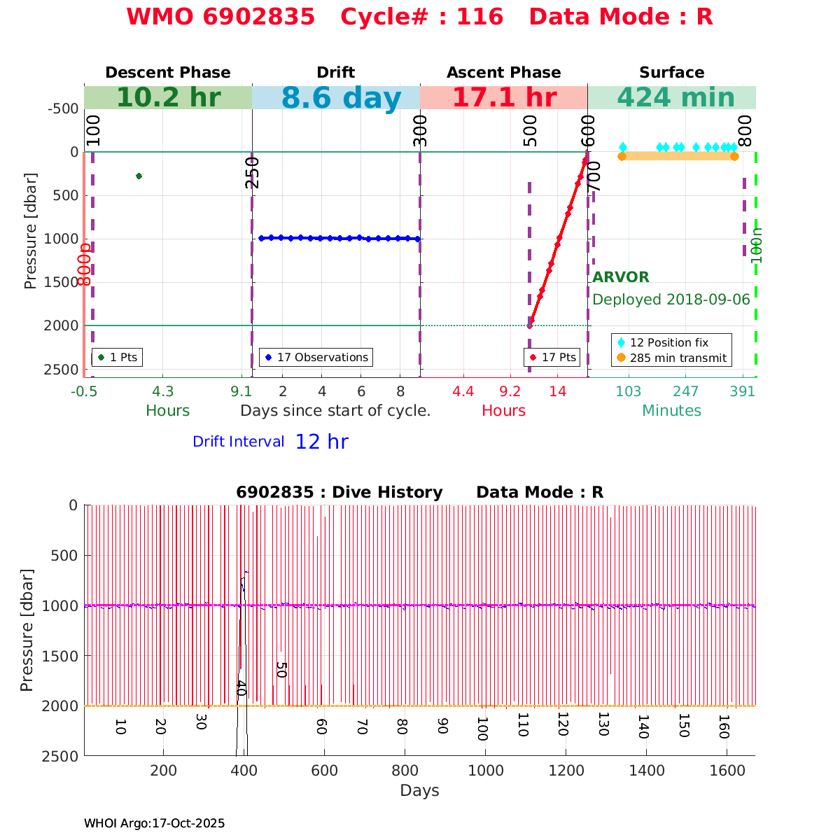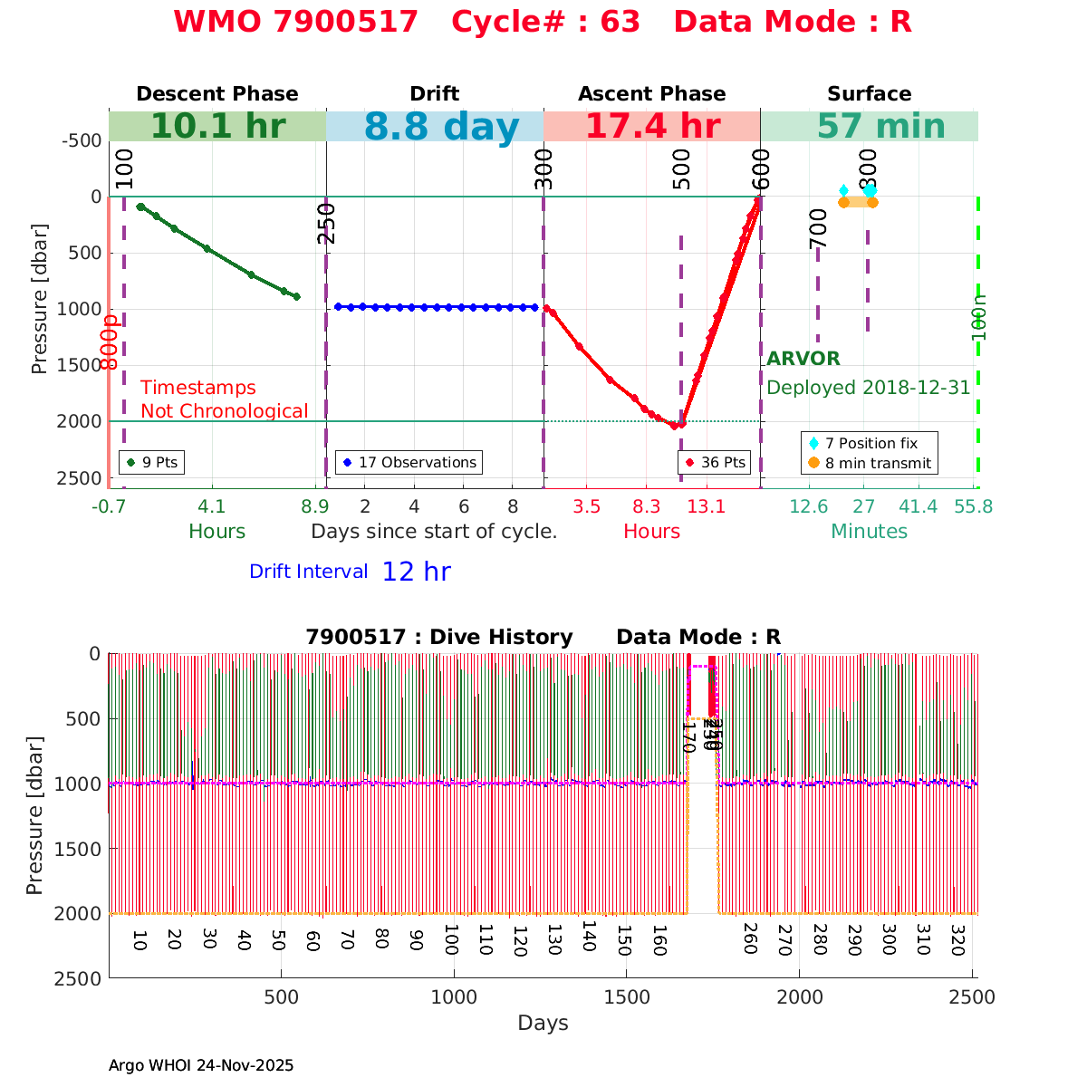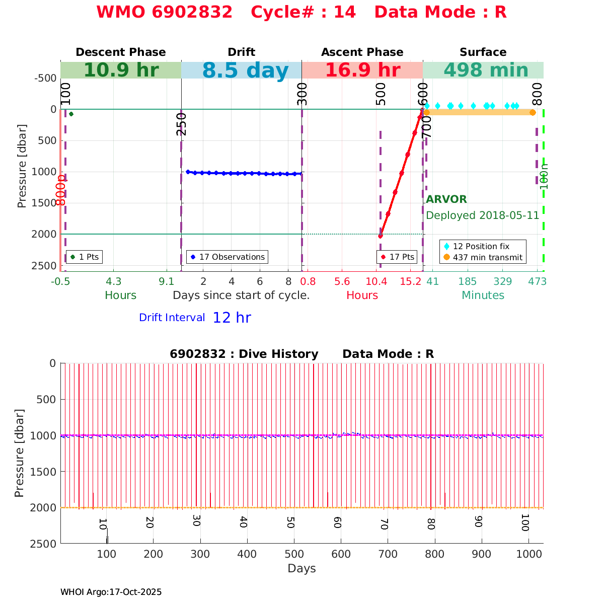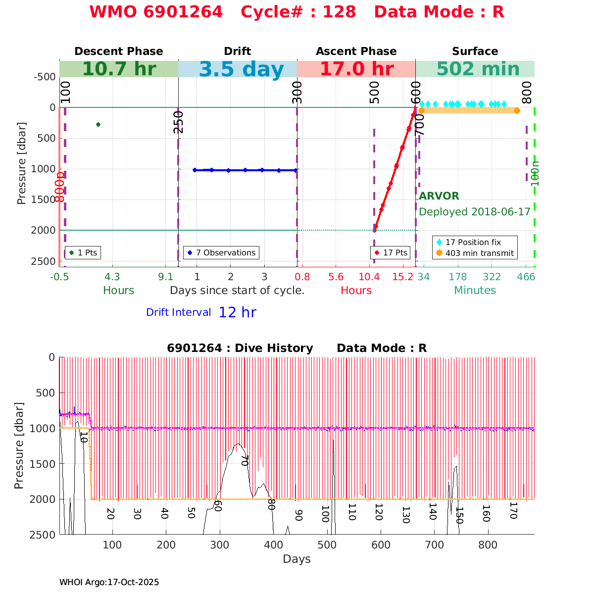 | WMO: #6902898 DAC: coriolis PI: Fabrizio D'ORTENZIO PROVOR_III: # KISTLER_2900PSIA: #2099901 SBE41CP: #4443 SATLANTIC_OCR504_ICSW: #40219 ECO_FLBBCD: #2439 Altimeter Comparison (IFREMER) EuroArgo Link | ![]() |
