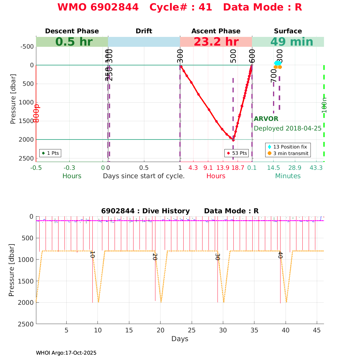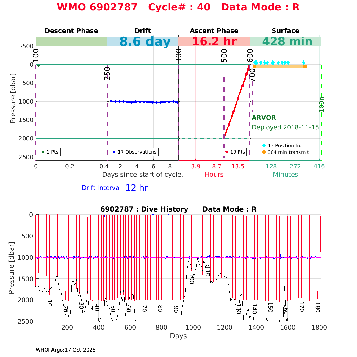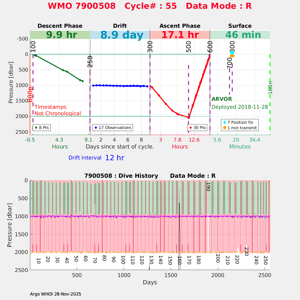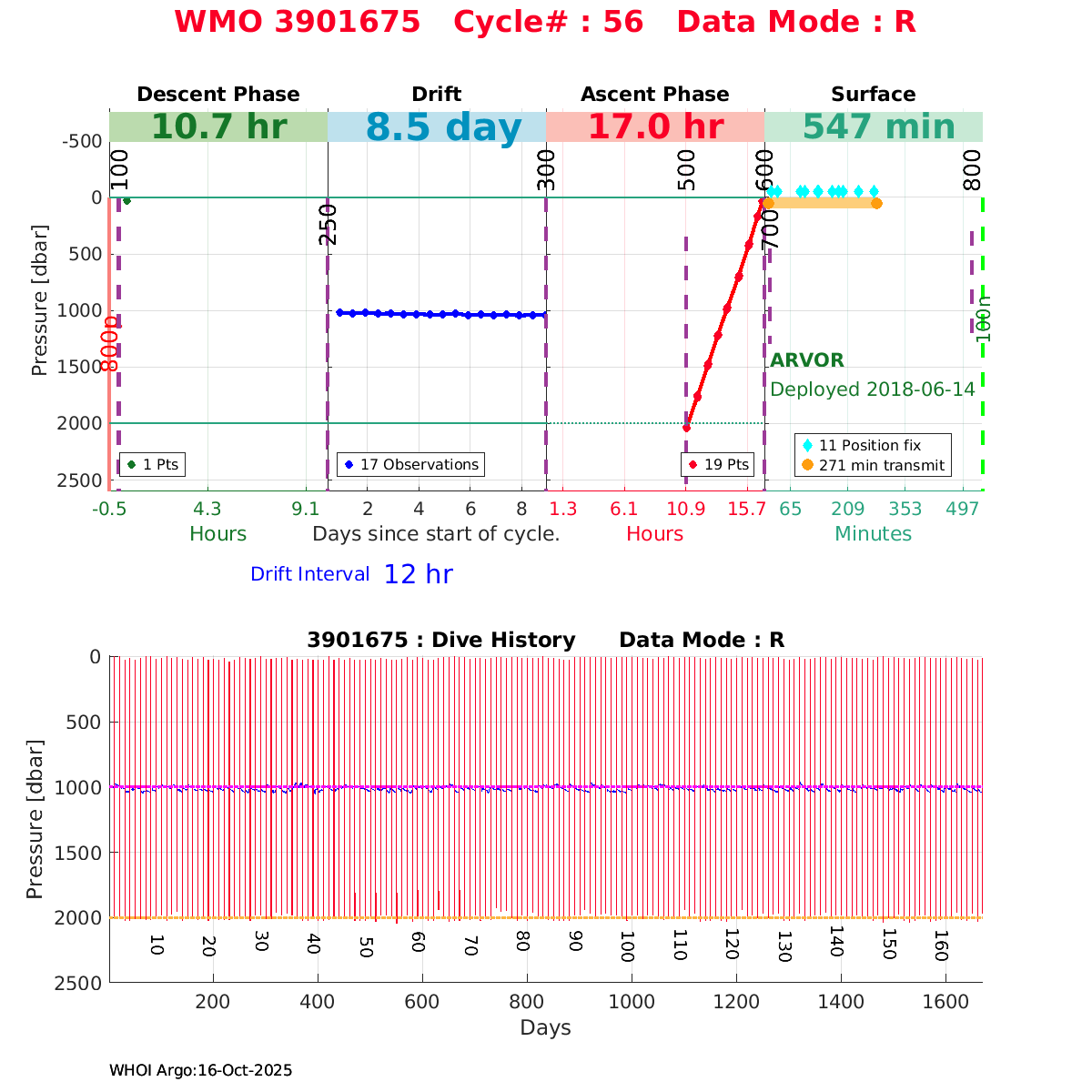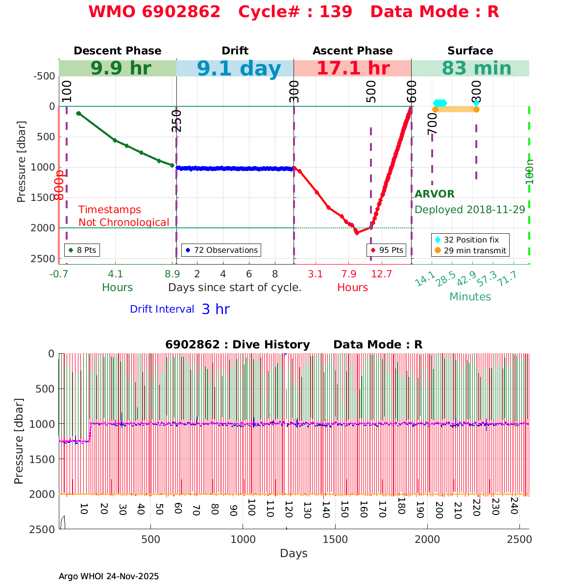 | WMO: #6902898 DAC: coriolis PI: Fabrizio D'ORTENZIO PROVOR_III: # KISTLER_2900PSIA: #2099901 SBE41CP: #4443 SATLANTIC_OCR504_ICSW: #40219 ECO_FLBBCD: #2439 Altimeter Comparison (IFREMER) EuroArgo Link | ![]() |